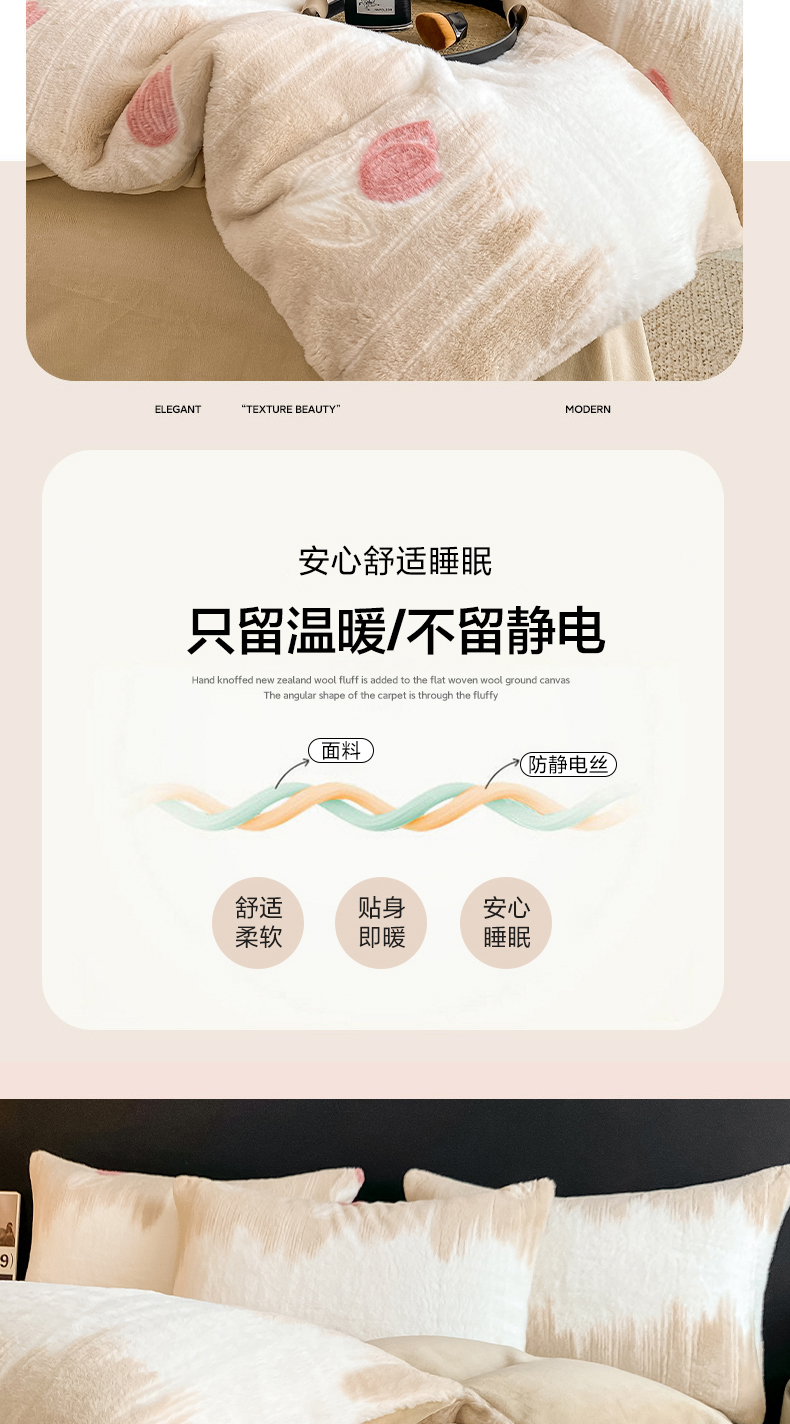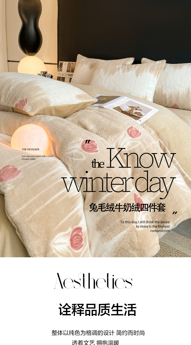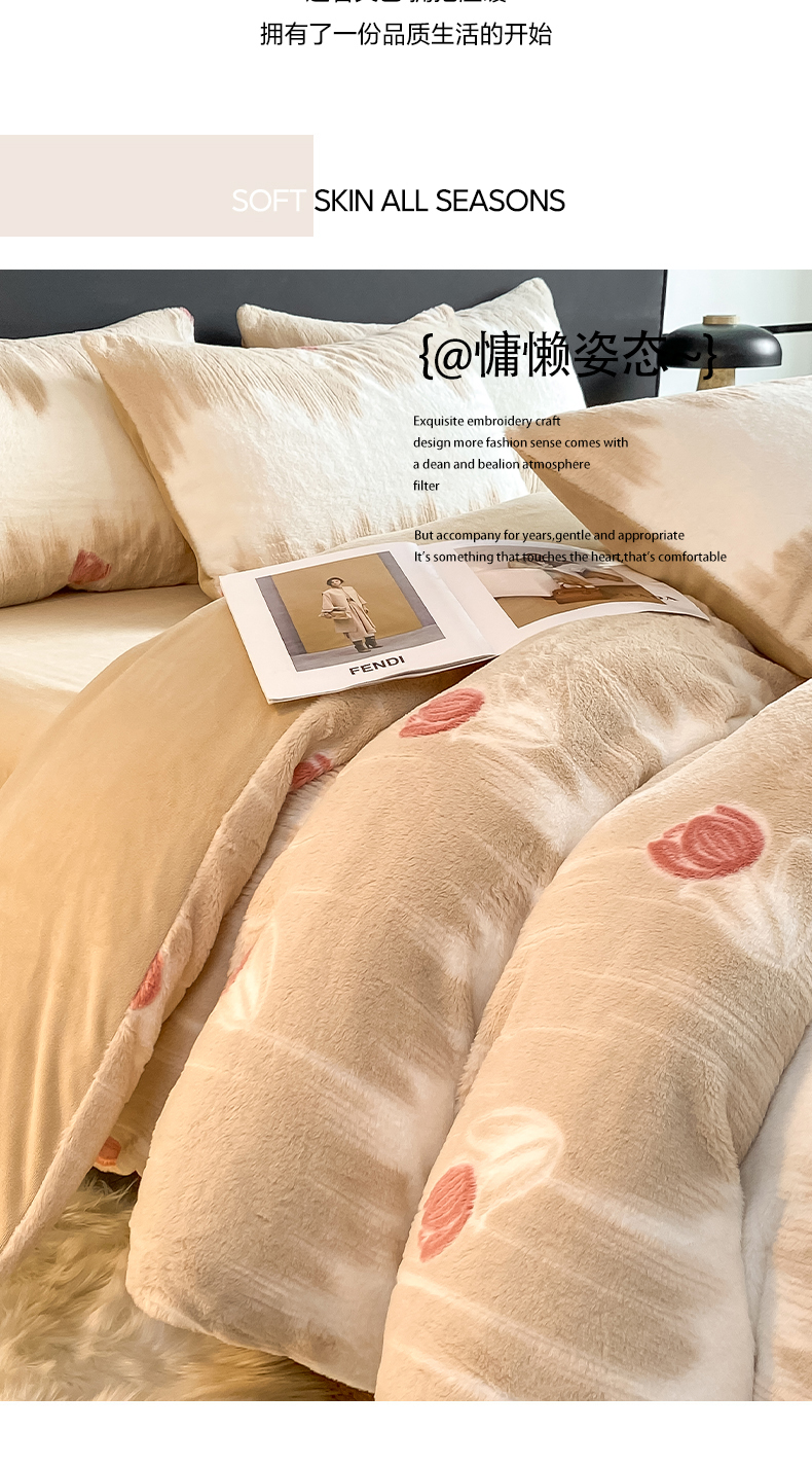 商品名称:富之航家纺 2024新款剪花兔兔绒四件套 郁金香-咖