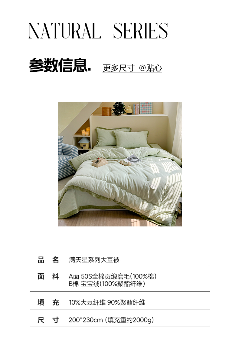 商品名称:(总)琳可 2024新款50S贡缎超柔全棉磨毛宝宝绒10%大豆被冬被