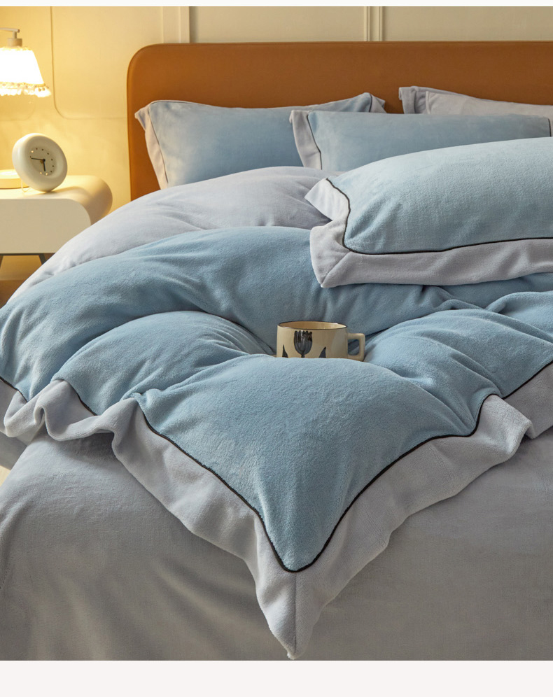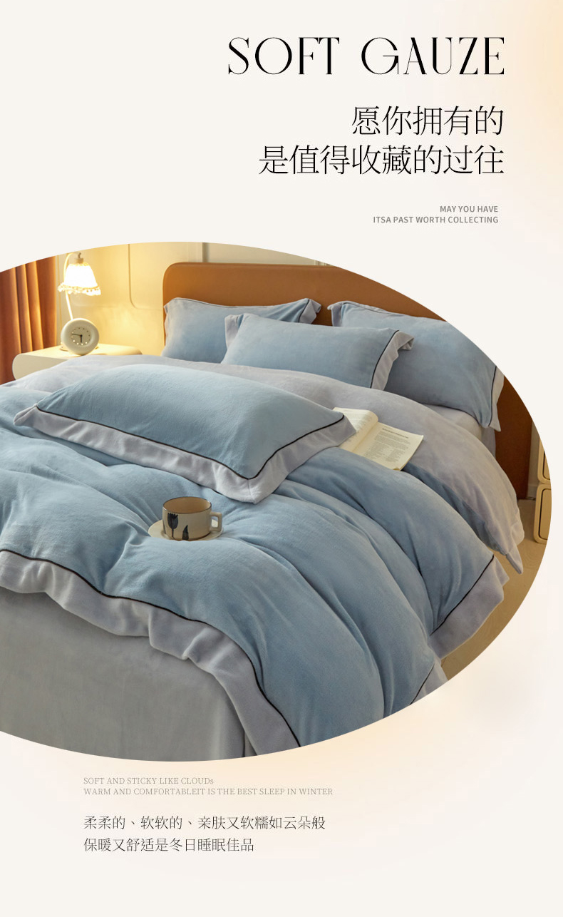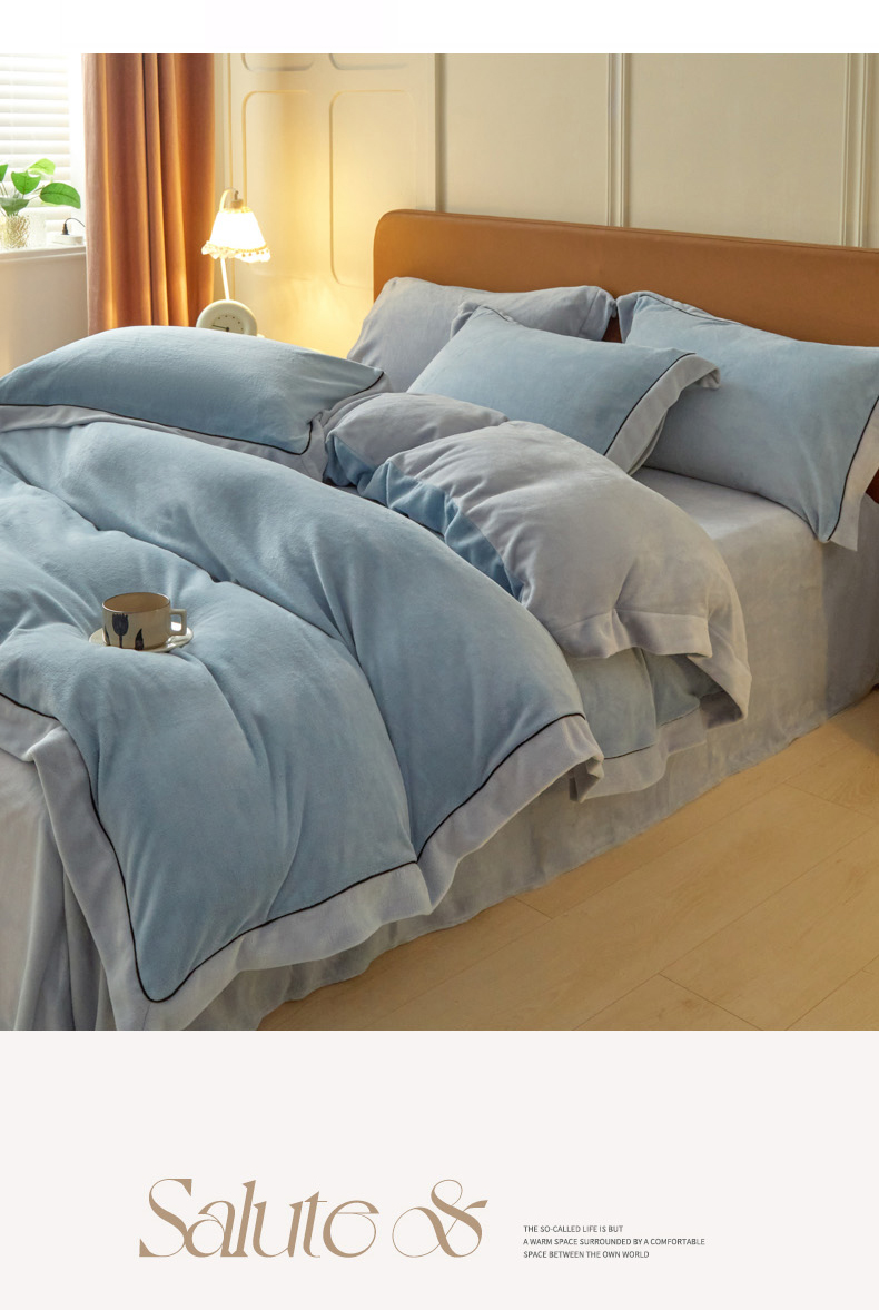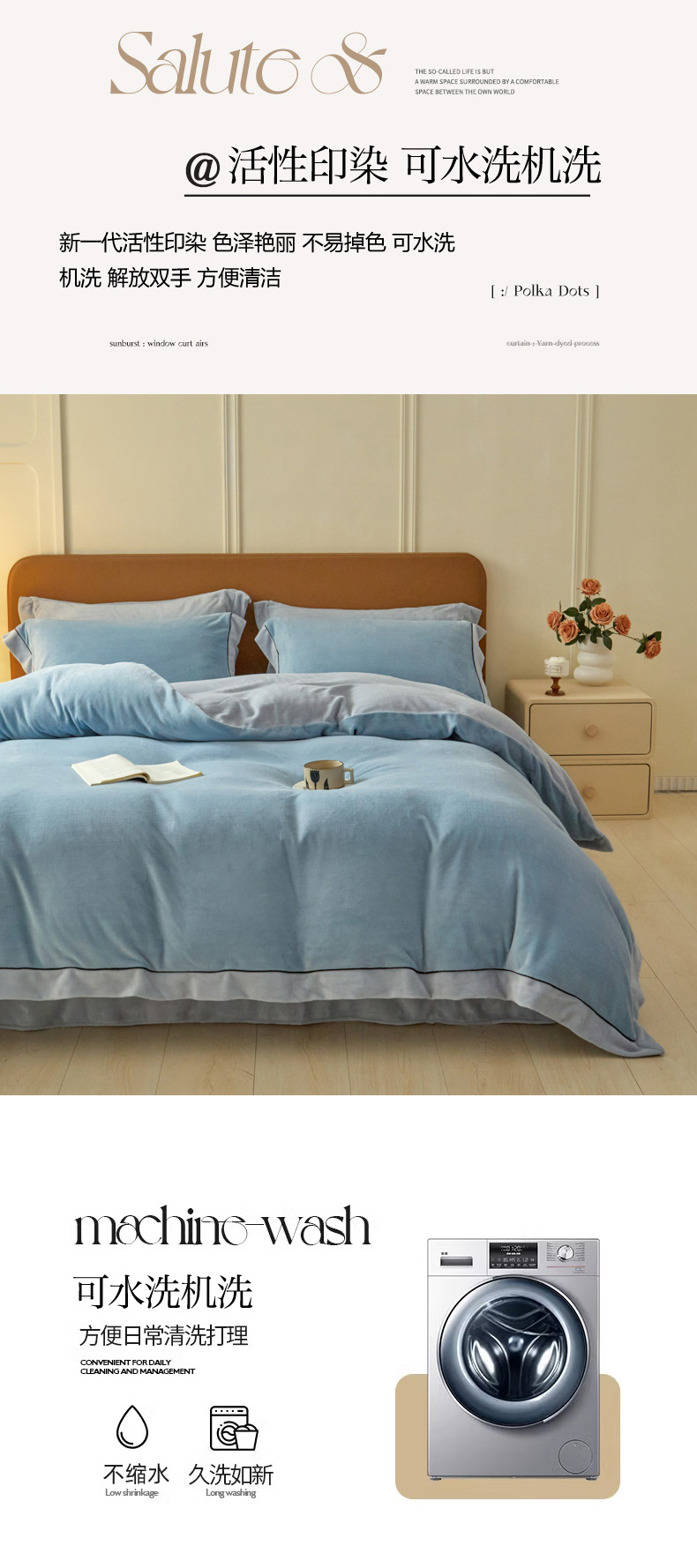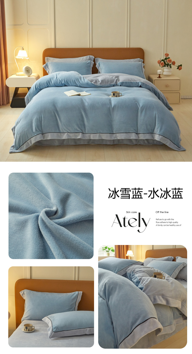 当前位置: 91家纺网 > 商品网购 > 床品套件 > 四件套 > 牛奶绒四件套 > 万盛家纺 2025新款牛奶绒拼色宽边四件套 冰雪蓝-水冰蓝