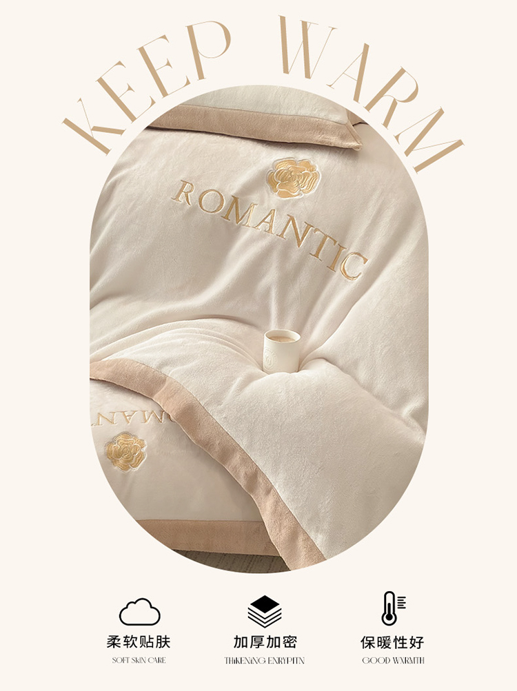 商品名称:(总)2025秋冬230g9斤全消光牛奶绒双拼绣花四件套绒宽边被套高端轻奢山茶花系列