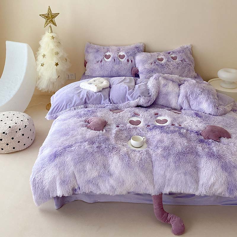 商品名称:嗨购家纺 2024新款水貂绒宝宝绒四件套-小怪兽卡通系列(棚拍图) 蓝桃小妖