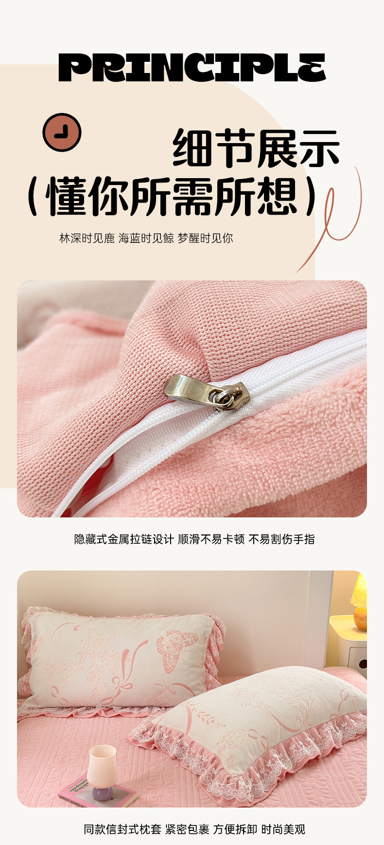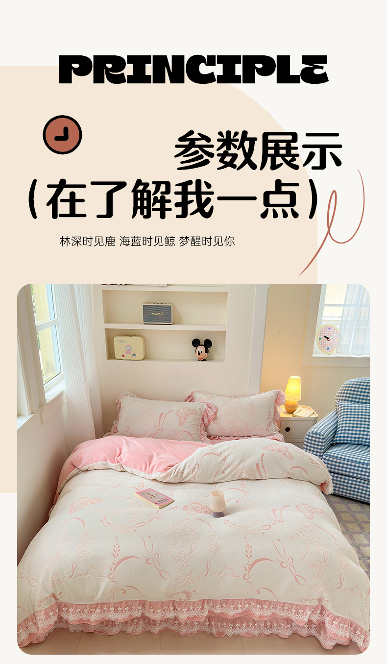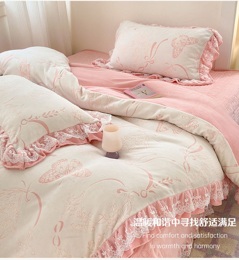 商品名称:淑女公社家纺 2024秋冬新款提花牛奶绒床盖款四件套 蝴蝶 豆沙粉