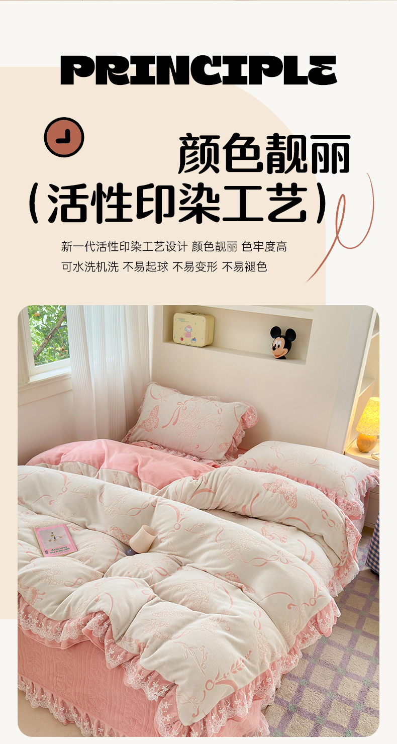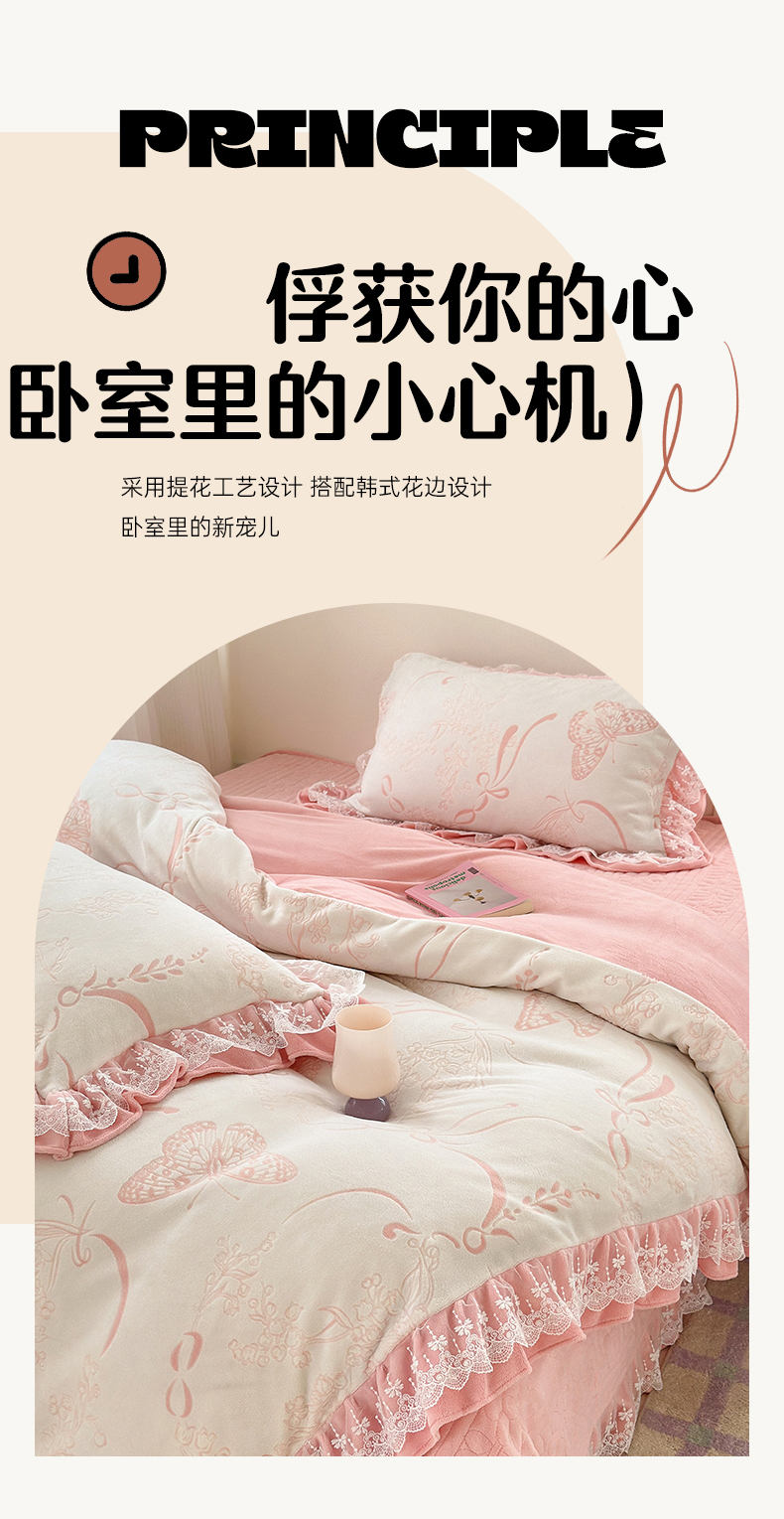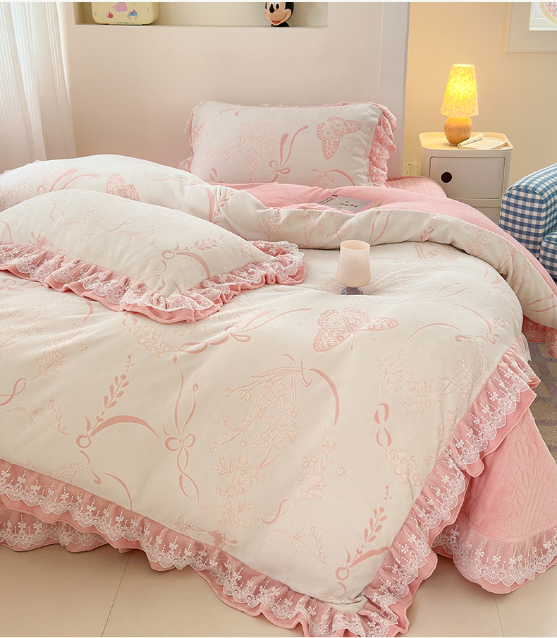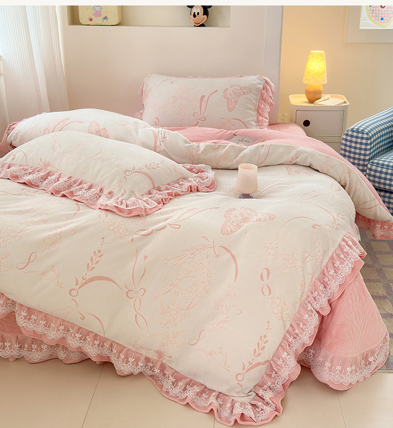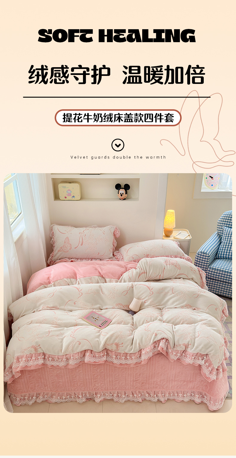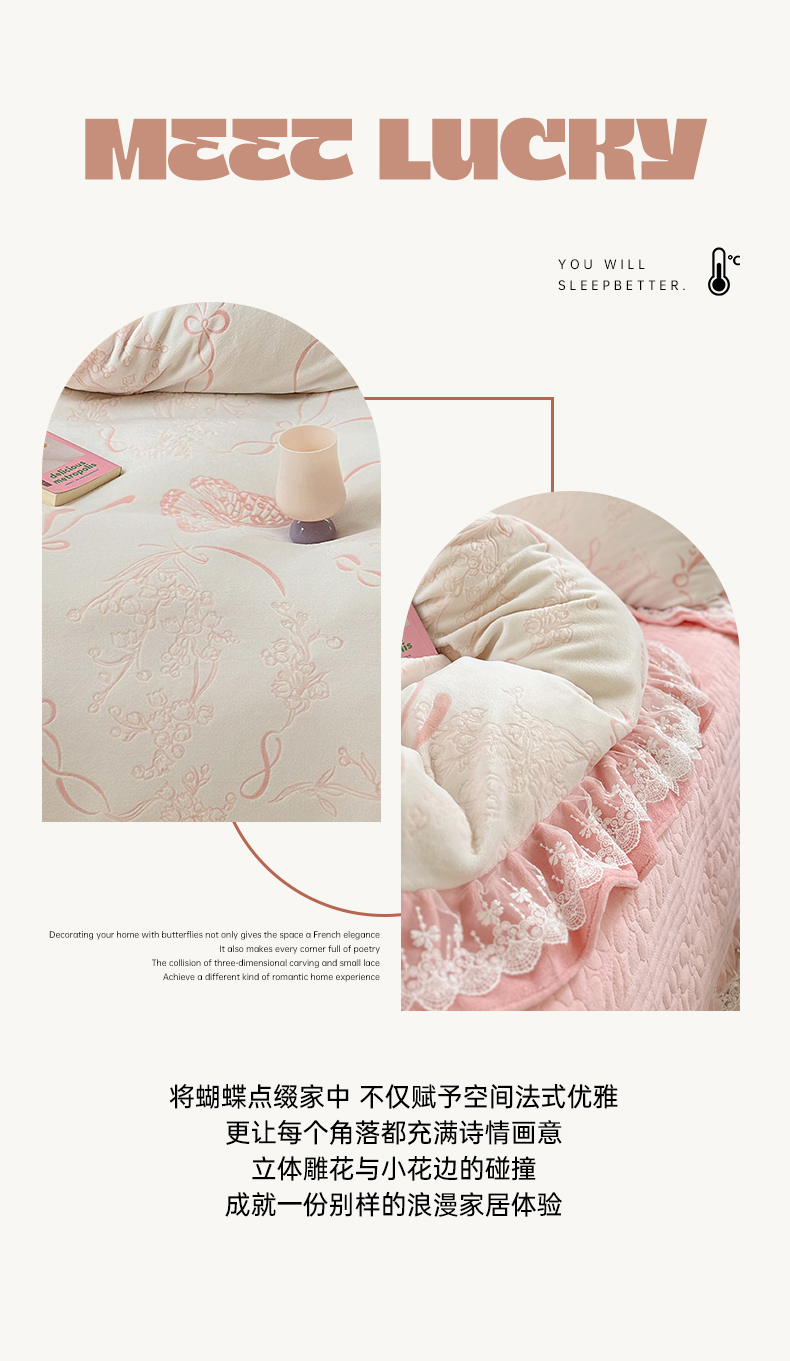淑女公社家纺 2024秋冬新款提花牛奶绒床盖款四件套 蝴蝶 豆沙粉