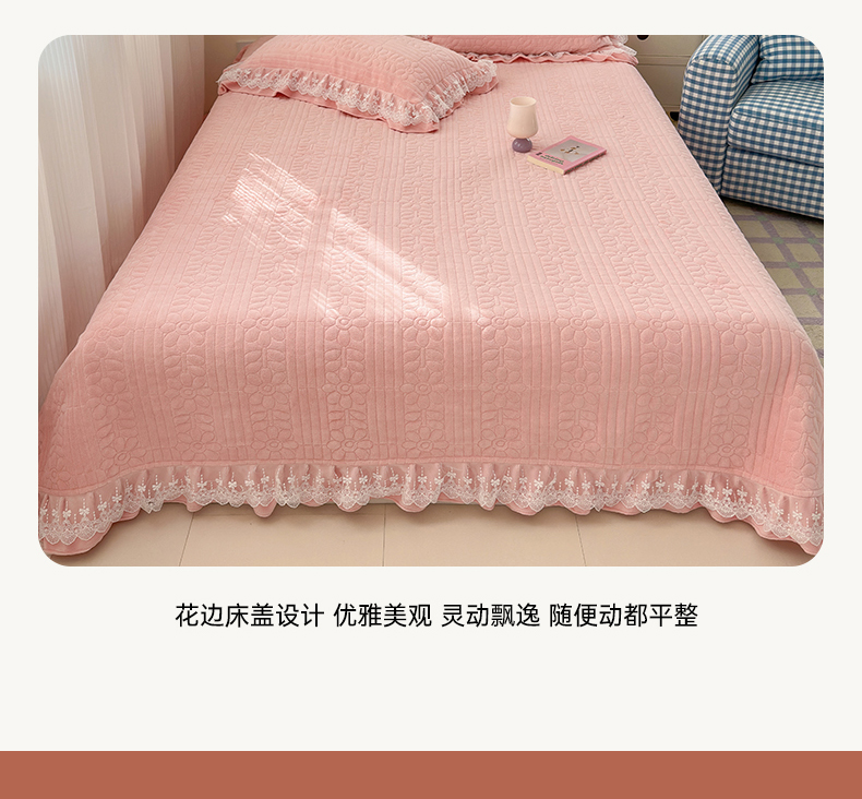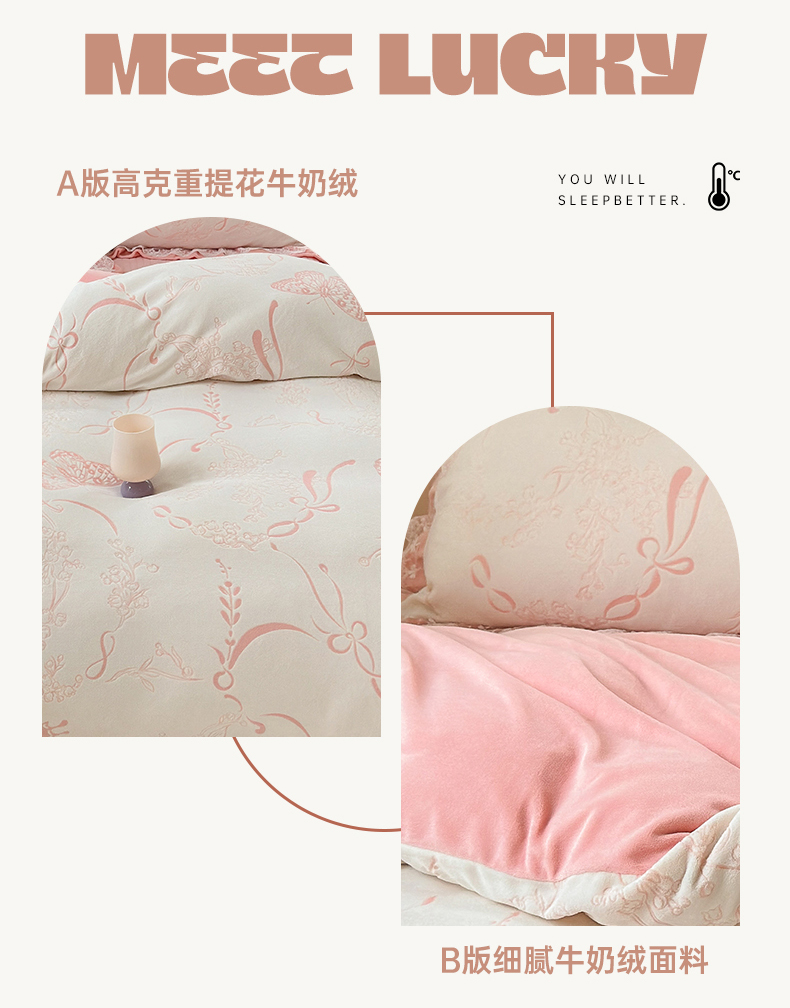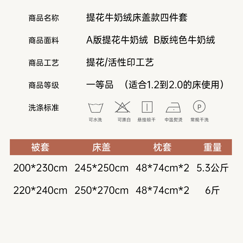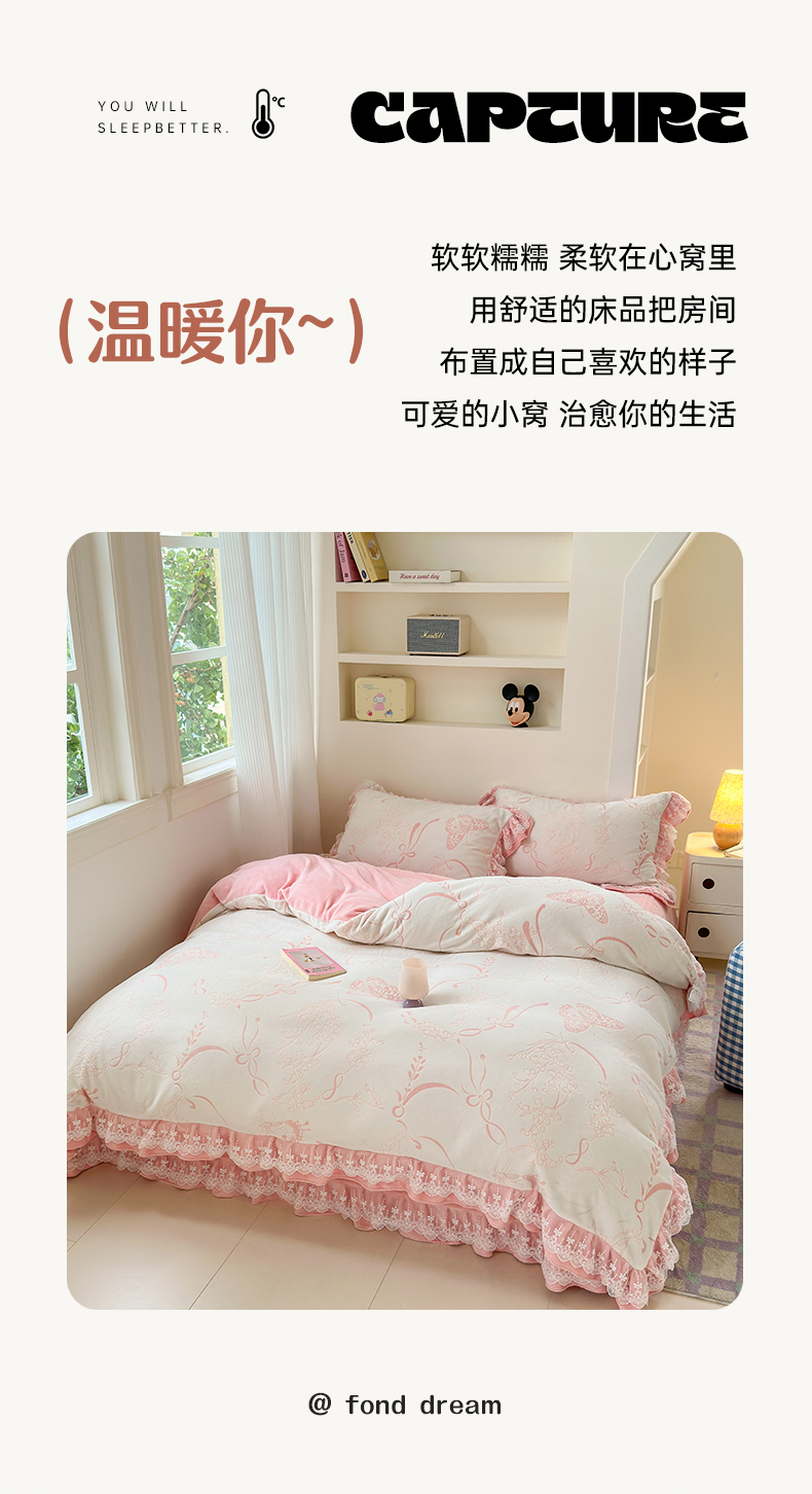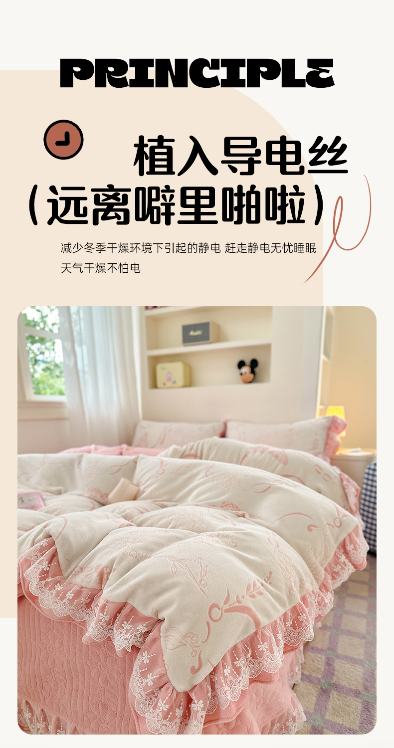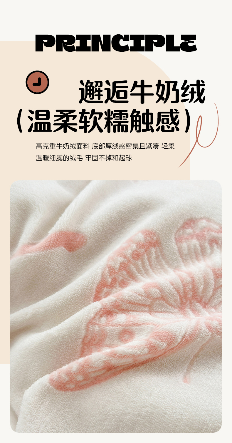 淑女公社家纺 2024秋冬新款提花牛奶绒床盖款四件套 蝴蝶 豆沙粉