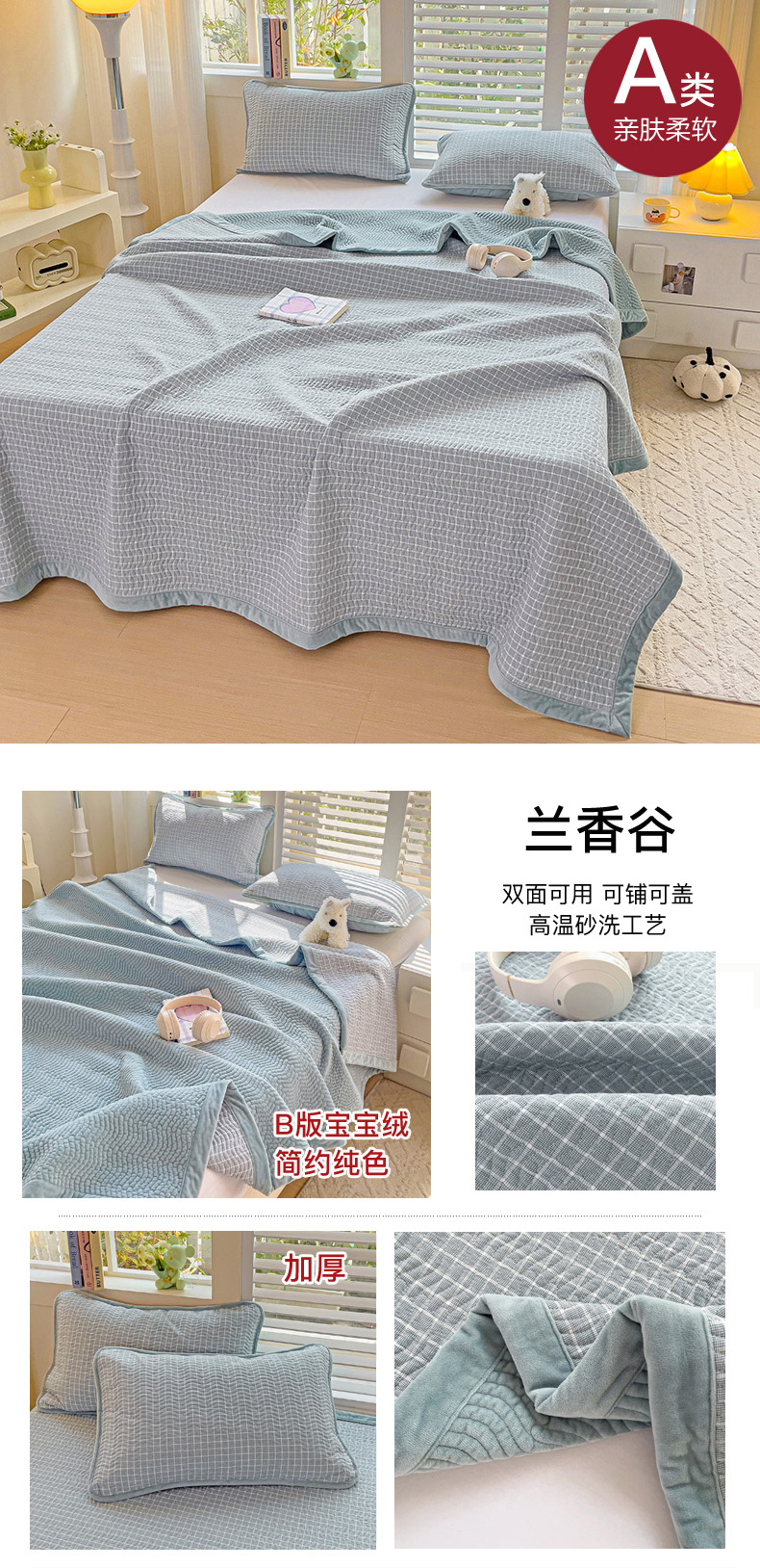 当前位置: 91家纺网 > 商品网购 > 床品套件 > 四件套 > 其它四件套 > 羽爱家纺 2024新款全棉色织水洗宝宝绒床盖四件套 玉格格