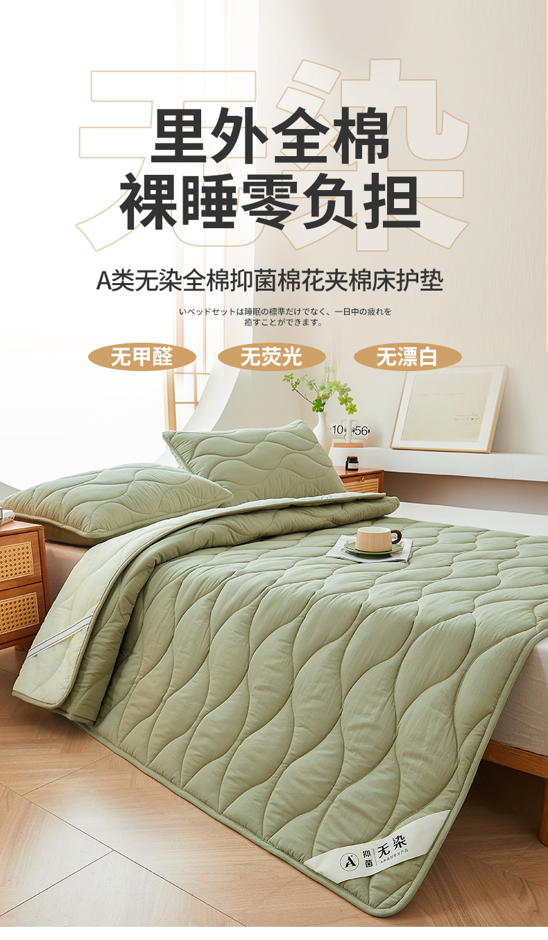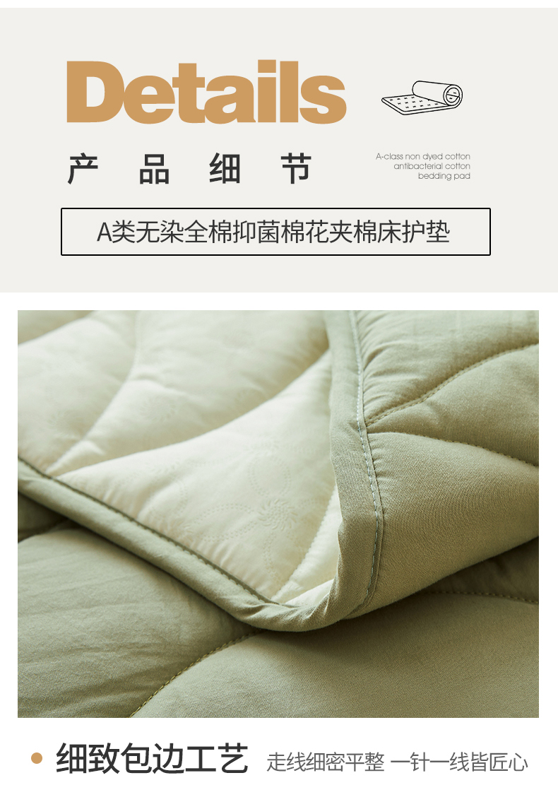 当前位置: 91家纺网 > 商品网购 > 床垫/床褥 > 普通床垫 > 3C 新款A类无染全棉抑菌棉花夹棉床护垫 无染-青果绿