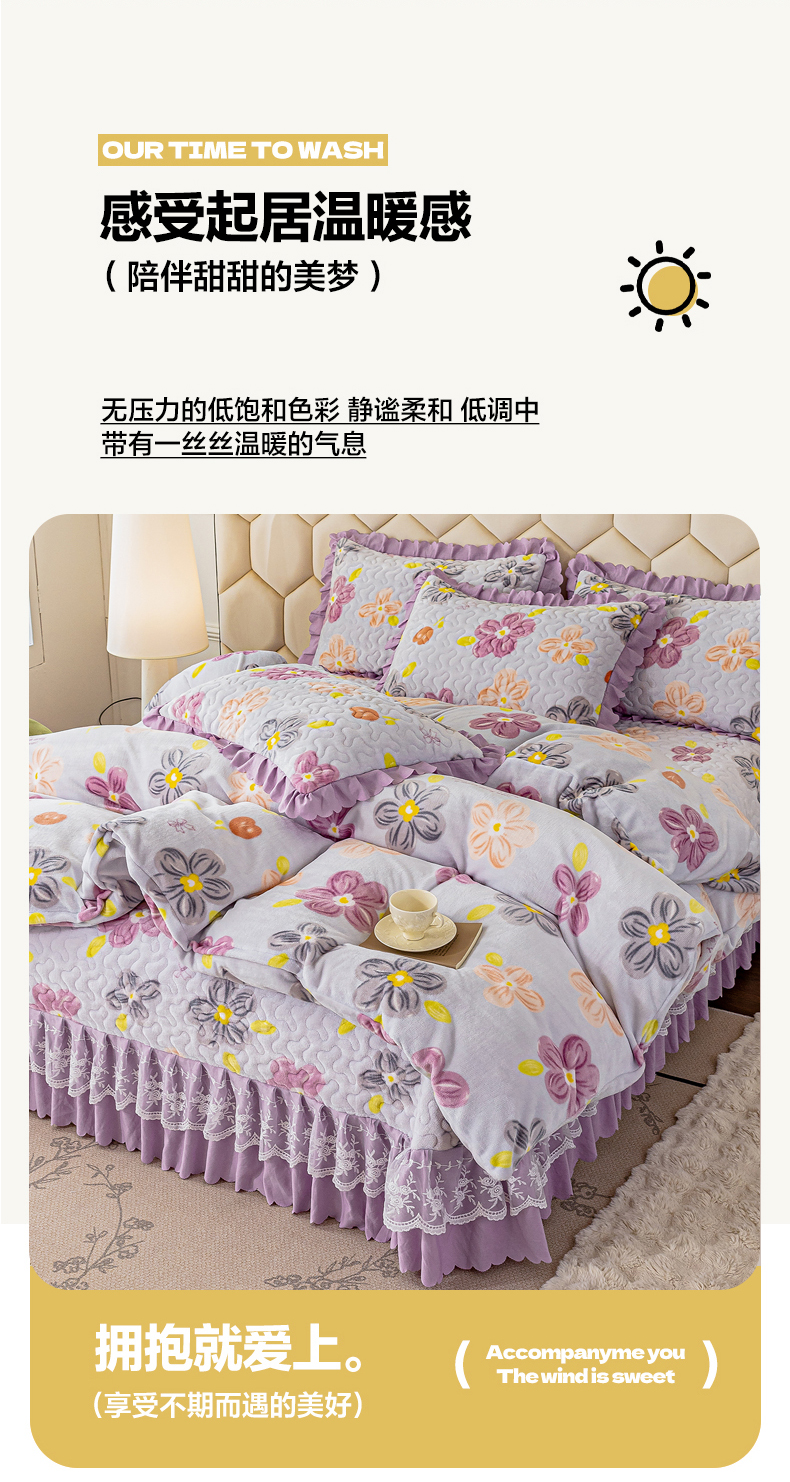 当前位置: 91家纺网 > 商品网购 > 床品套件 > 四件套 > 牛奶绒四件套 > 美莱家纺 2024直播热款加厚秋冬牛奶绒床盖单件床罩床盖四件套 花意满满粉