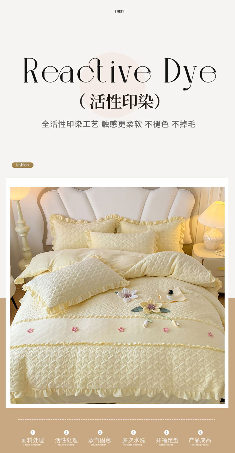 (总)兴美佳 2024新款水洗棉亲肤绗缝四件套--初恋,初恋-本白,初恋-大红,初恋-米黄,初恋-藕粉,初恋-浅兰,初恋-浅绿