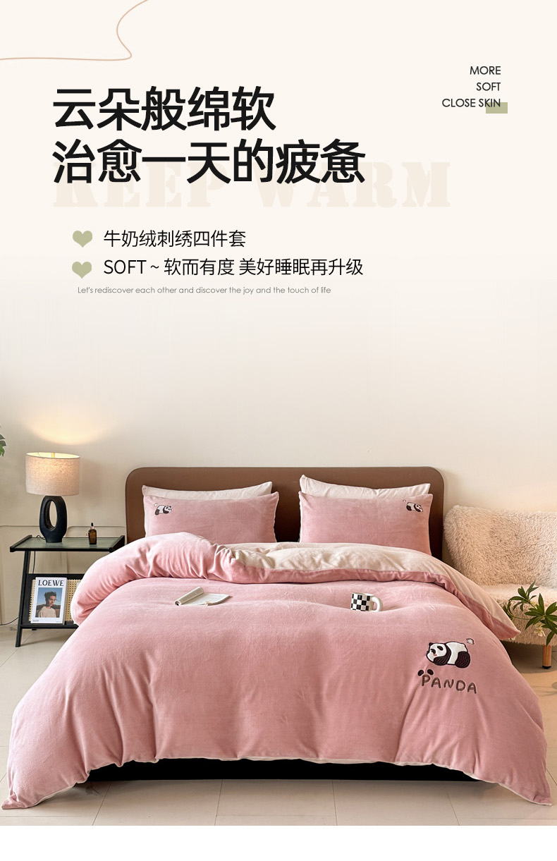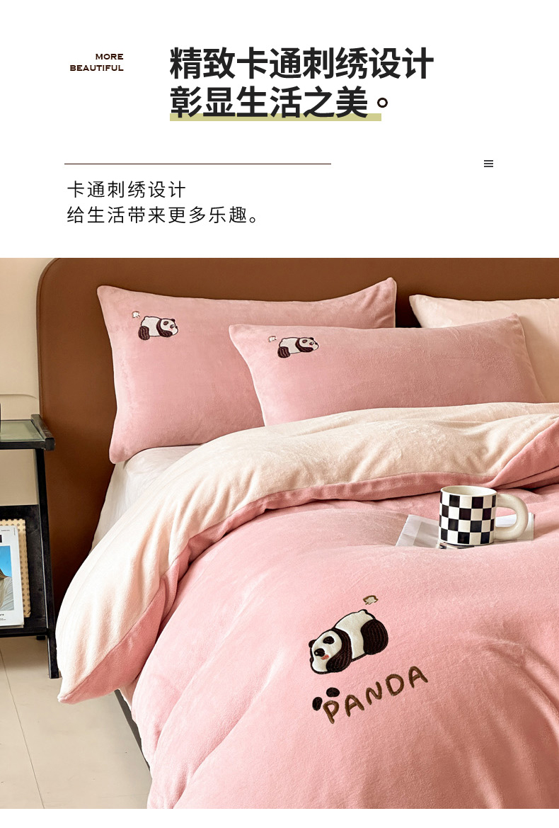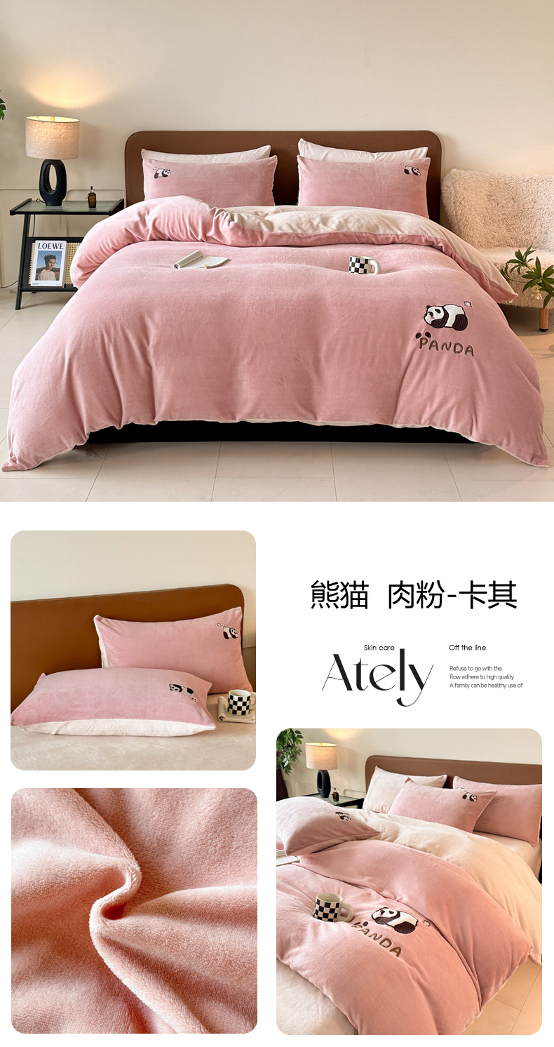 当前位置: 91家纺网 > 商品网购 > 床品套件 > 四件套 > 牛奶绒四件套 > 万盛家纺 2025新款卡通贴补绣牛奶绒四件套 熊猫-肉粉-卡其