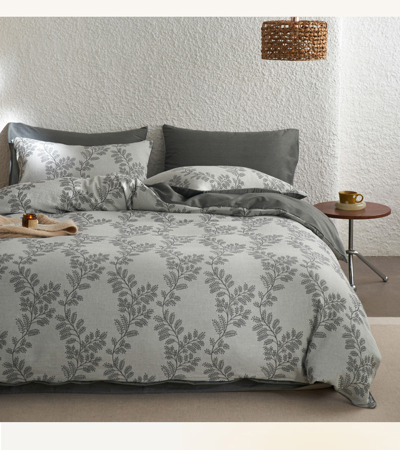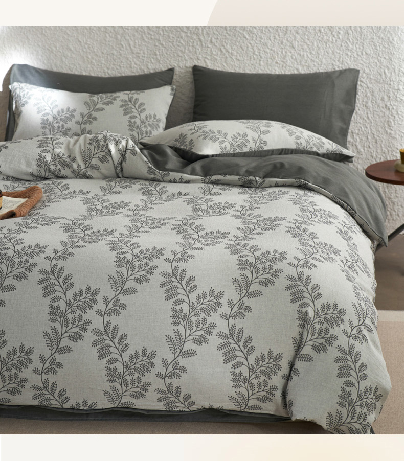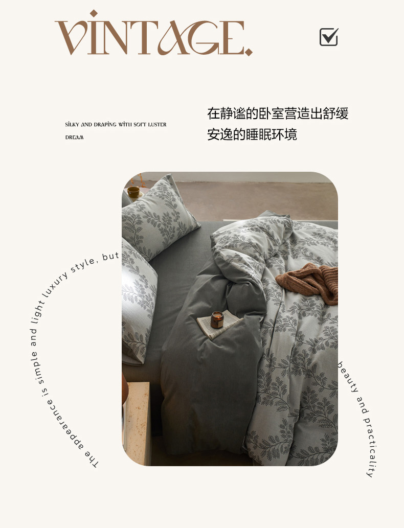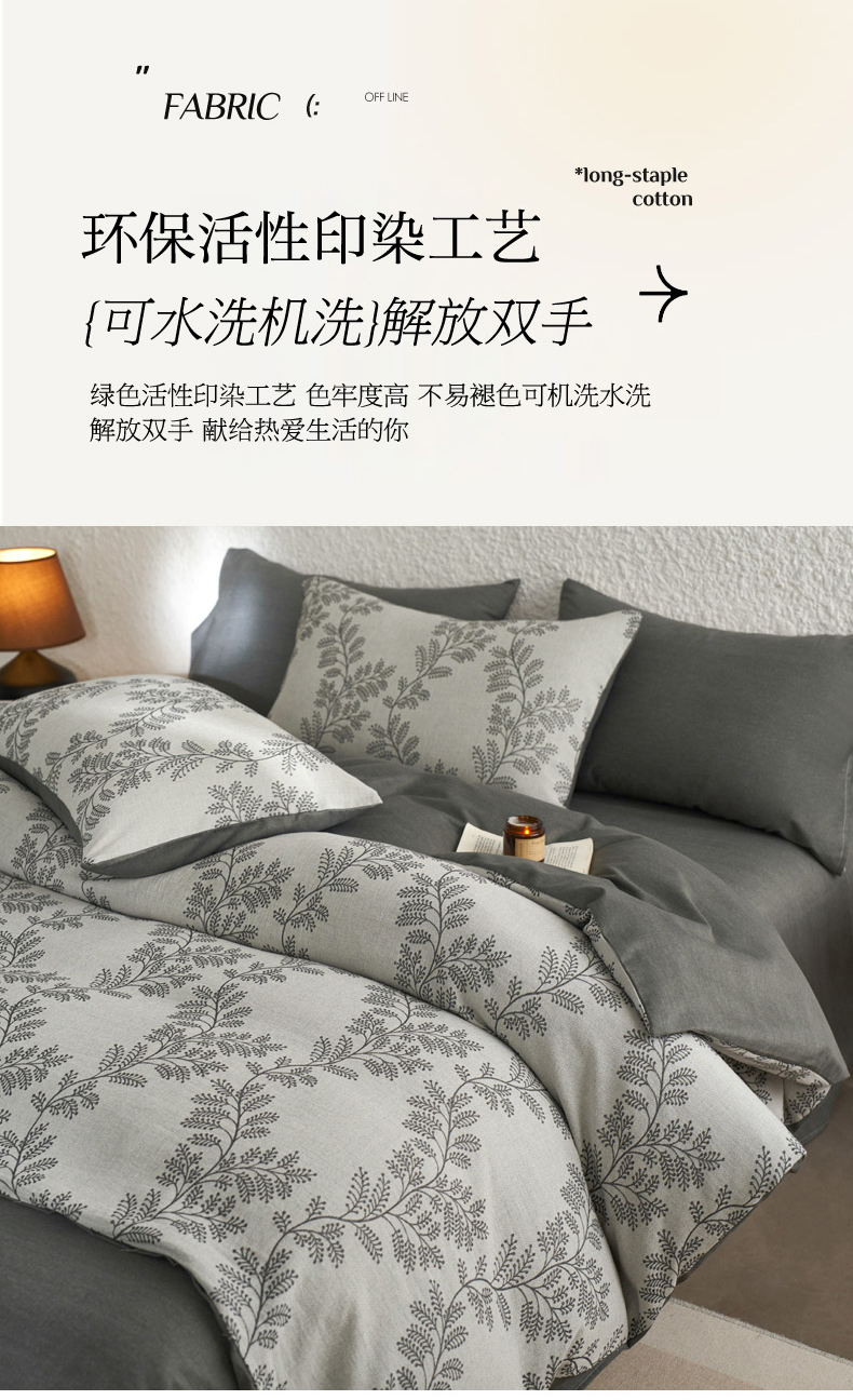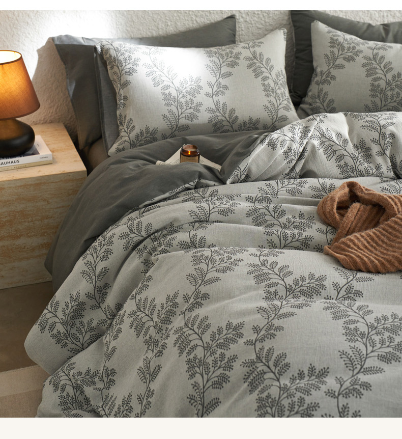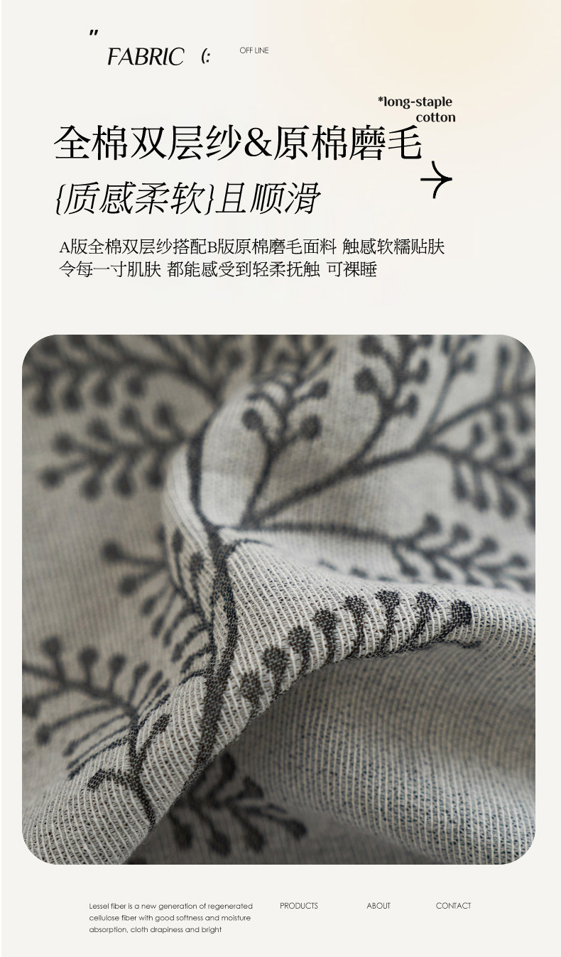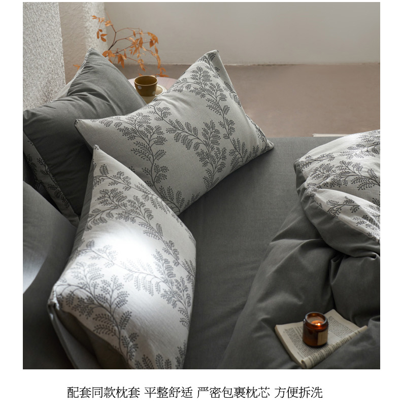 当前位置: 91家纺网 > 商品网购 > 床品套件 > 四件套 > 普通磨毛四件套 > 慕尚家纺 2025新款磨毛提花双层纱四件套 慕叶灰