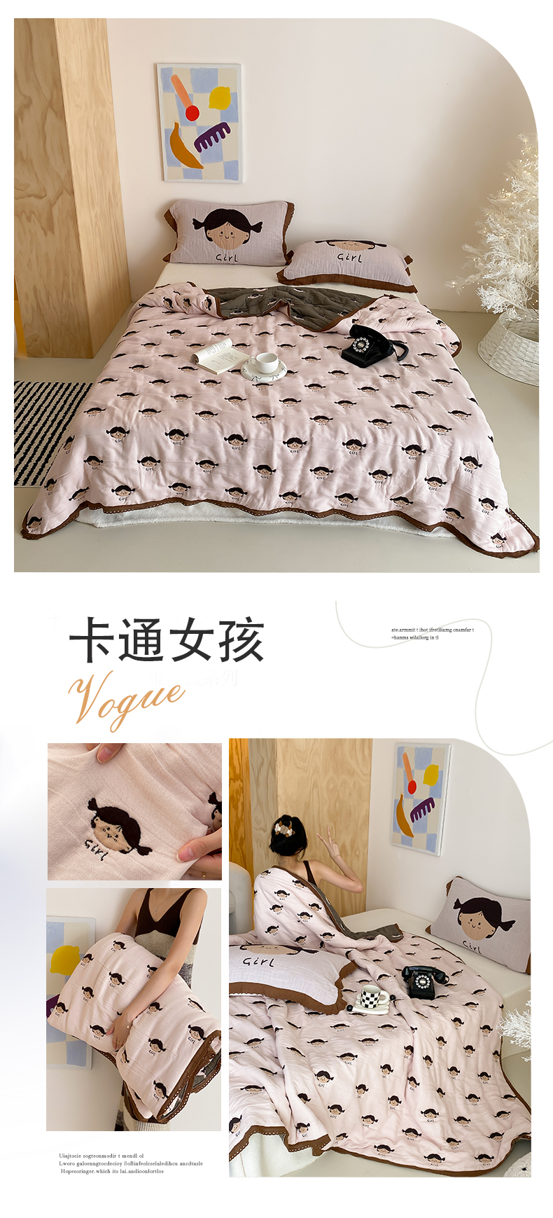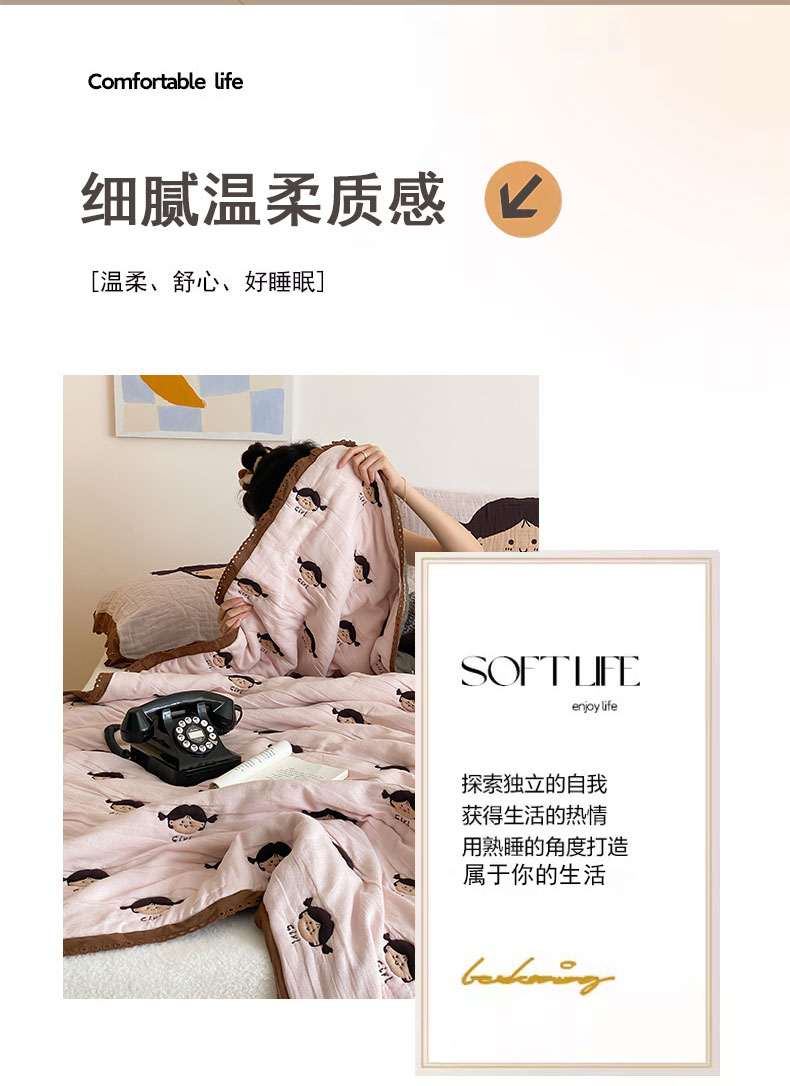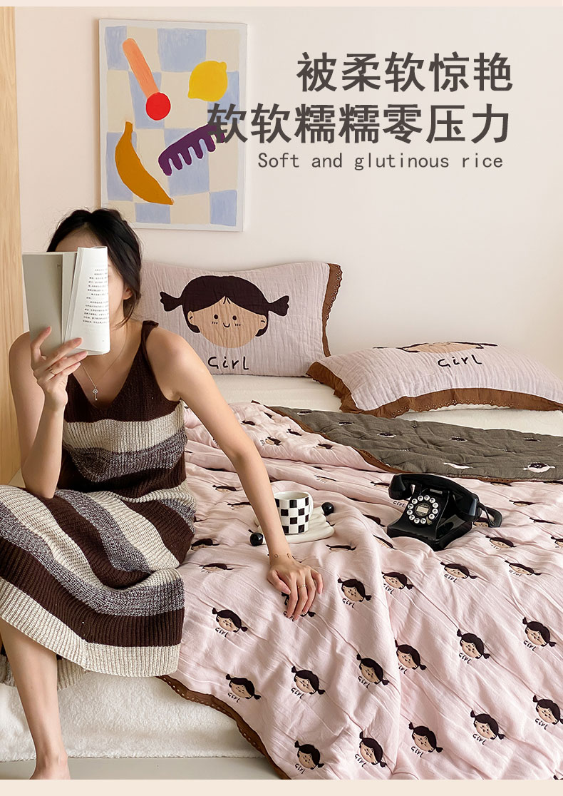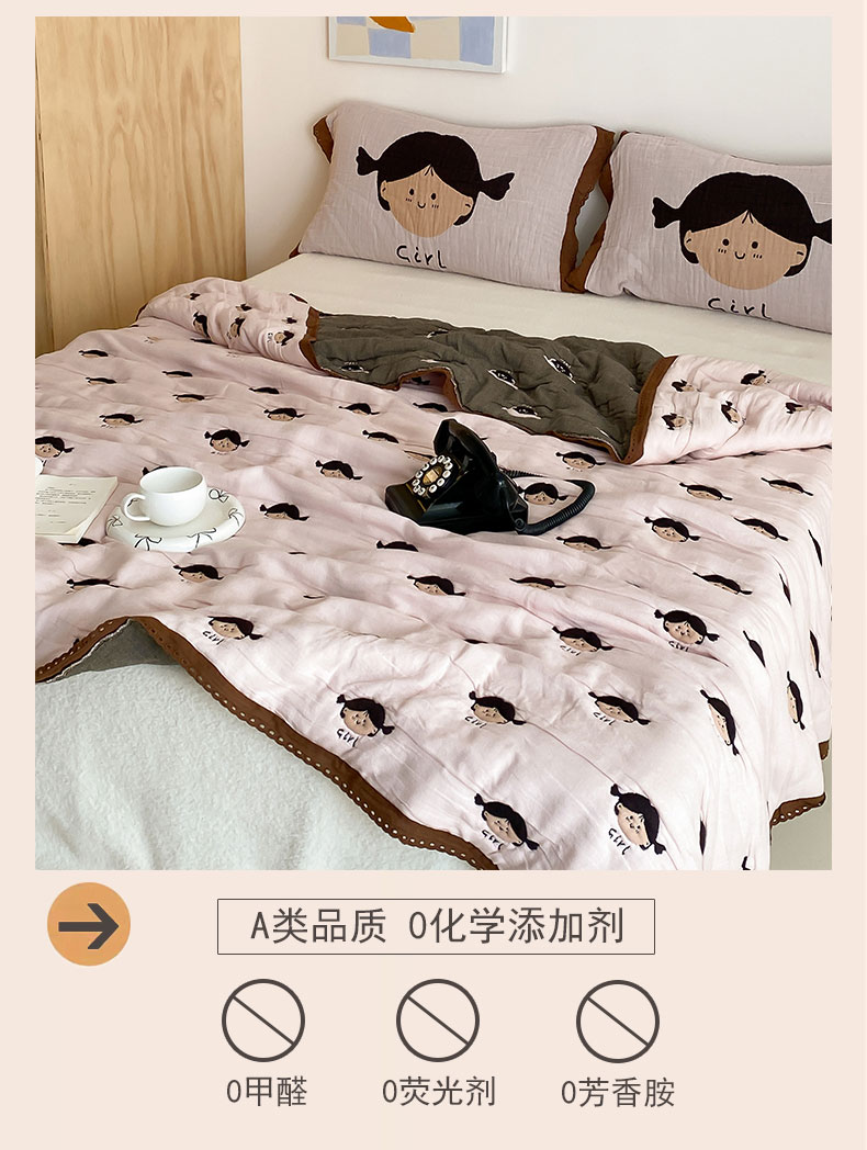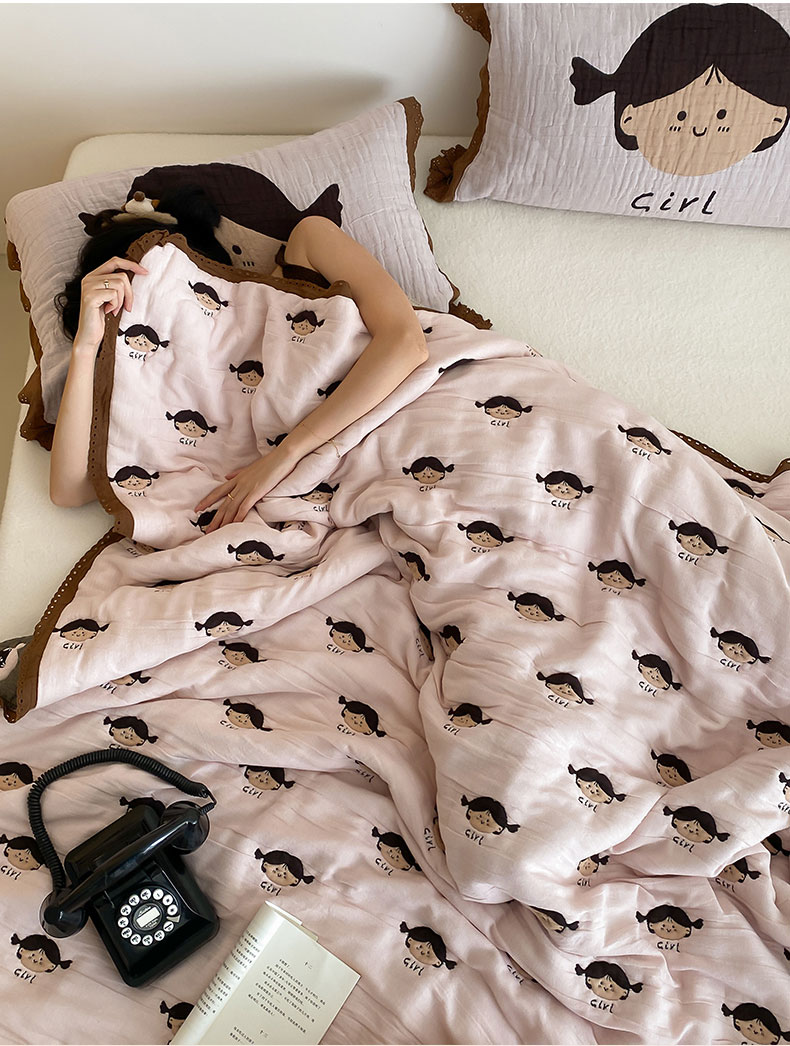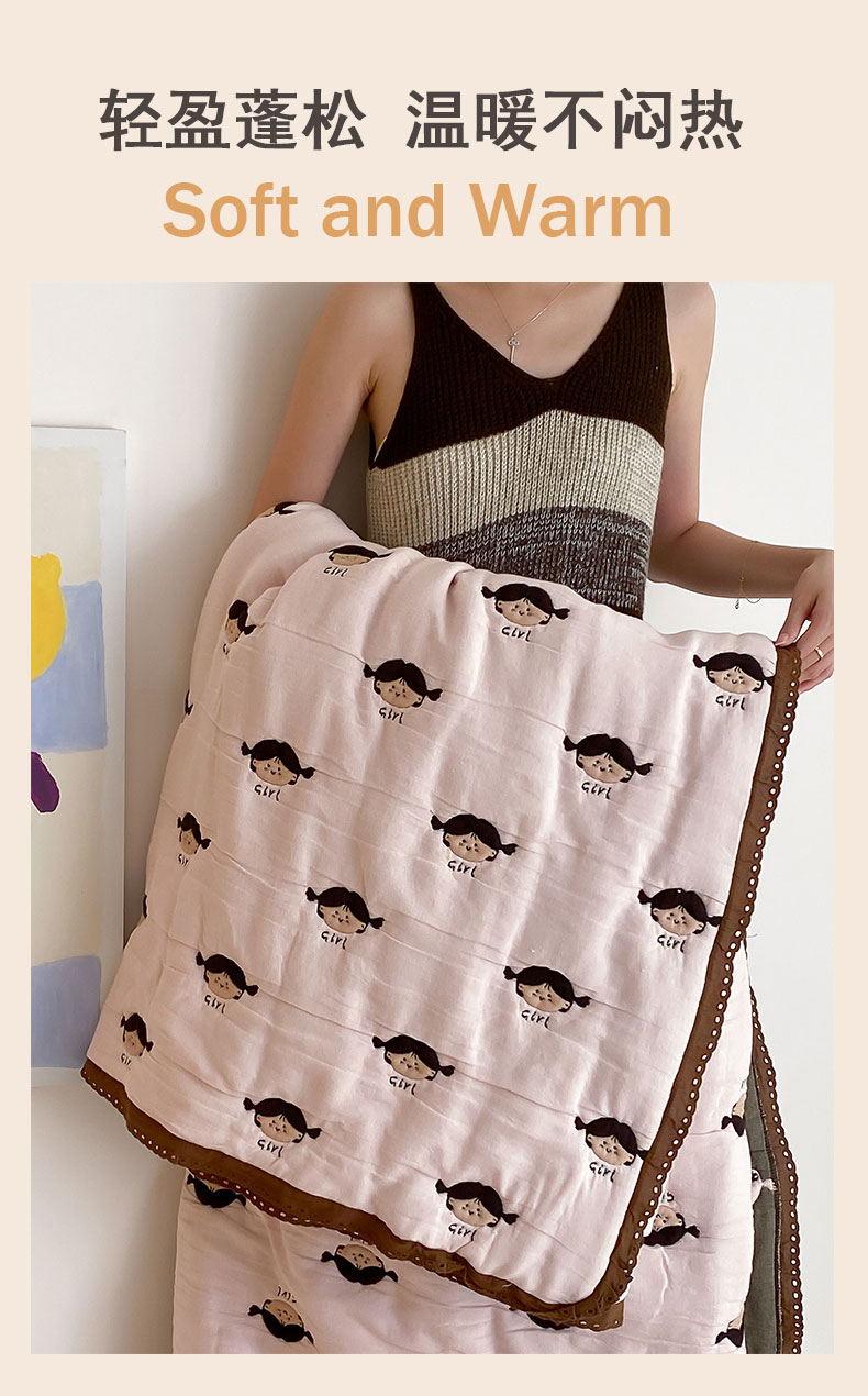 商品名称:麻依 2024新款十层纱布泡芙被纱布被子秋冬被 卡通女孩
