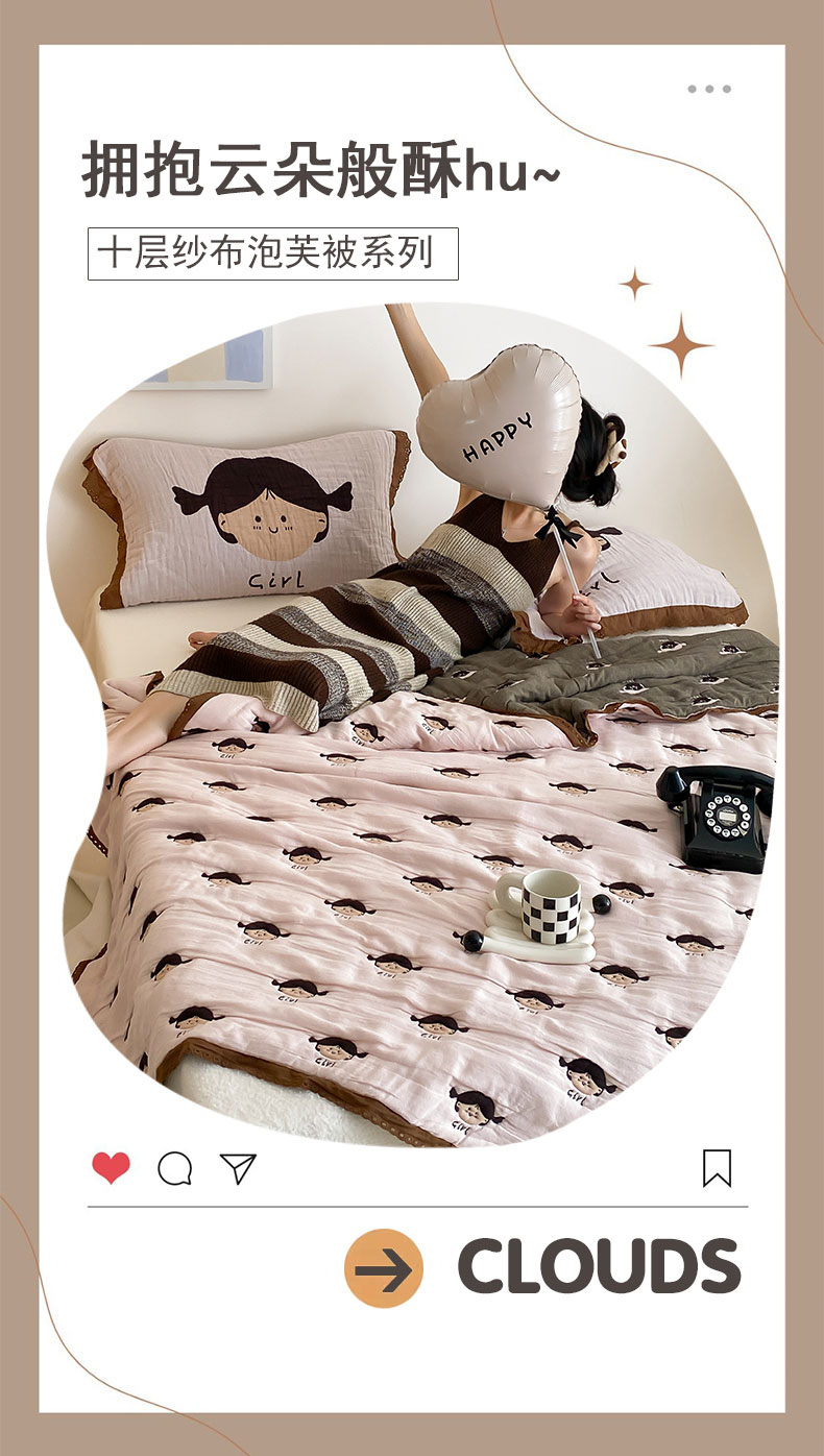 (总)麻依 2025新款十层纱布棉花糖春秋被被子泡芙被,抱抱熊,点点-白,点点-灰,花影-粉,花影-米,墨心,奶油草莓,帕帕熊,牵手小熊,生日腊肠狗,甜甜圈小熊,小蝴蝶结,小南瓜,小柿子,樱桃香