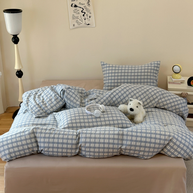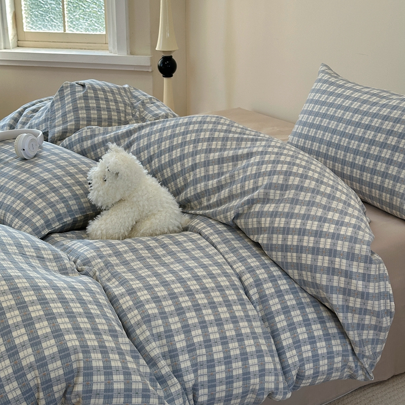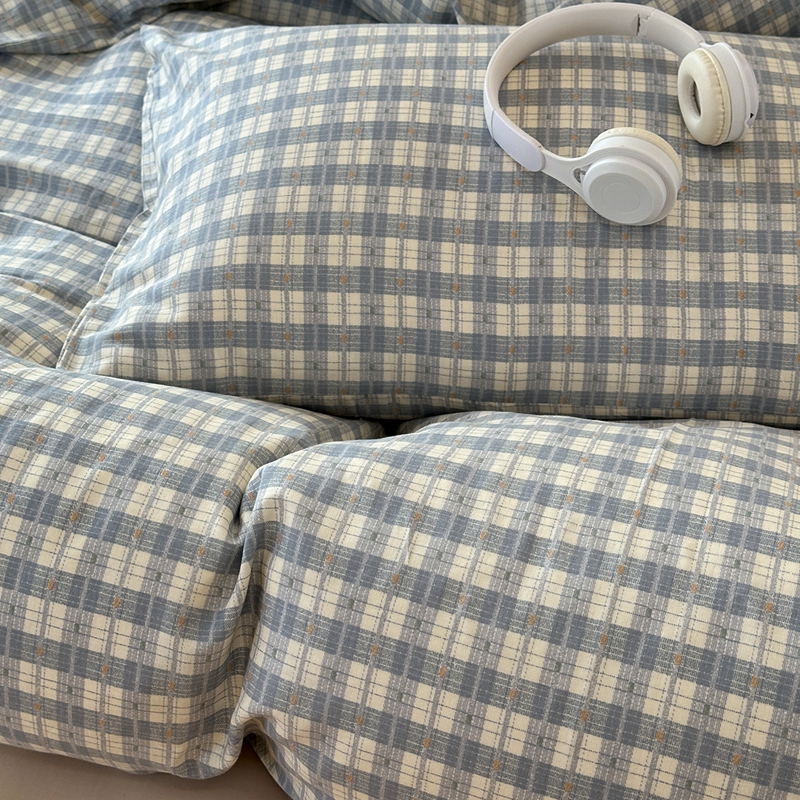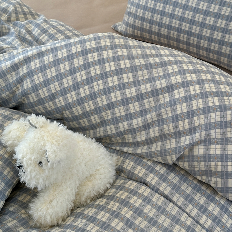 洋铭区(原狠狠爱) 2024新款无边全棉双层纱四件套 绅士蓝格
