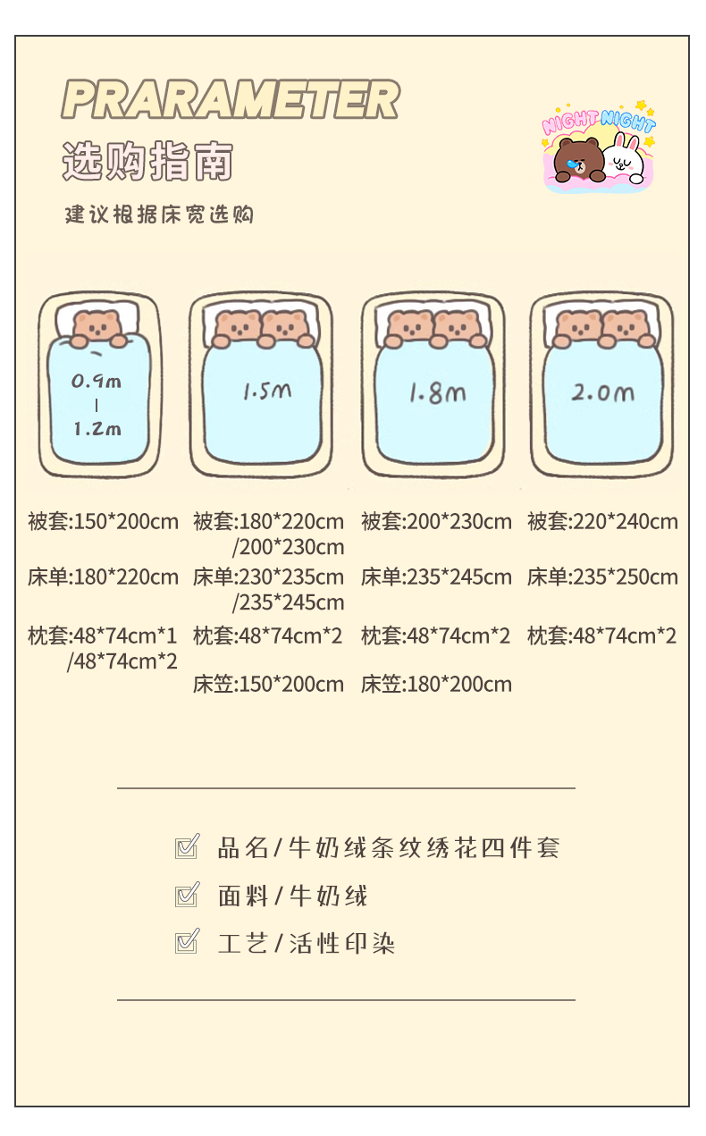 商品名称:(总)繁花家居 2024新款牛奶绒条纹卡通绣花四件套--永恒韵律