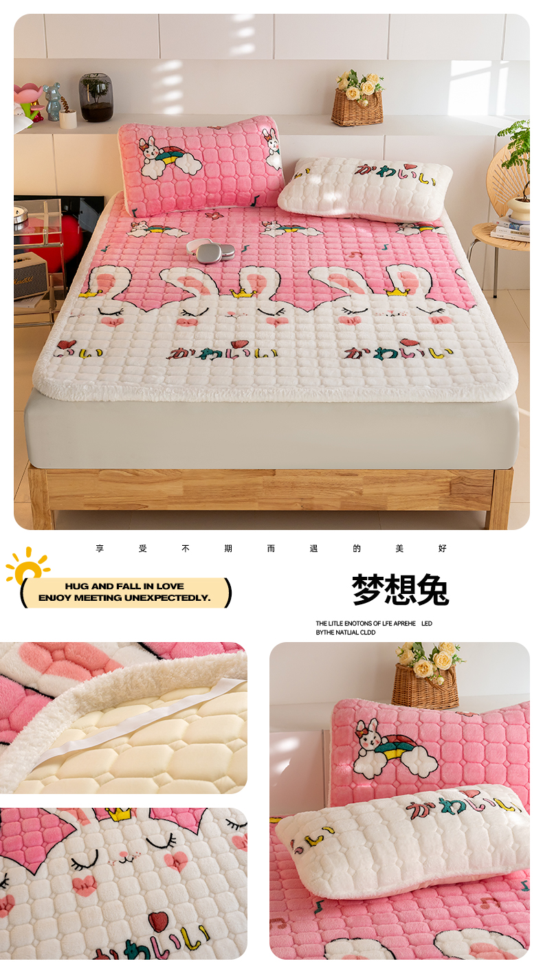 商品名称:花言狐语 2025新款北极绒保暖夹棉加厚床褥-大床 小海豚