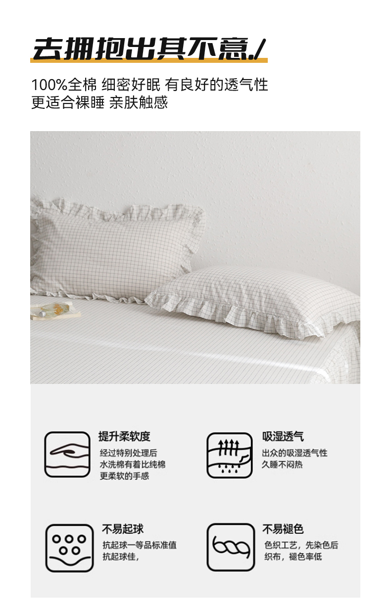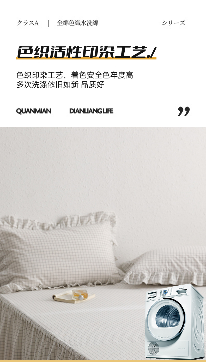 (总)忘忧草 2025新款全棉色织水洗棉床裙纯棉夹棉加厚纯色无印风,格韵-白色,格韵-豆绿,格韵-粉玉,格韵-灰色,格韵-卡其,格韵-浅蓝