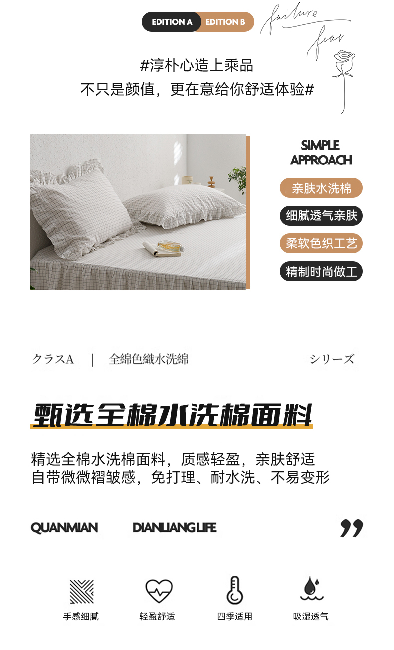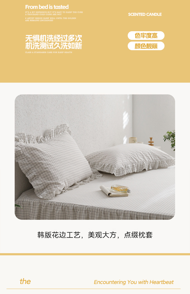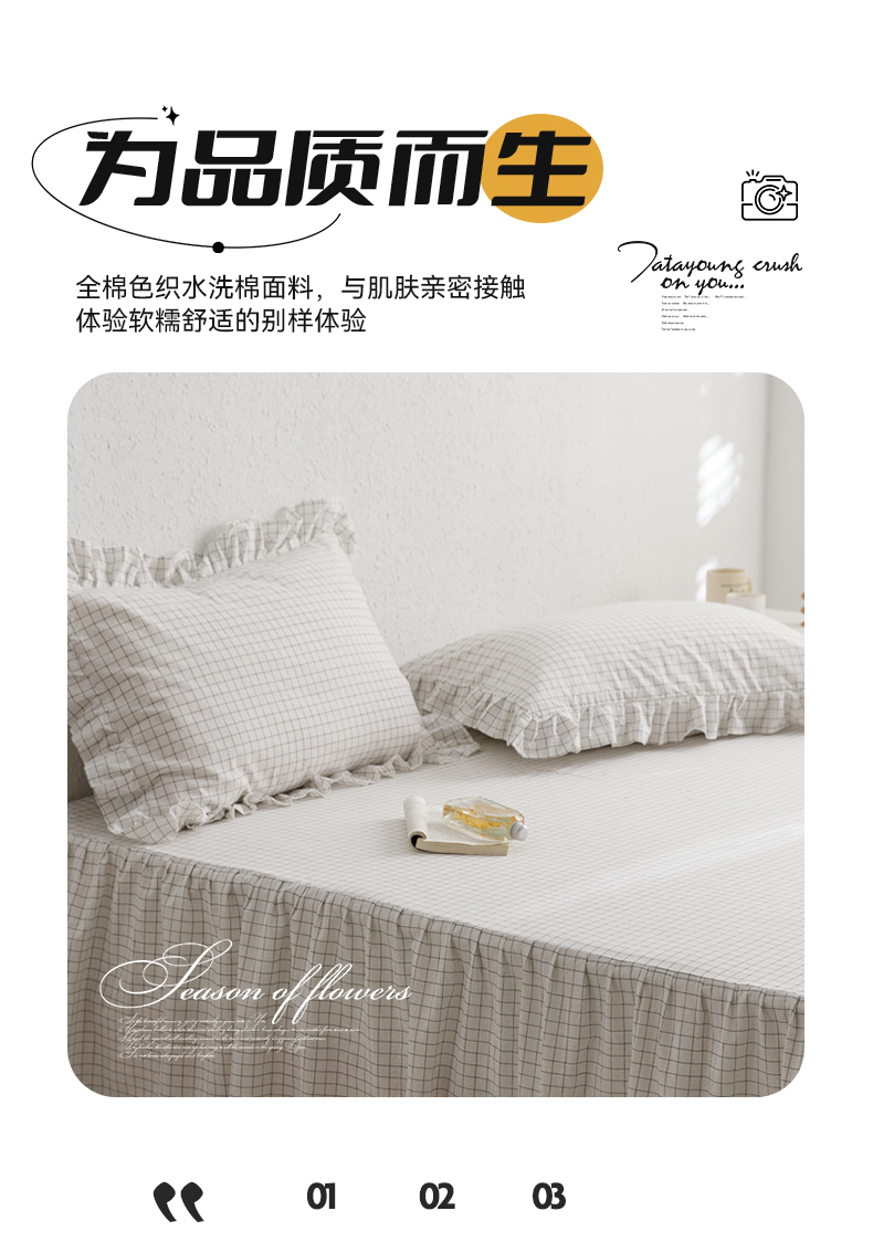 (总)忘忧草 2025新款色织水洗全棉床笠式床裙夹棉款纯棉花边床笠-花颜系列,花颜-白,花颜-粉,花颜-灰,花颜-咖,花颜-蓝,花颜-绿
