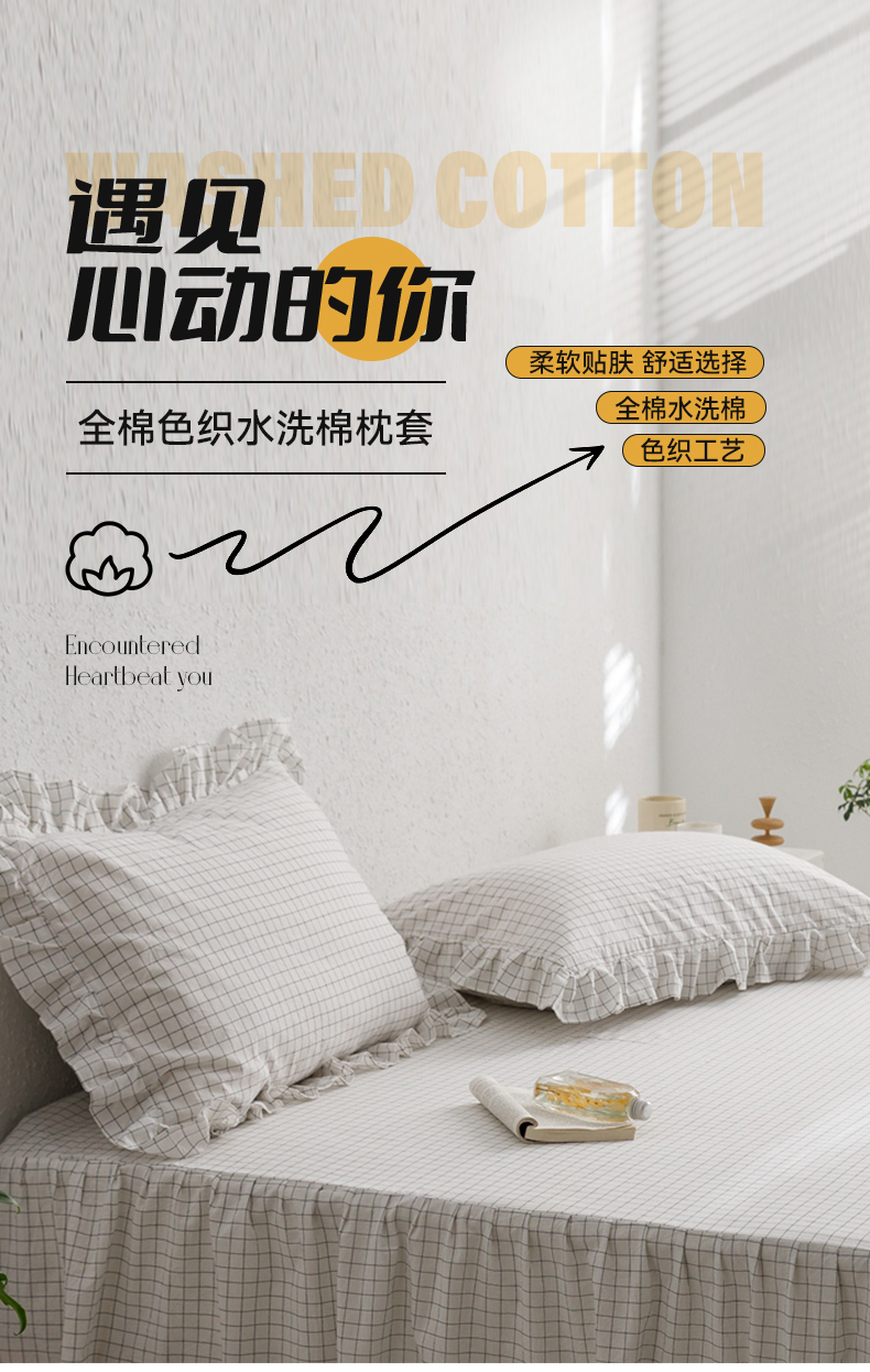 商品名称:忘忧草 2024新款全棉格子花边枕套 格物-白