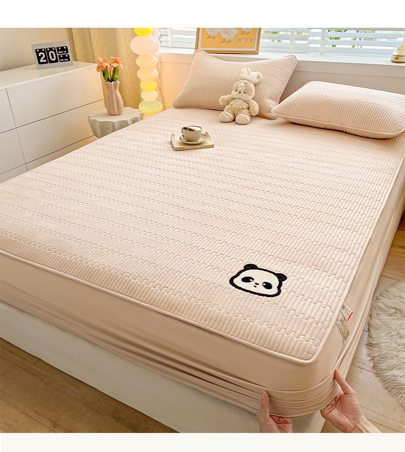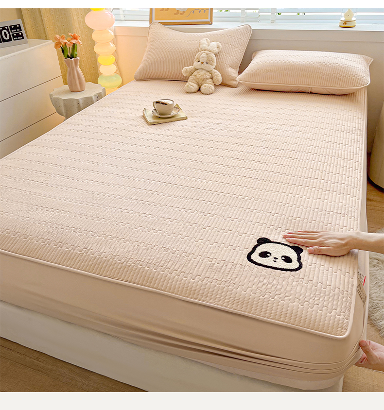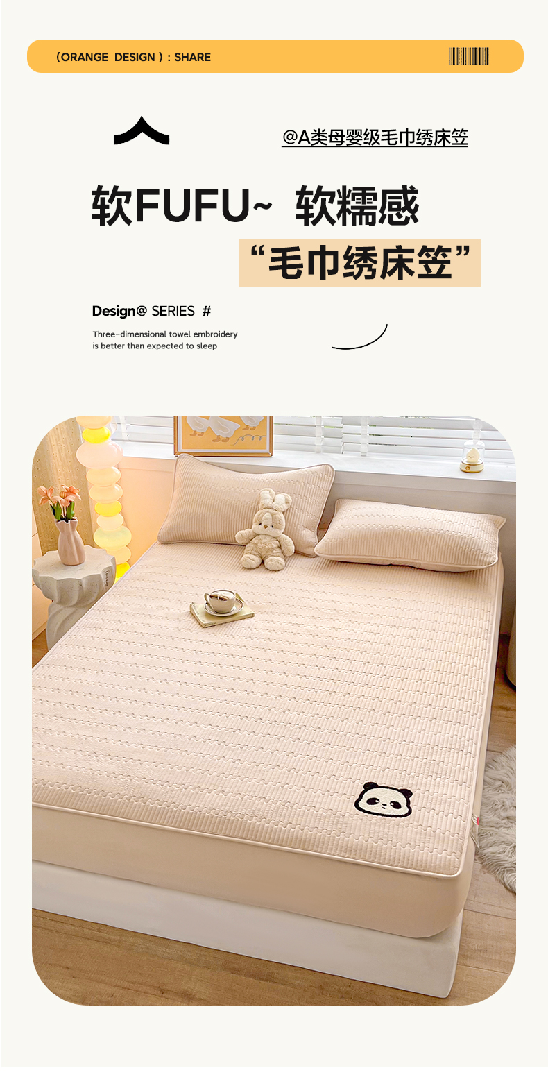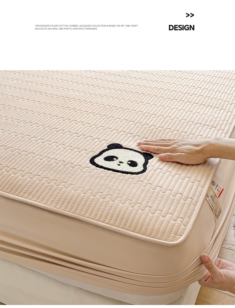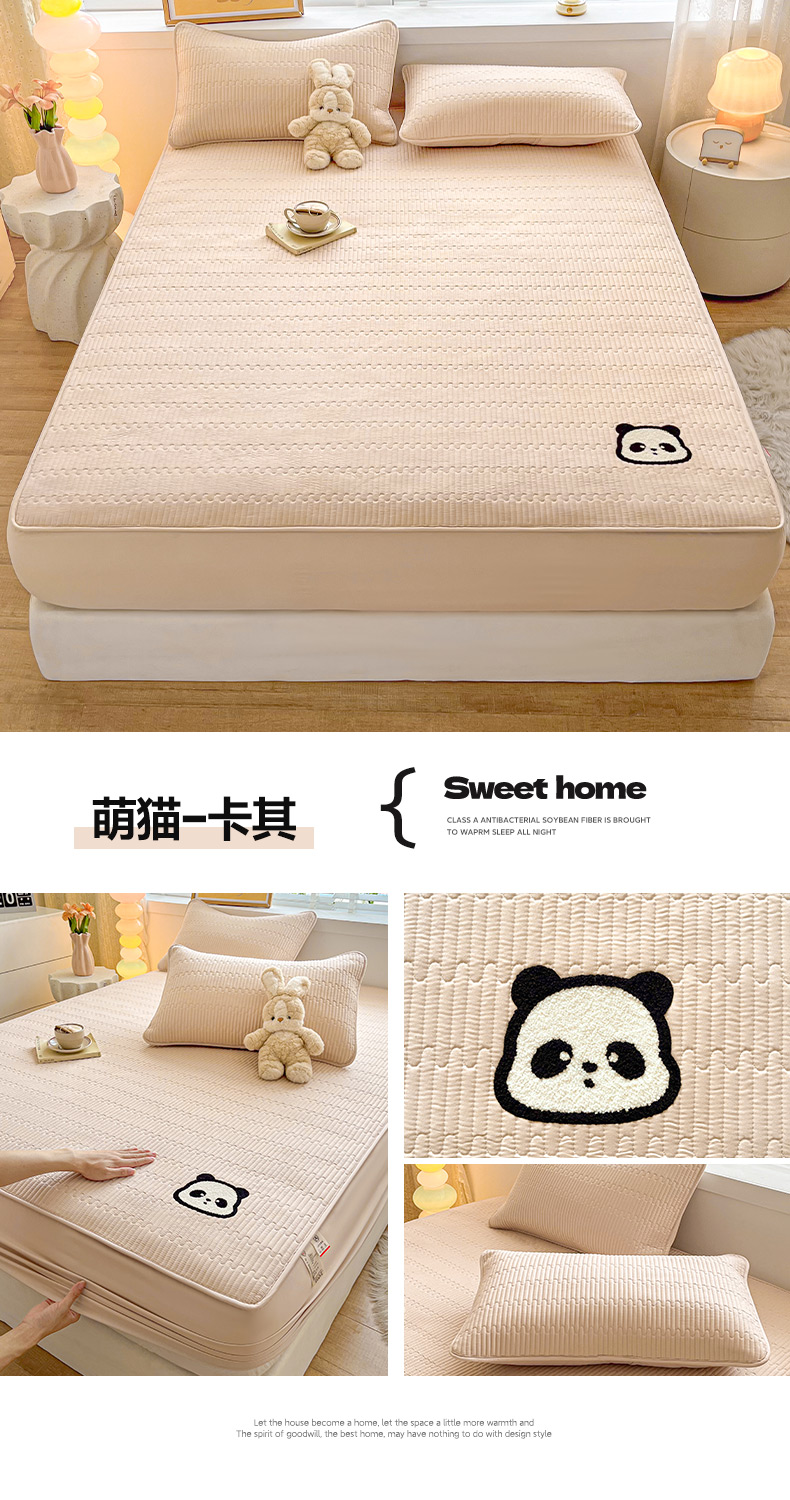 芬晴家纺 2024新款A类母婴级毛巾绣夹棉床笠-萌猫-大床款 萌猫-卡其