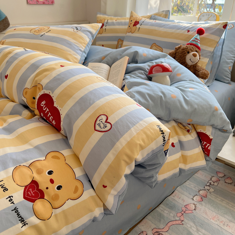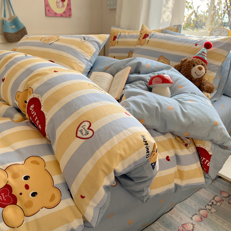 桃喜 2024新款小熊系列全棉卡通ins四件套 吐司小熊