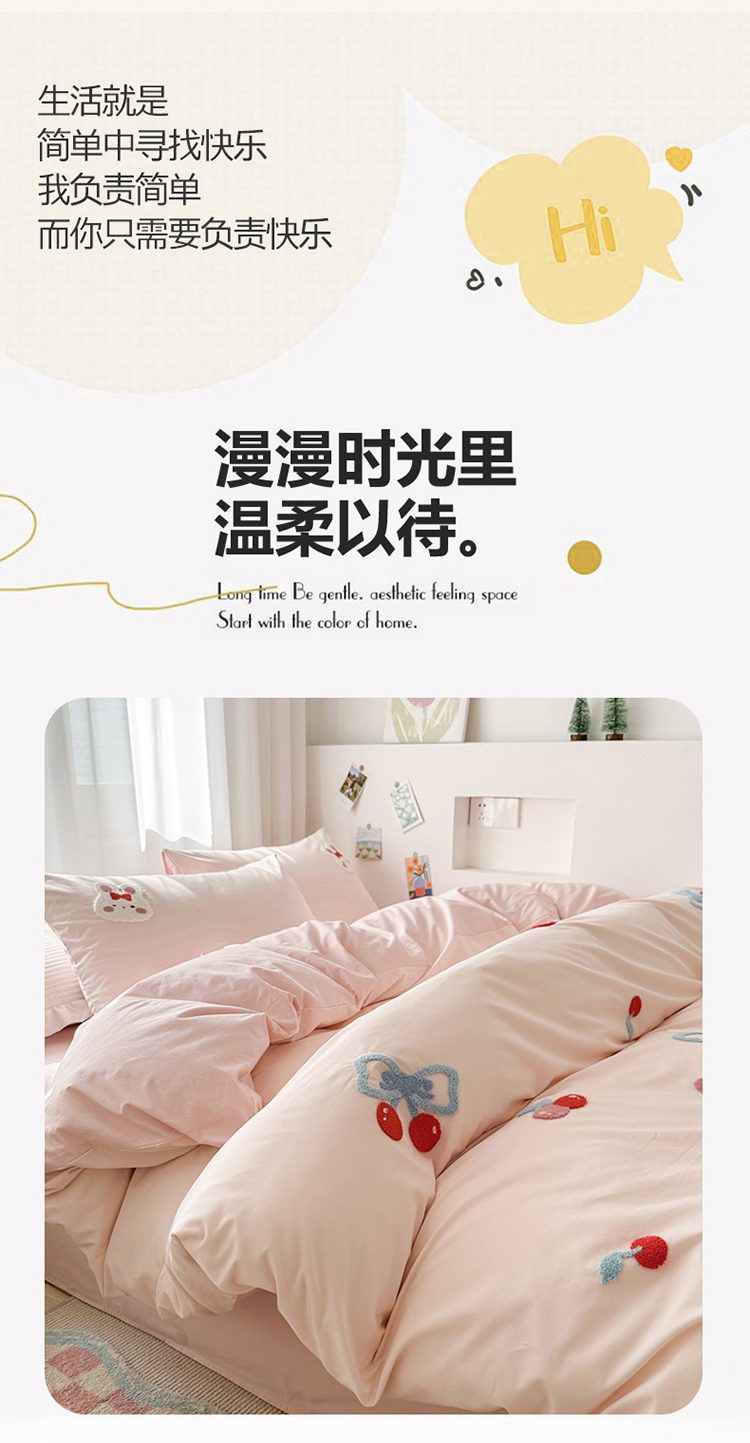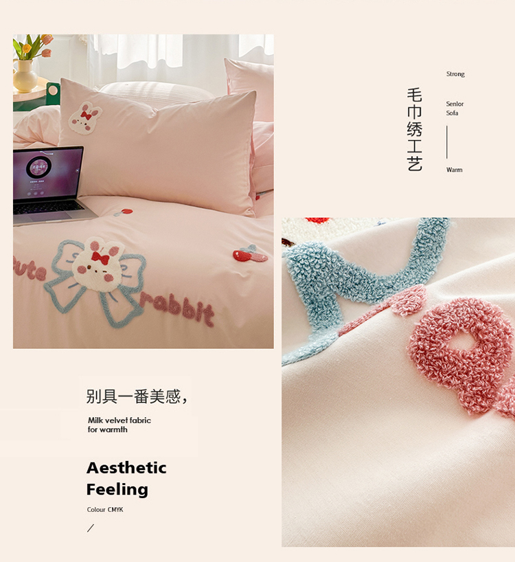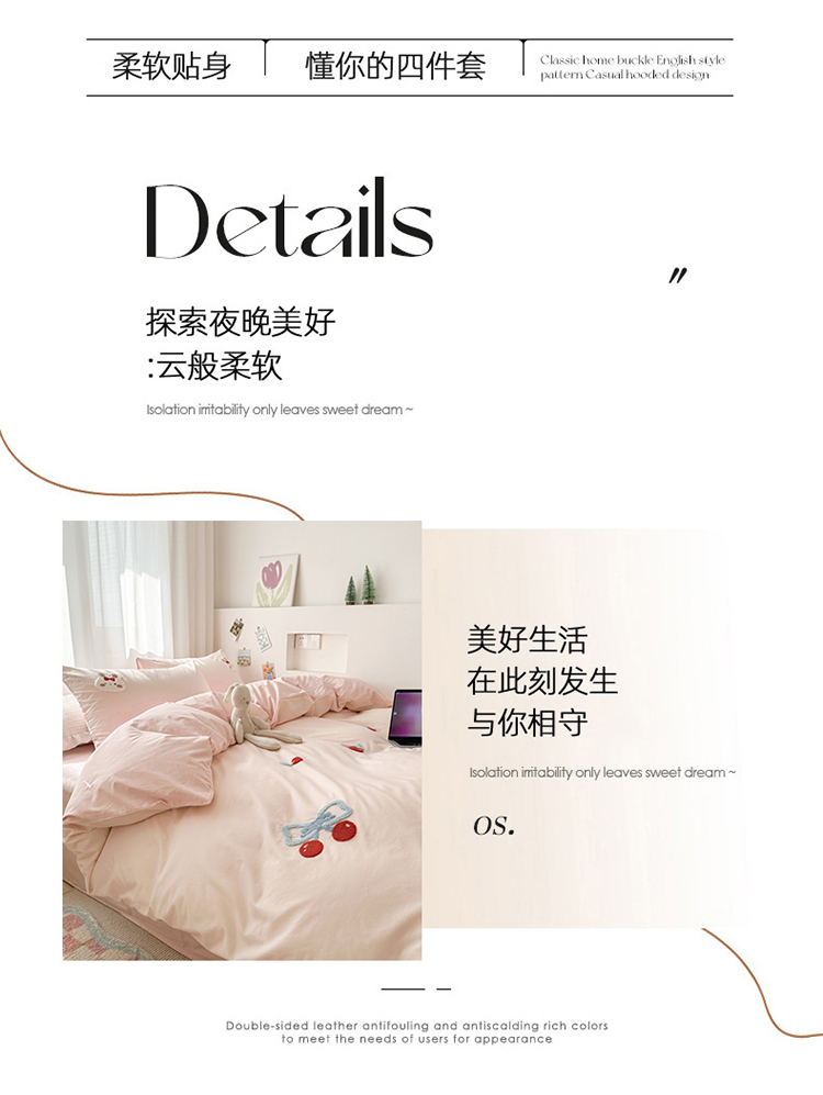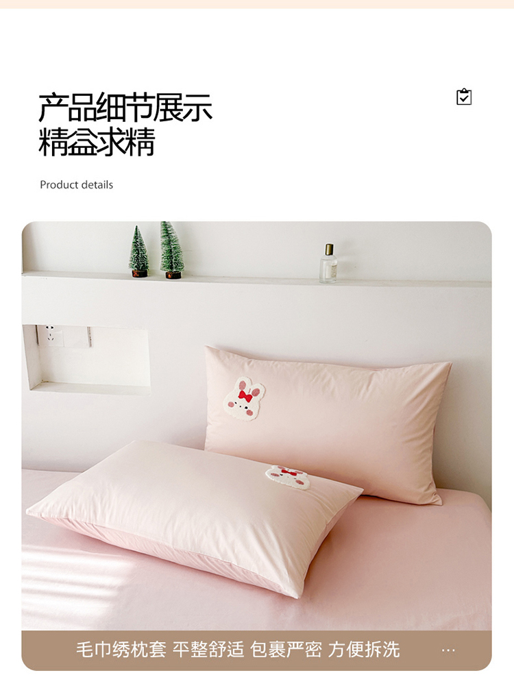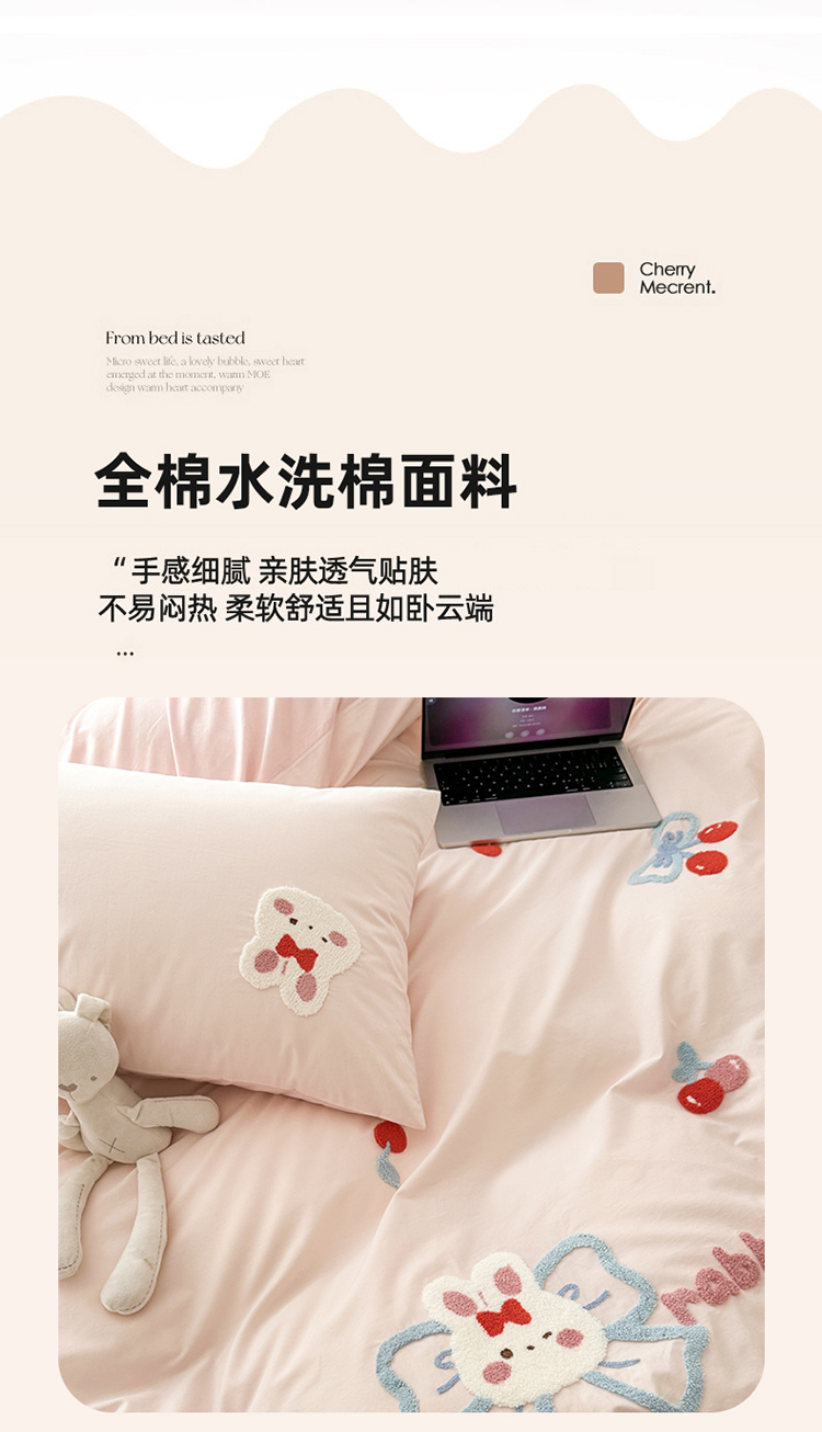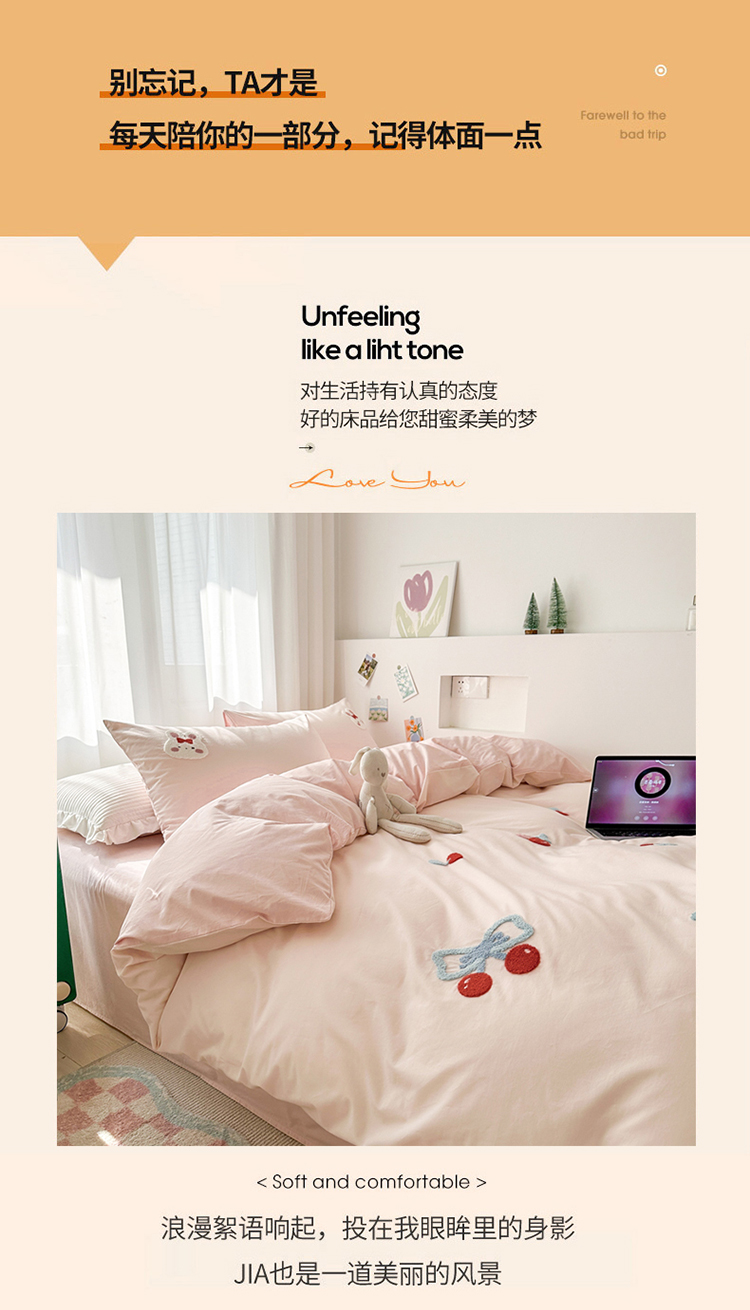 商品名称:买家秀热款花型不断货 母婴级A类ins风水洗棉四件套水洗棉毛巾绣四件套水洗棉床笠四件套提花绣花四件套 樱桃兔