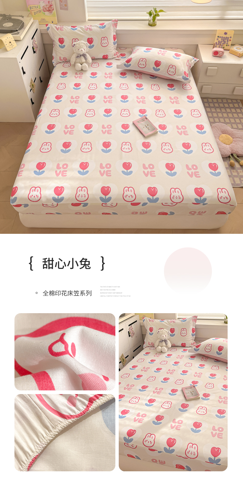 • 91家纺网 家纺一手货源 找家纺 A类母婴级卡通花卉儿童纯棉全棉床单纯棉全棉床笠全棉纯棉床单全棉纯棉床笠三件套 甜心小兔