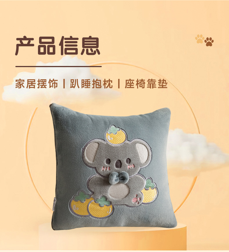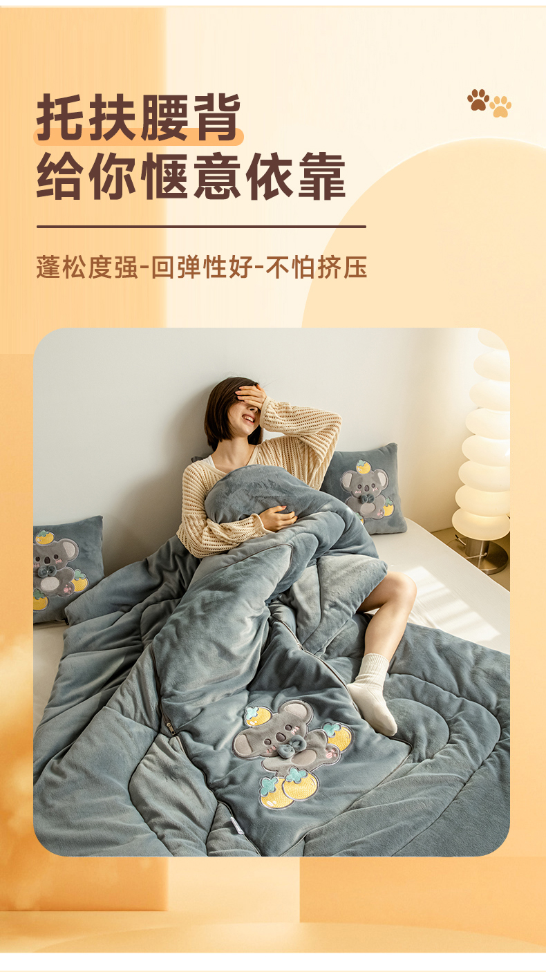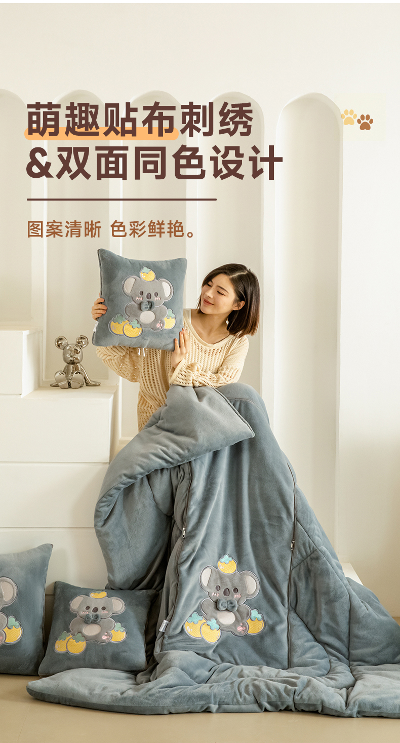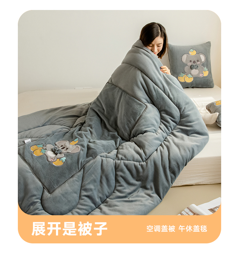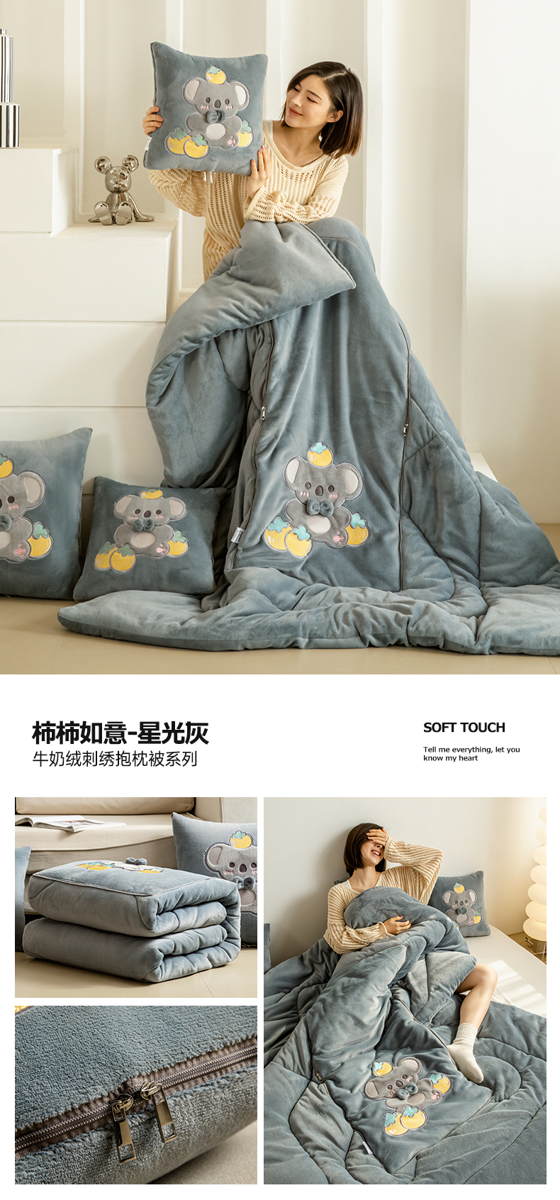 商品名称:雷人家纺 2024新款A类加厚加重贴布绣牛奶绒抱枕被 柿柿如意星光灰