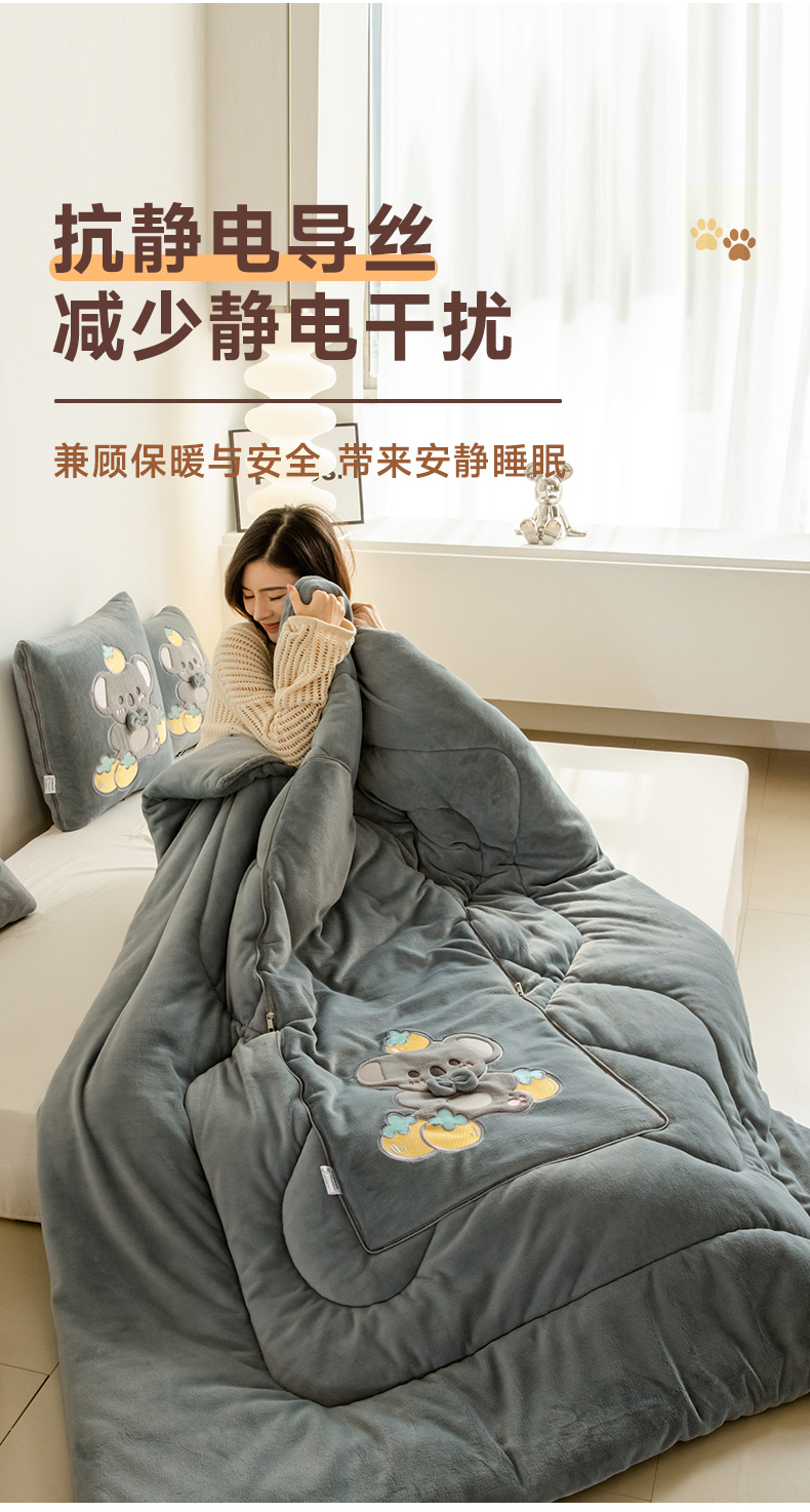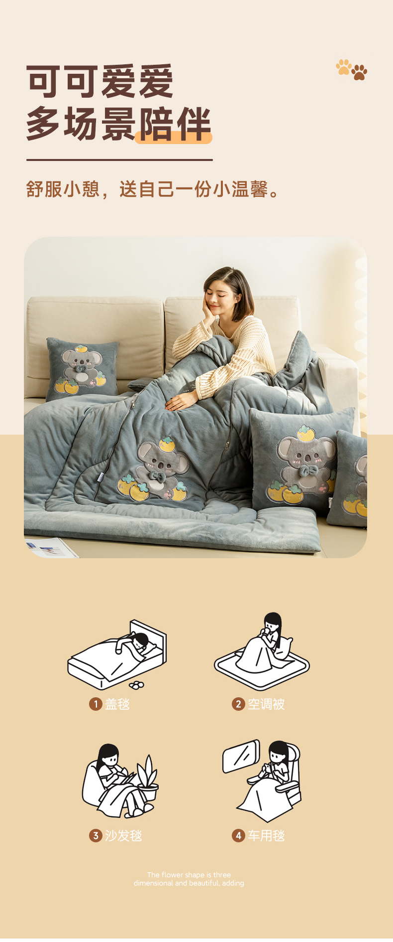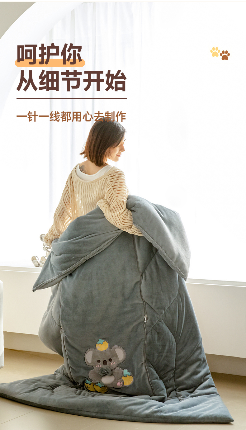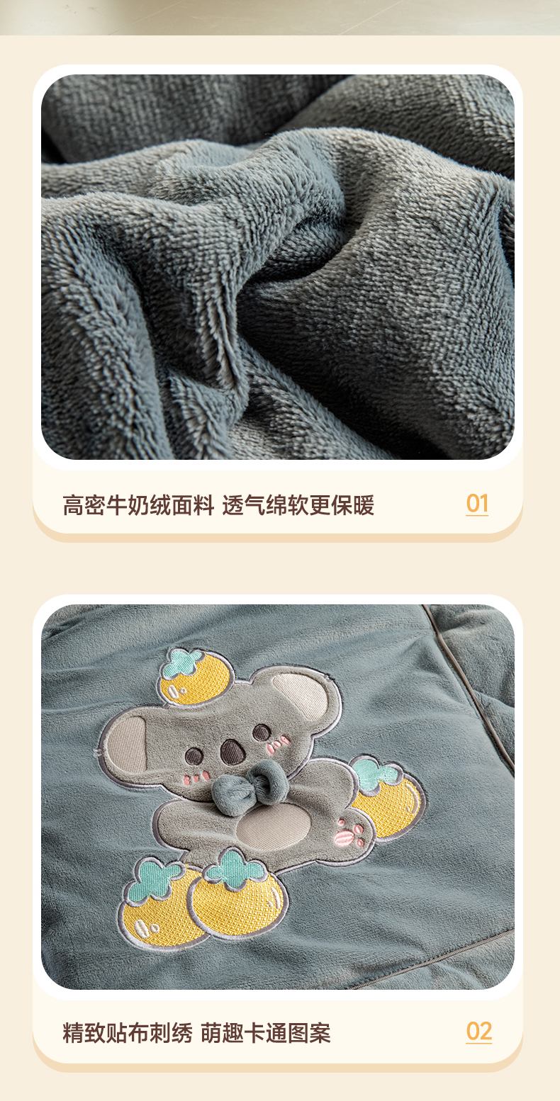商品名称:雷人家纺 2024新款A类加厚加重贴布绣牛奶绒抱枕被 柿柿如意星光灰