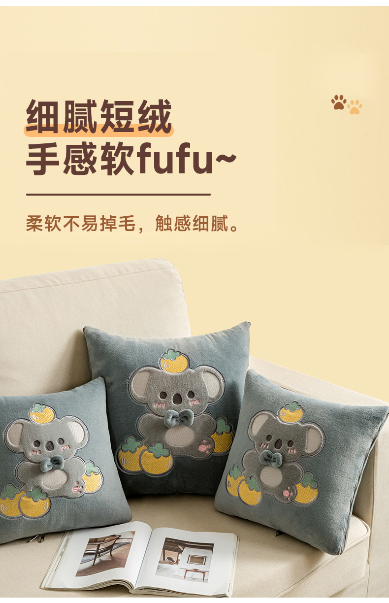 雷人家纺 2024新款A类加厚加重贴布绣牛奶绒抱枕被 柿柿如意星光灰