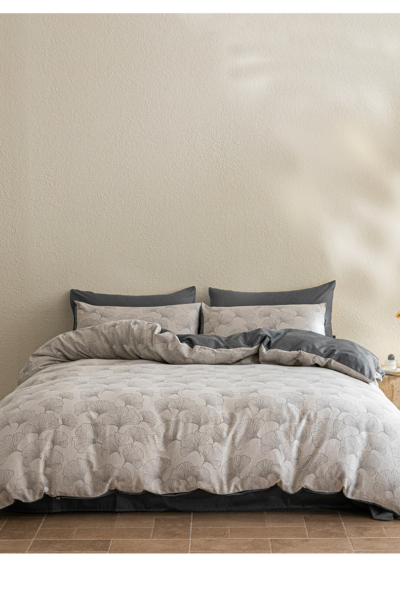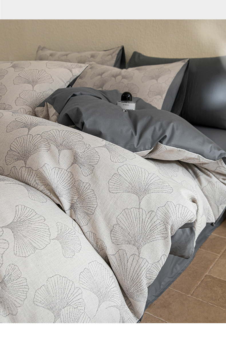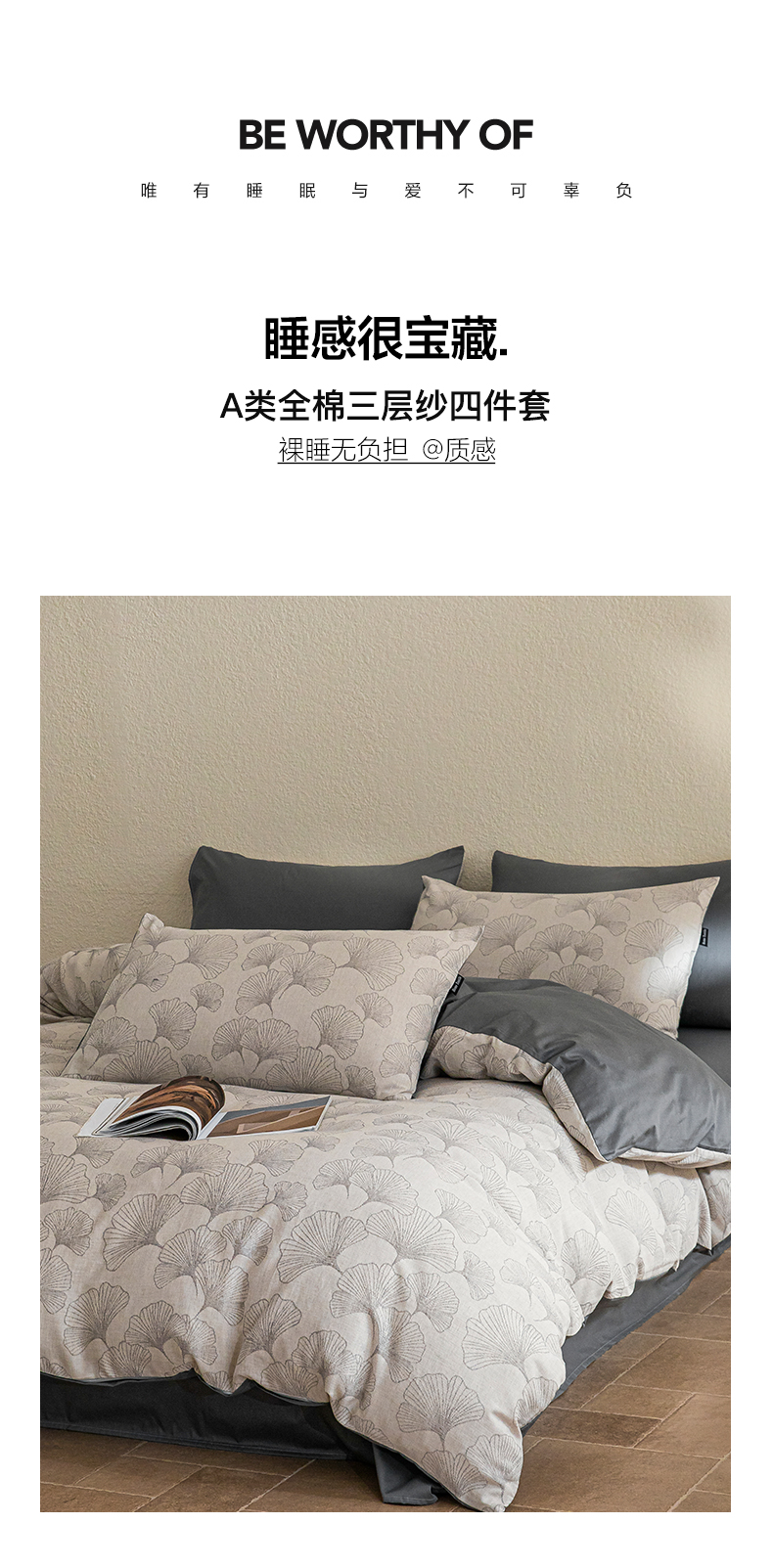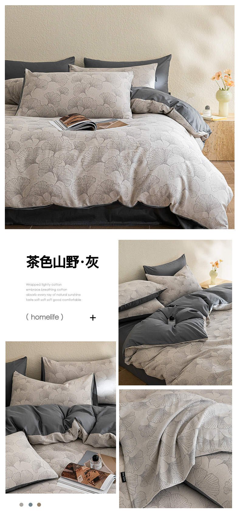 商品名称:2025新款全棉A类三层纱大提花纯棉四件套 茶色山野-灰