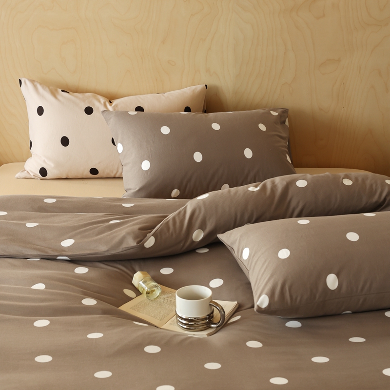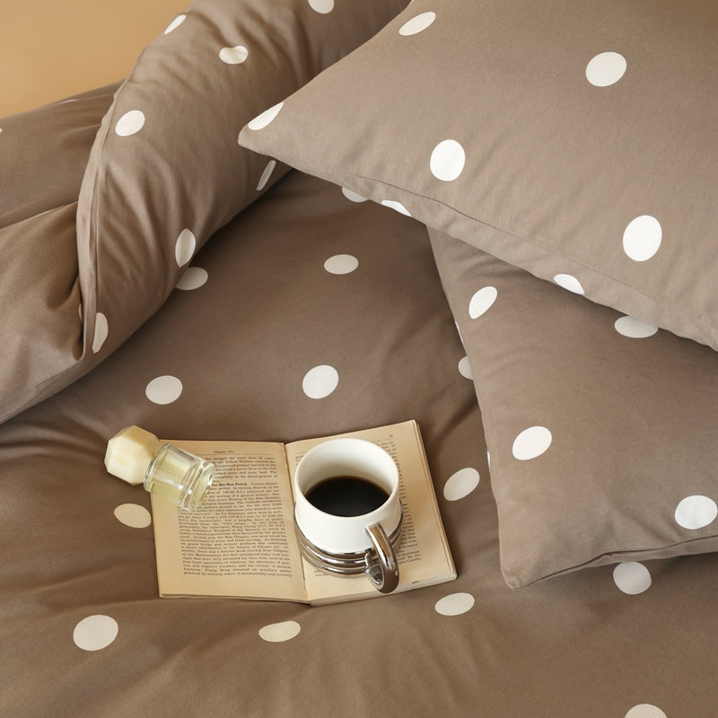 梦可莱家居 2025新款全棉针织四件套【加大系列】 波点咖啡