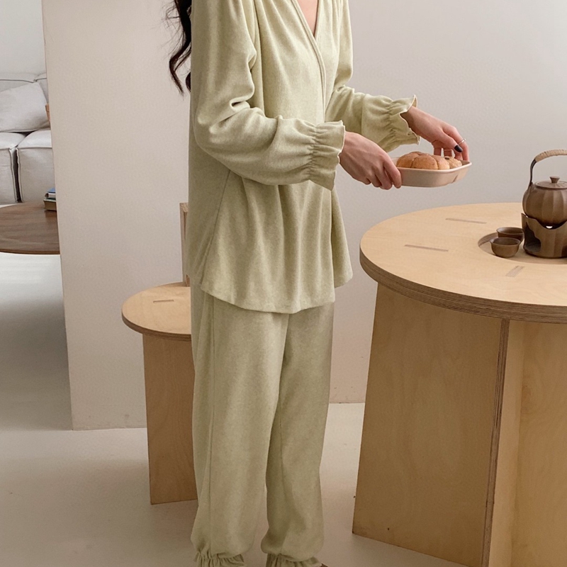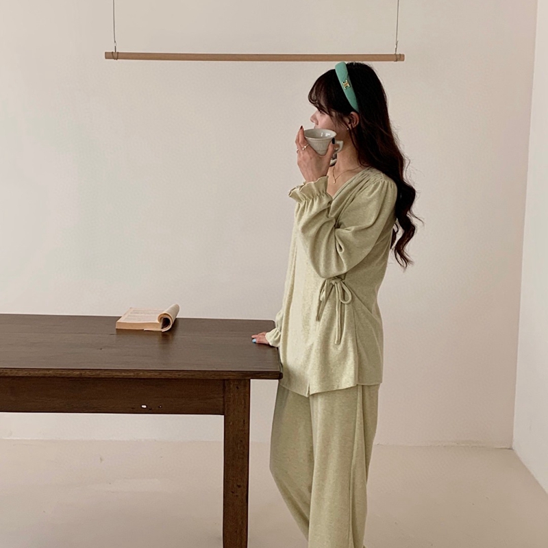(总)妍景家居生活馆 2025新款韩系圆领纽扣蕾丝套装,巧克力咖,海涛兰,奶杏色