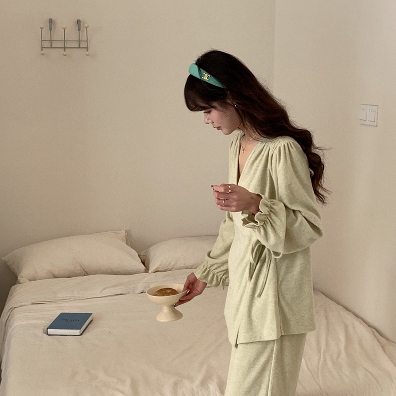 妍景家居生活馆 毛巾绒系带套装 绿色