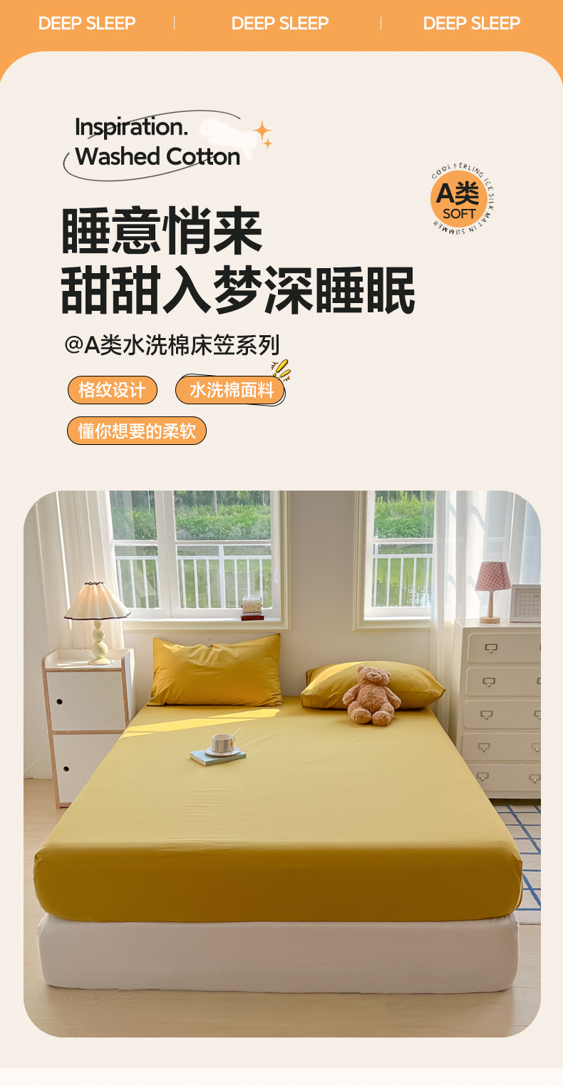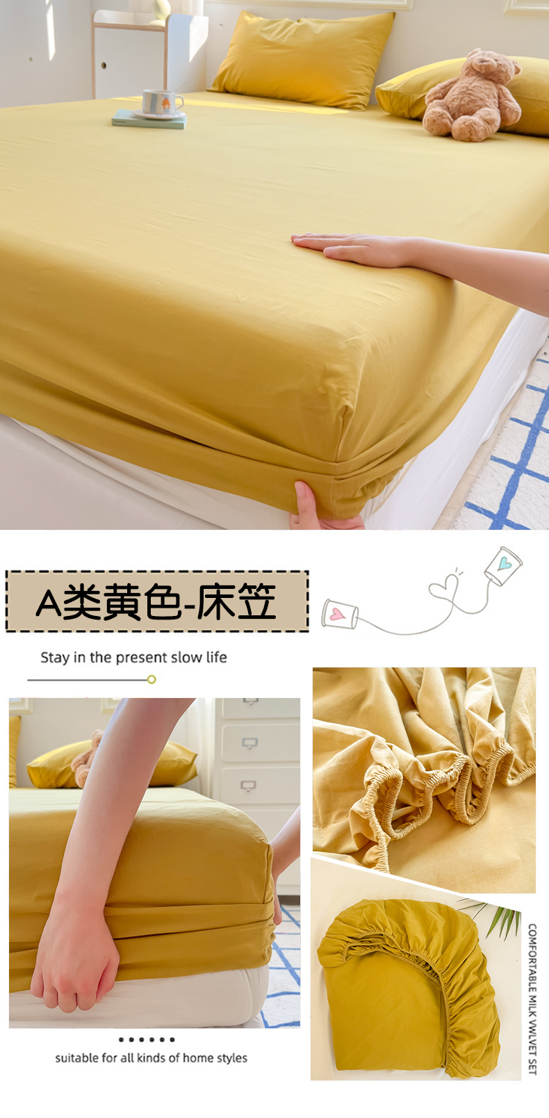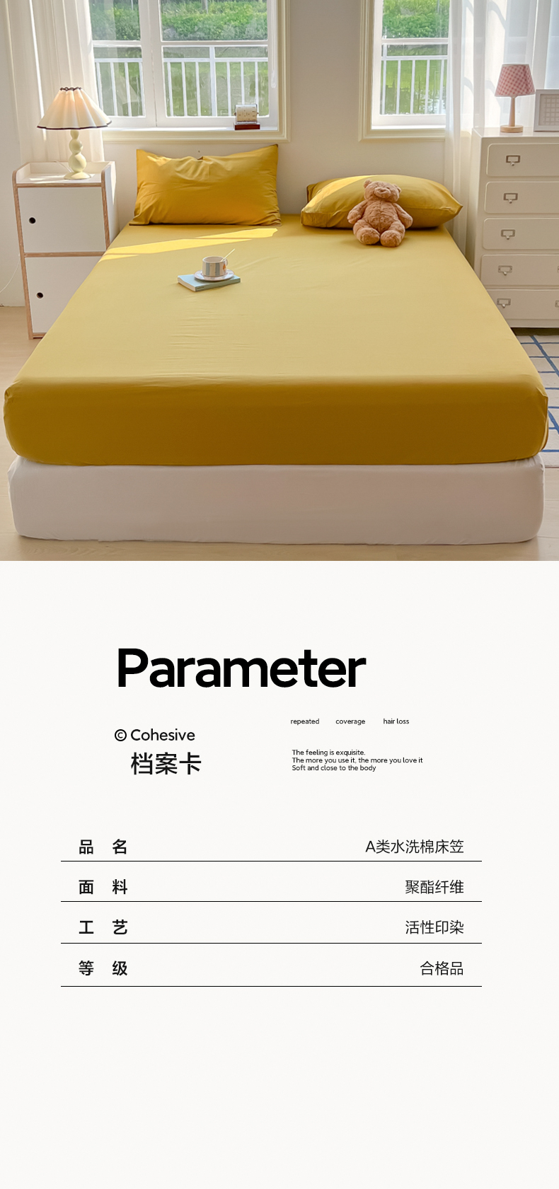 • 91家纺网 家纺一手货源 找家纺 韩巢家纺 2025新款A类纯色格子水洗棉床笠单件床罩床套 A类黄色-床笠