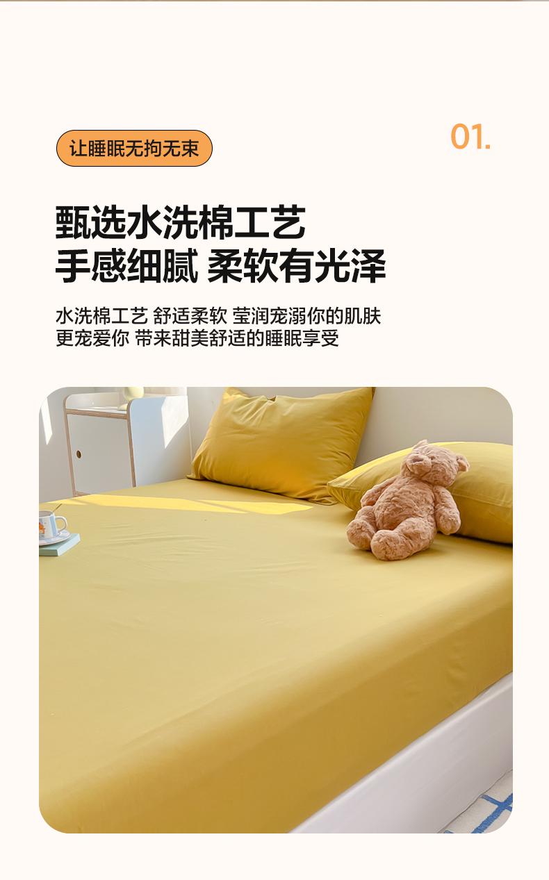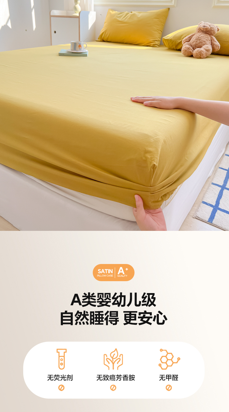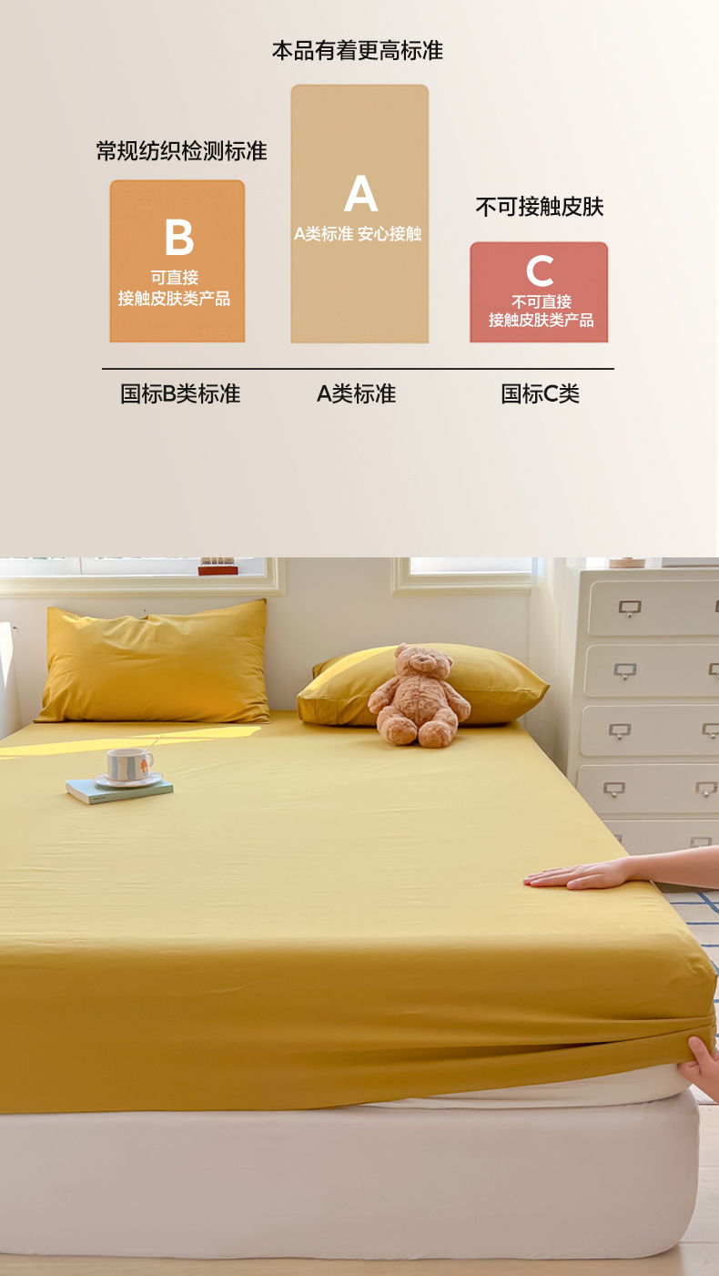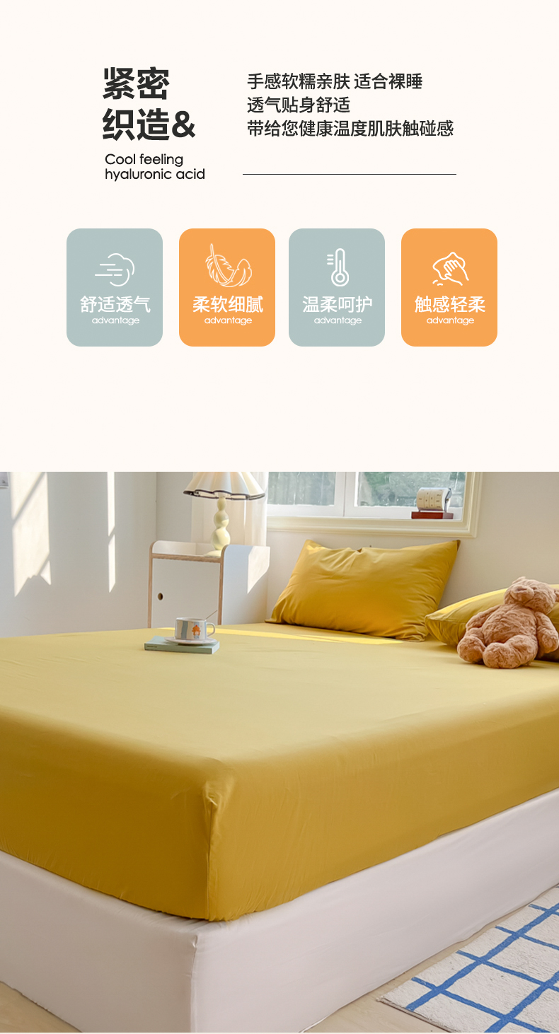 • 91家纺网 家纺一手货源 找家纺 韩巢家纺 2025新款A类纯色格子水洗棉床笠单件床罩床套 A类黄色-床笠