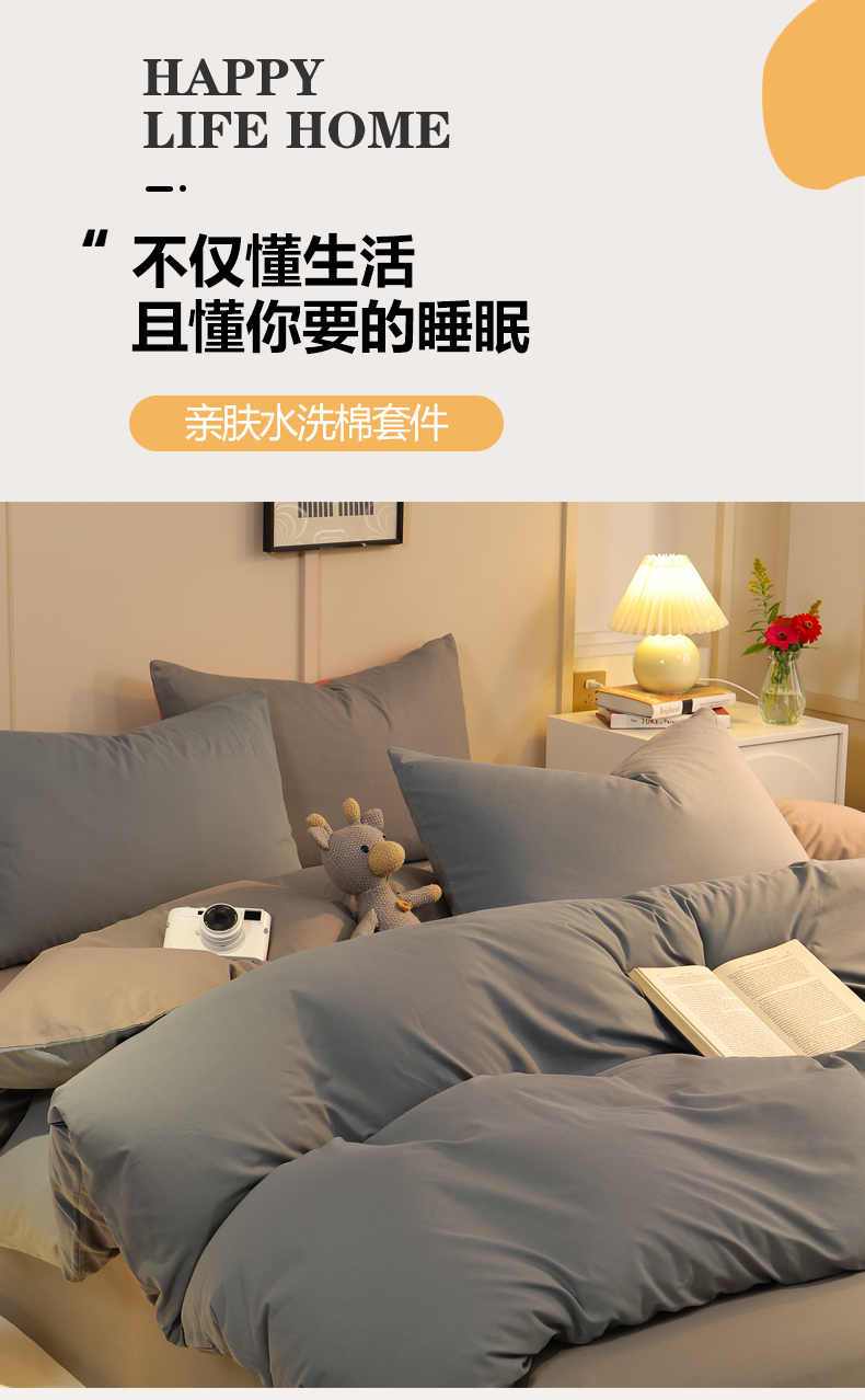 商品名称:悦织湾家纺 2025新款亲肤水洗棉纯色双拼四件套轻奢时尚 双拼中灰+浅灰