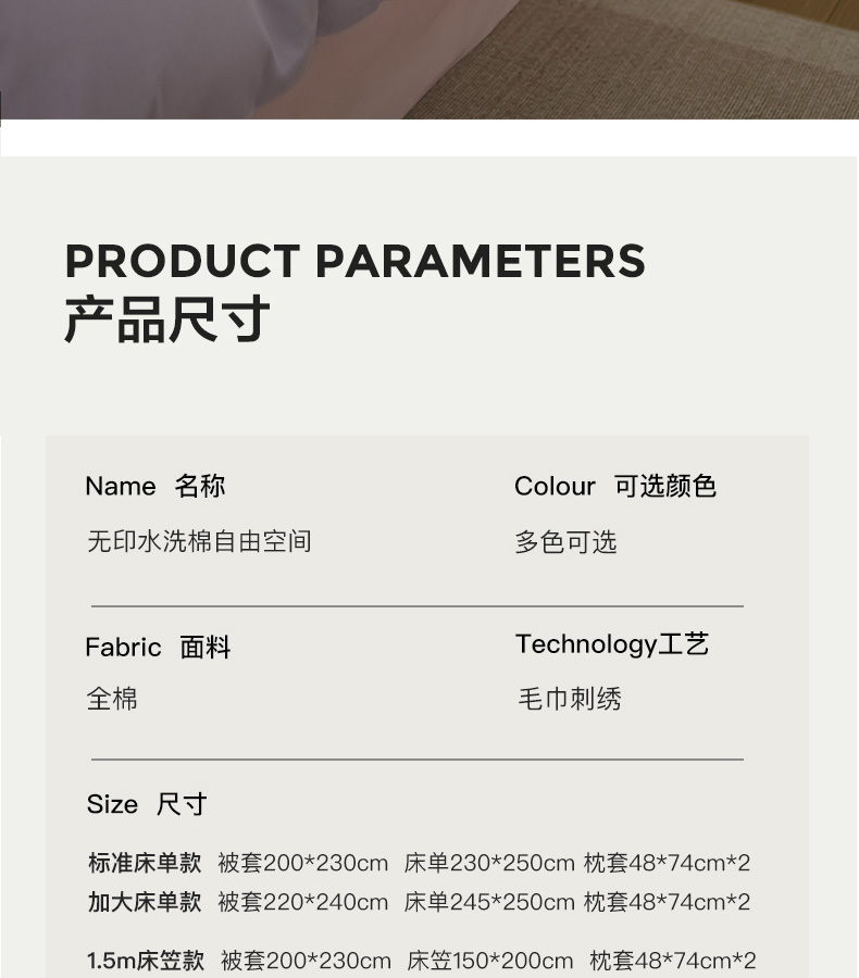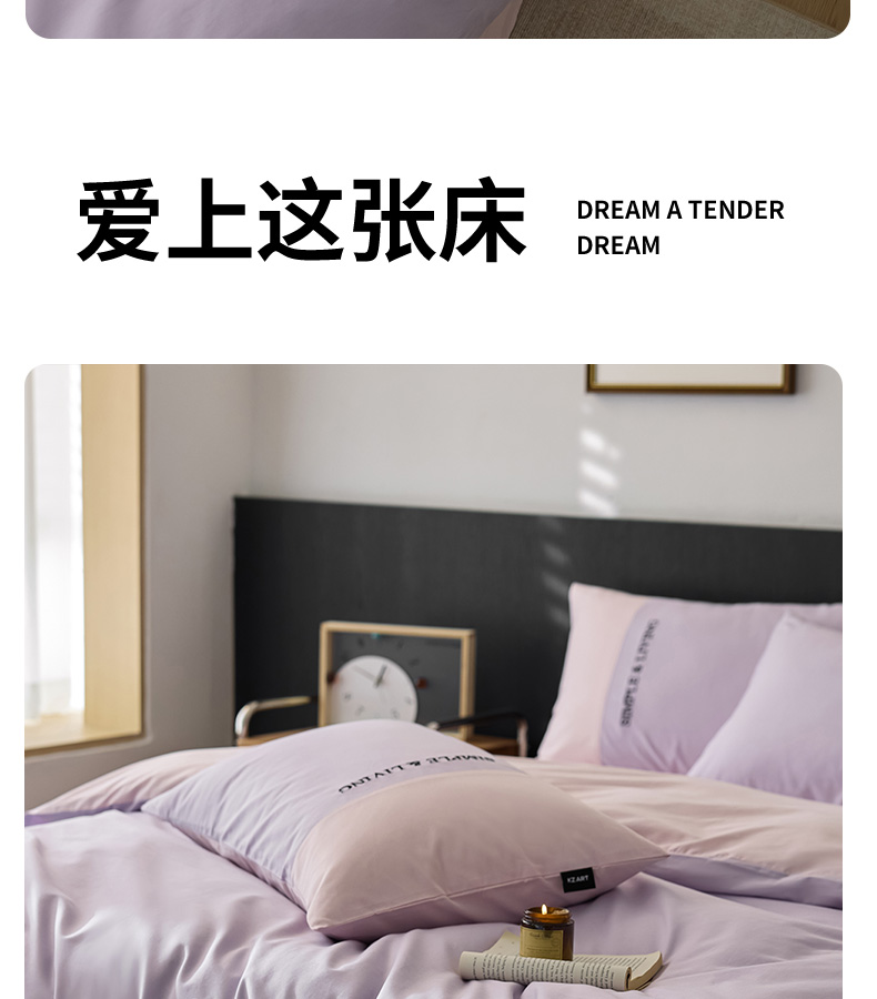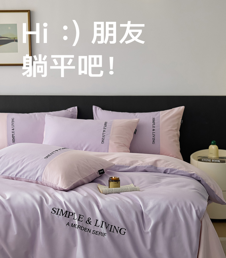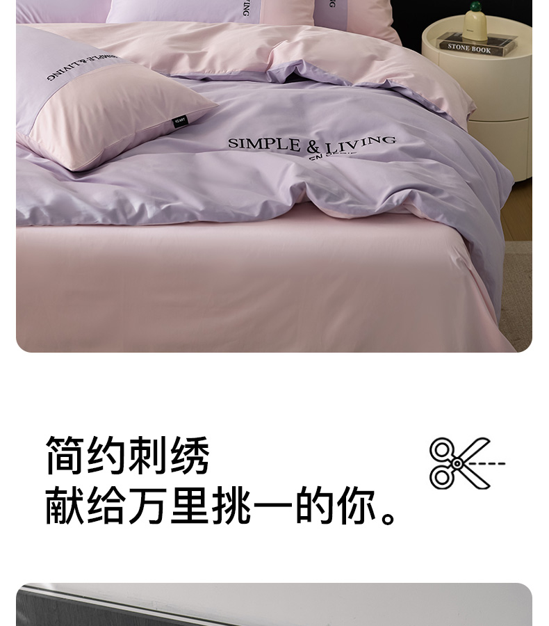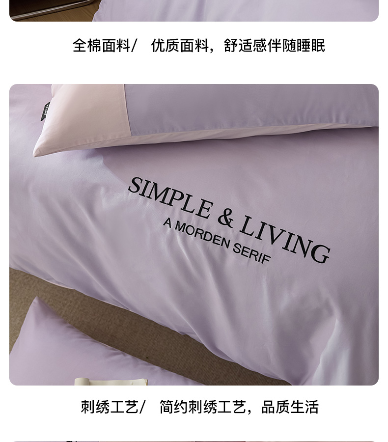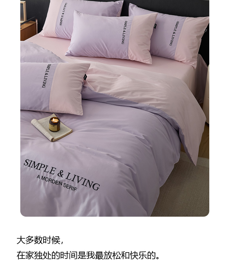 商品名称:佳汐蓝家纺 2025春夏新款无印水洗棉自由空间四件套 自由紫