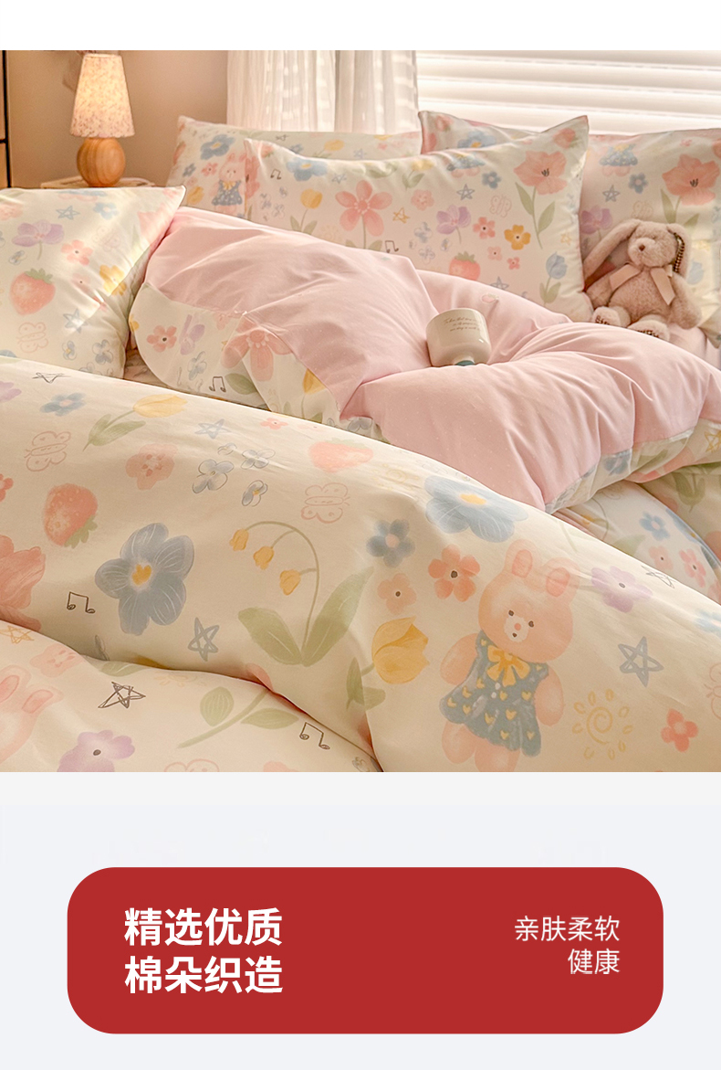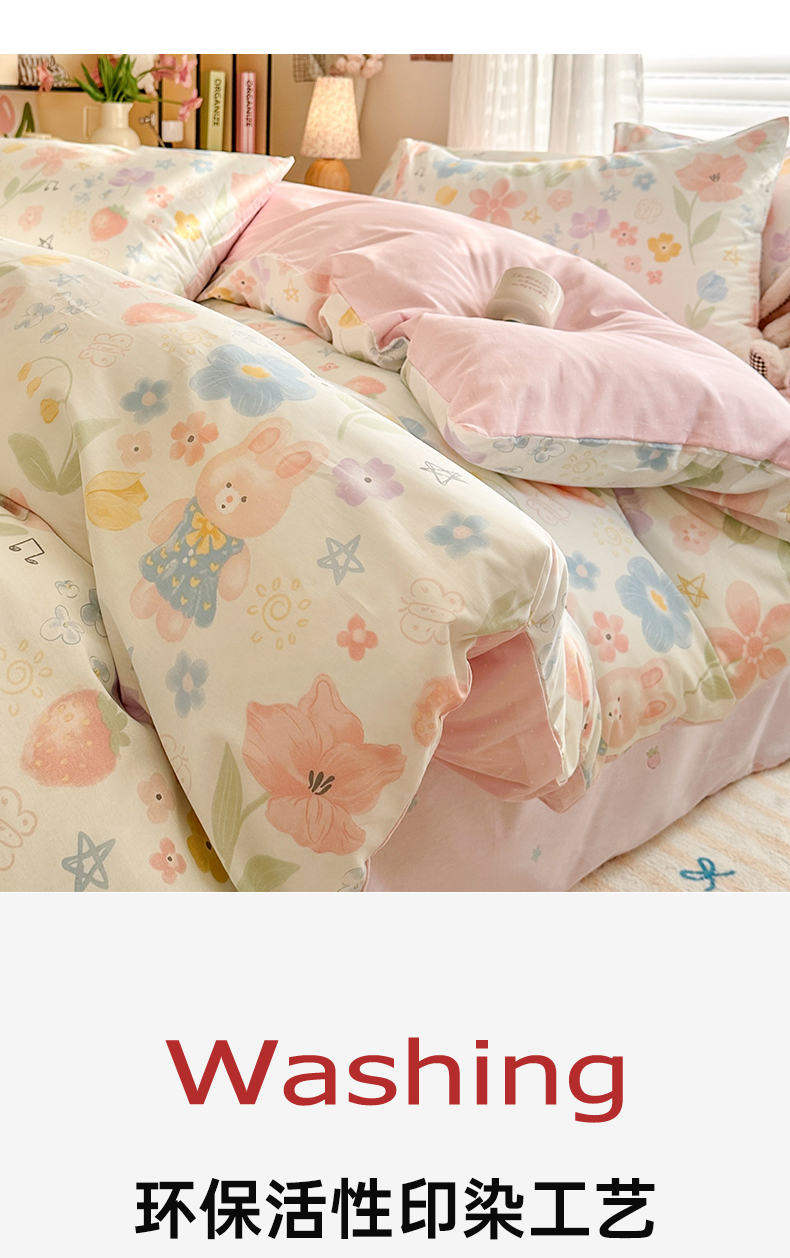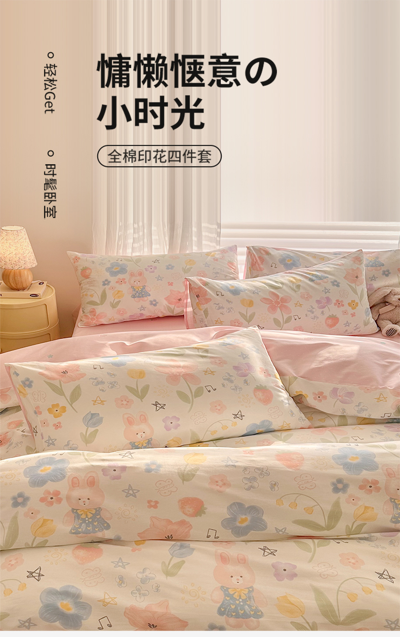 商品名称:名兮家居 2025新款12868全棉纯棉四件套 兔兔花园