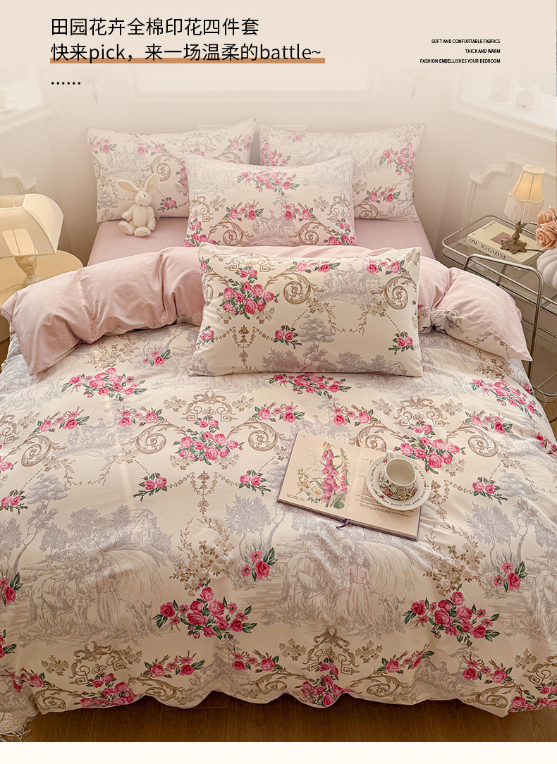 (总)名兮 2023新款全棉印花小清新四件套,爱莲娜,春暖花开,少女梦,小确幸,星辰入梦,幸运花,幽幽仙草,致青春