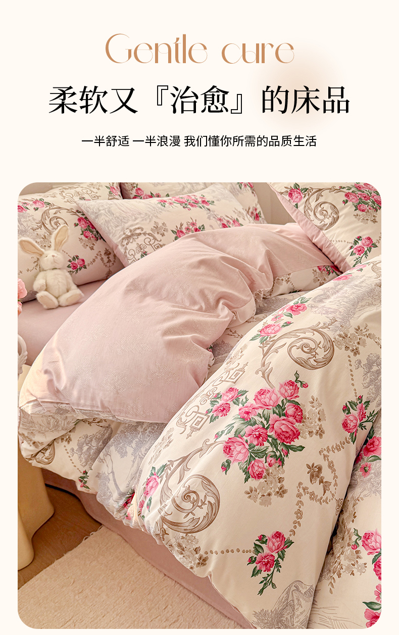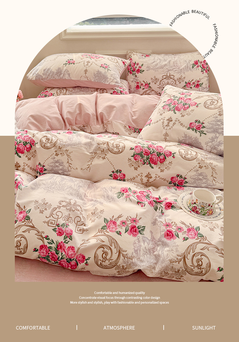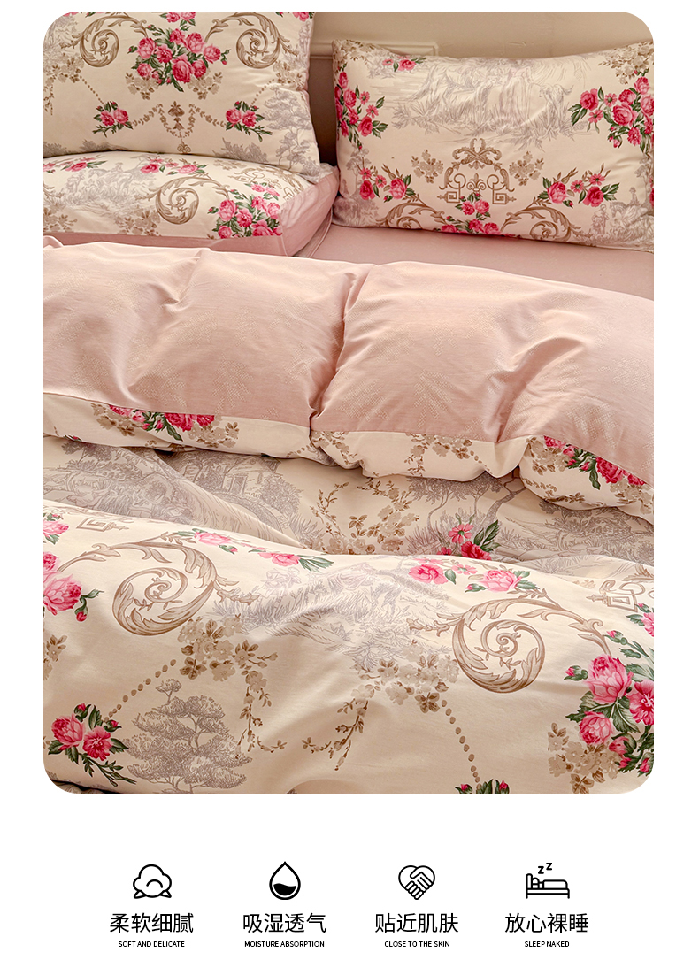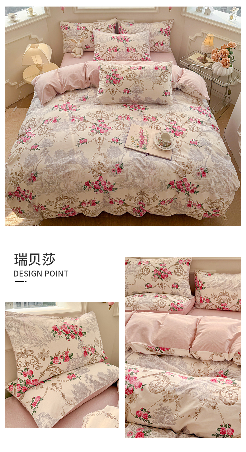 商品名称:名兮家居 2025新款13372全棉四件套-大花卉系列 瑞贝莎