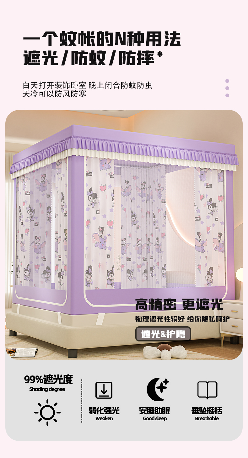 当前位置: 91家纺网 > 商品网购 > 床上用品 > 蚊帐 > 坐床式蚊帐 > 千逸虹 2025新款坐床防摔可拆卸遮光双层布帘蚊帐 幸运洛米