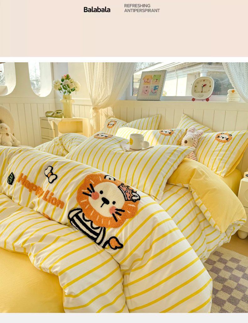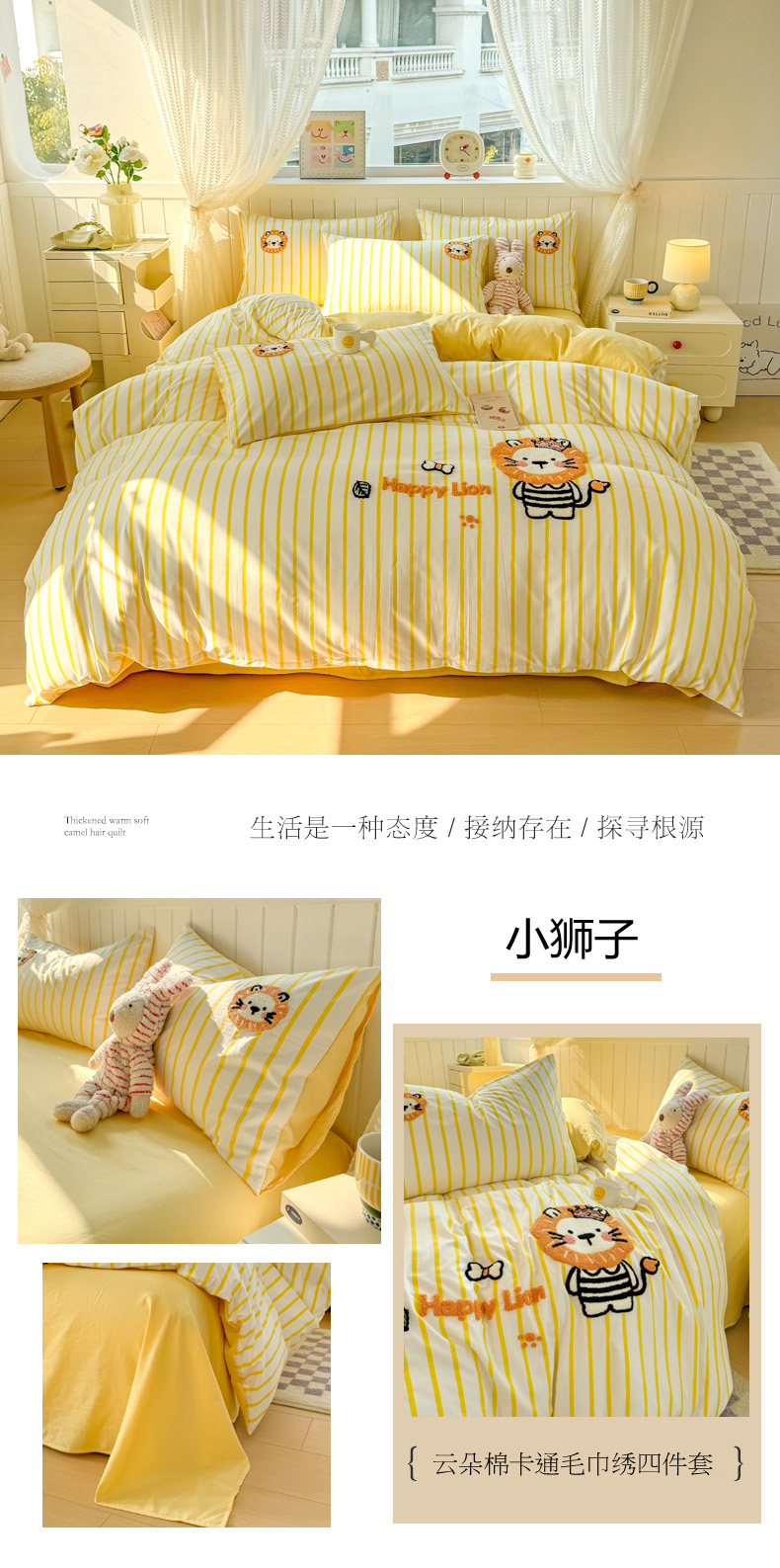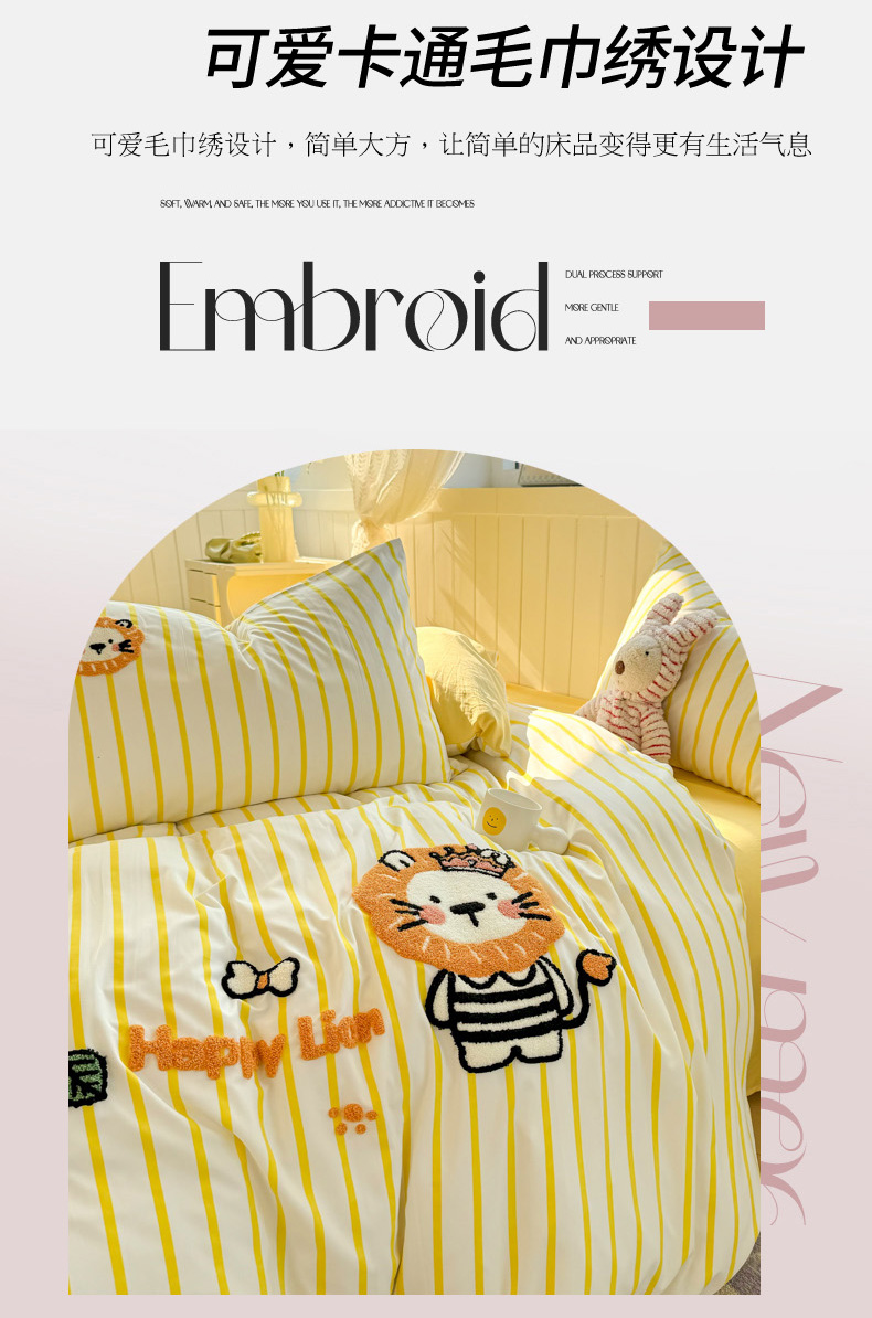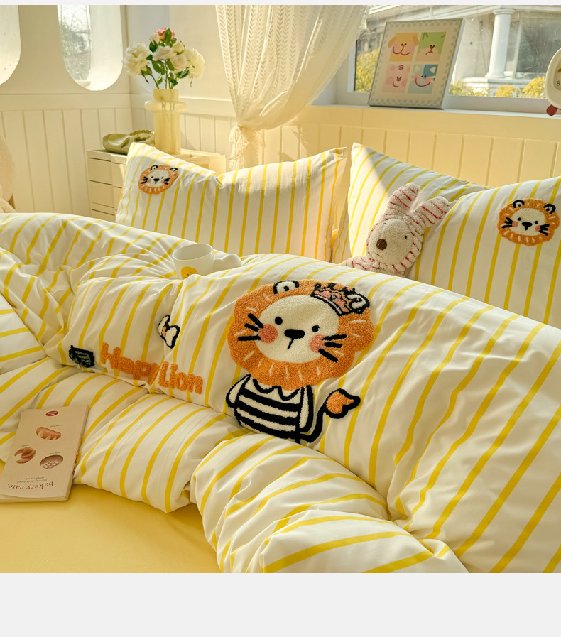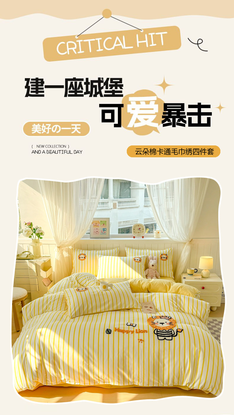 当前位置: 91家纺网 > 商品网购 > 床品套件 > 四件套 > 上尚居 2025新款云朵棉卡通毛巾绣四件套 小狮子