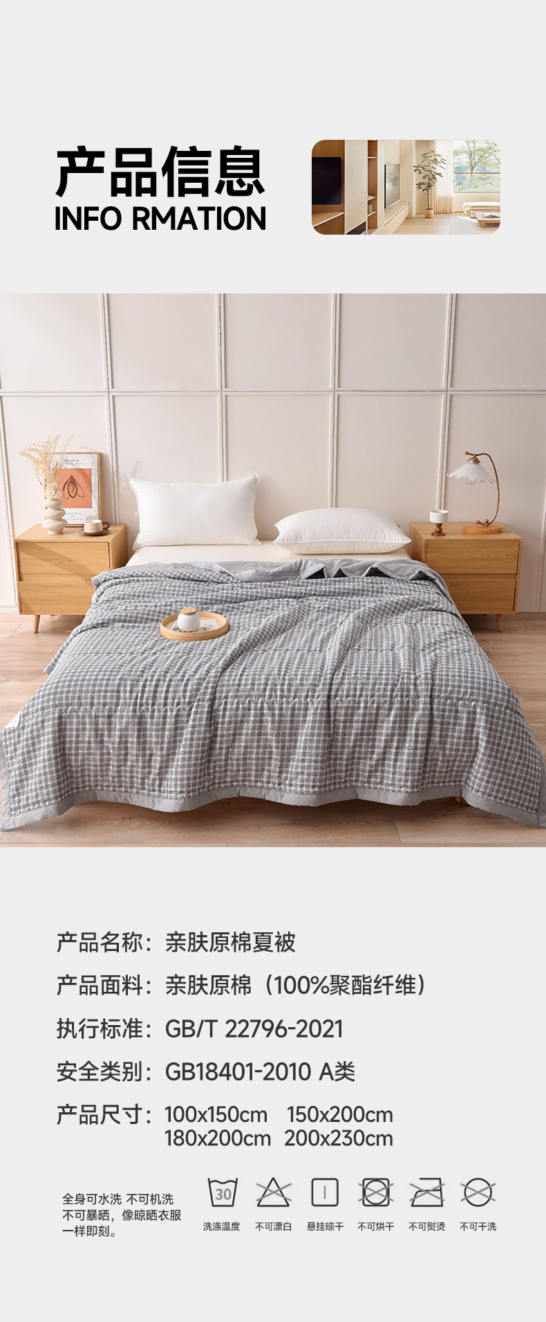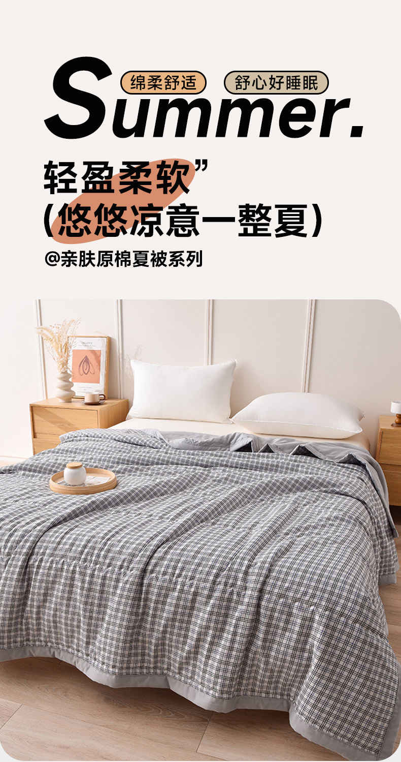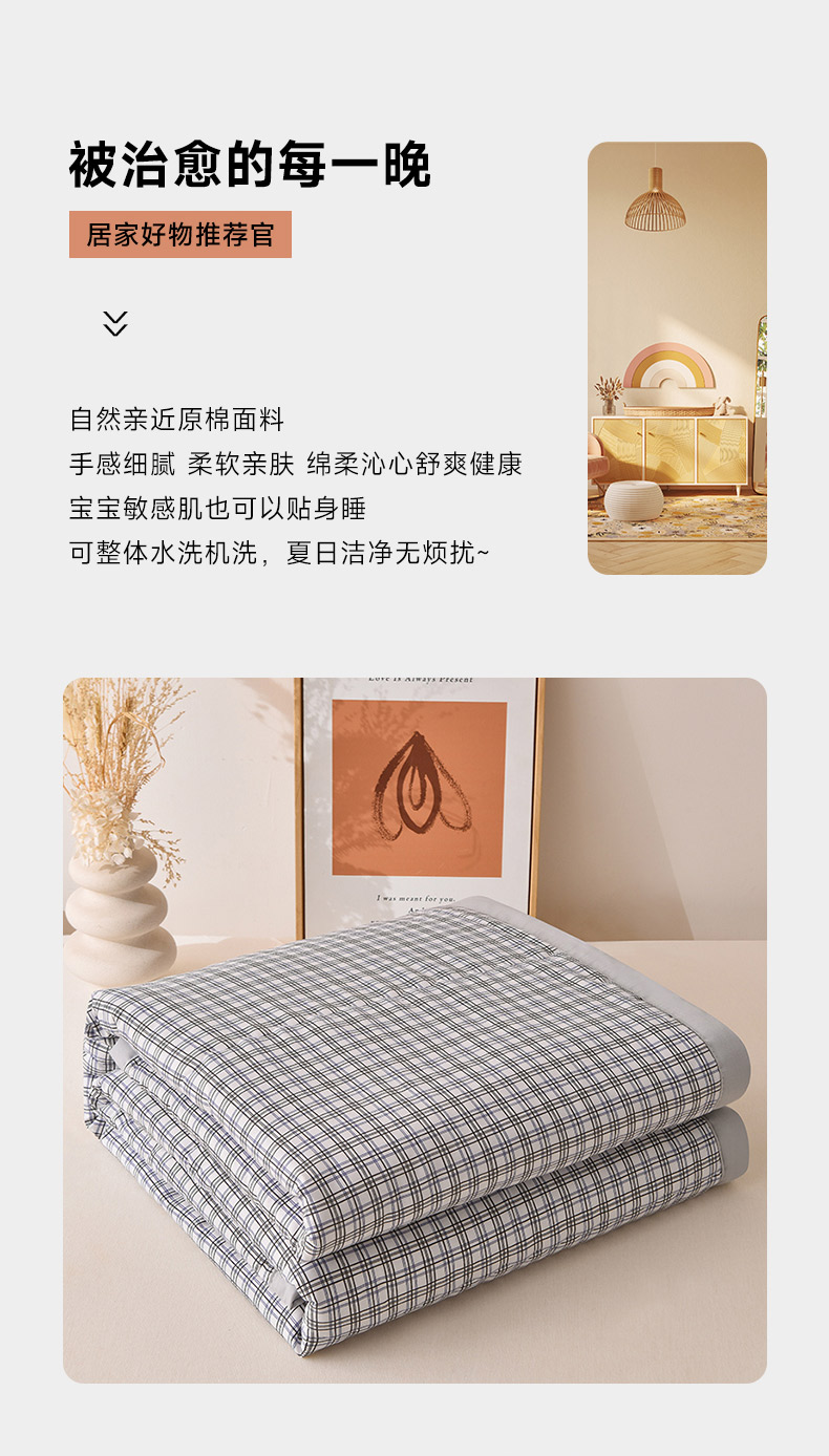 商品名称:艾兜坊 2025新款亲肤原棉夏被 5蓝灰小格