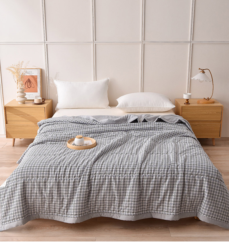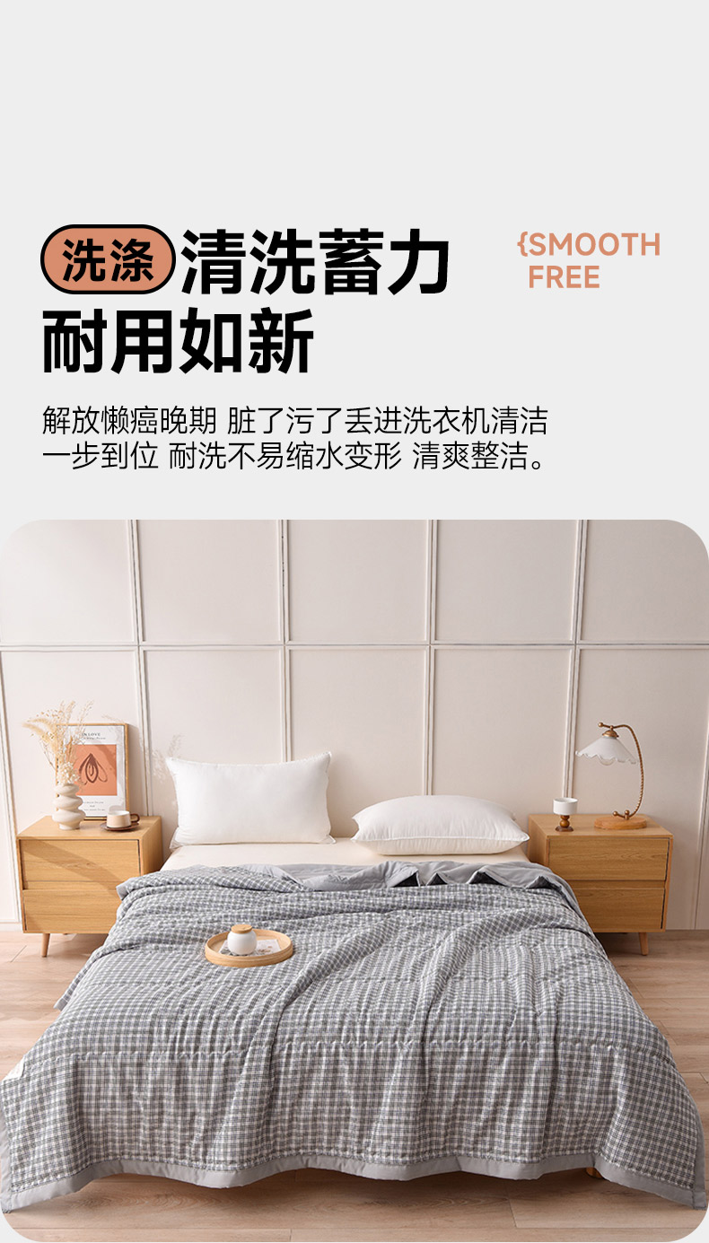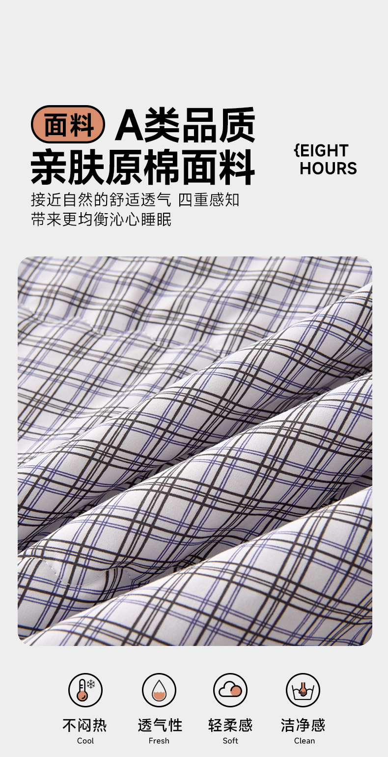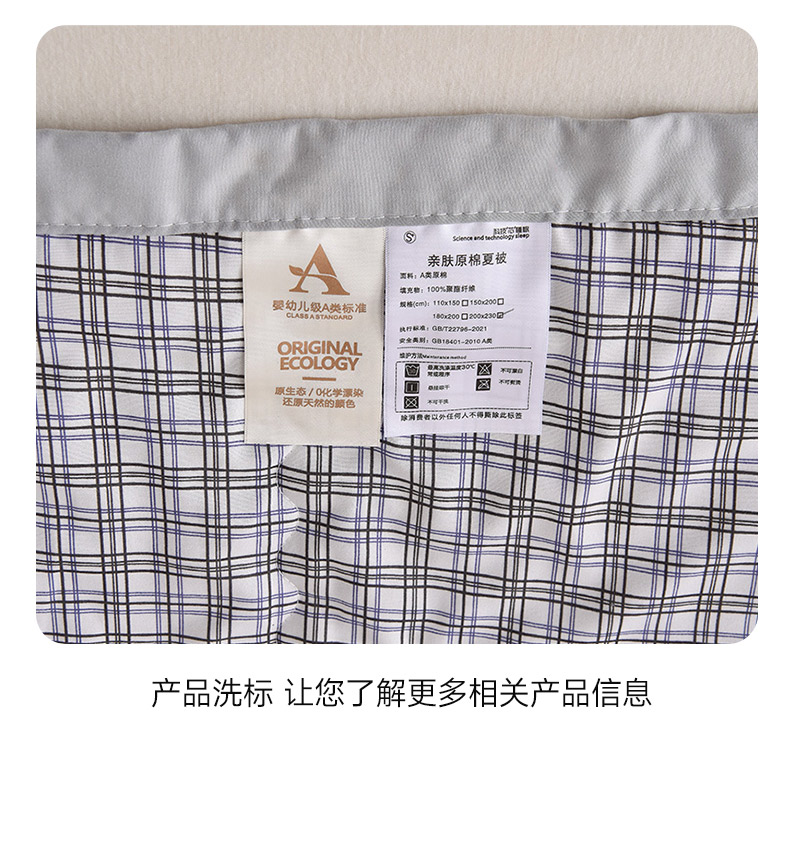 商品名称:艾兜坊 2025新款亲肤原棉夏被 5蓝灰小格