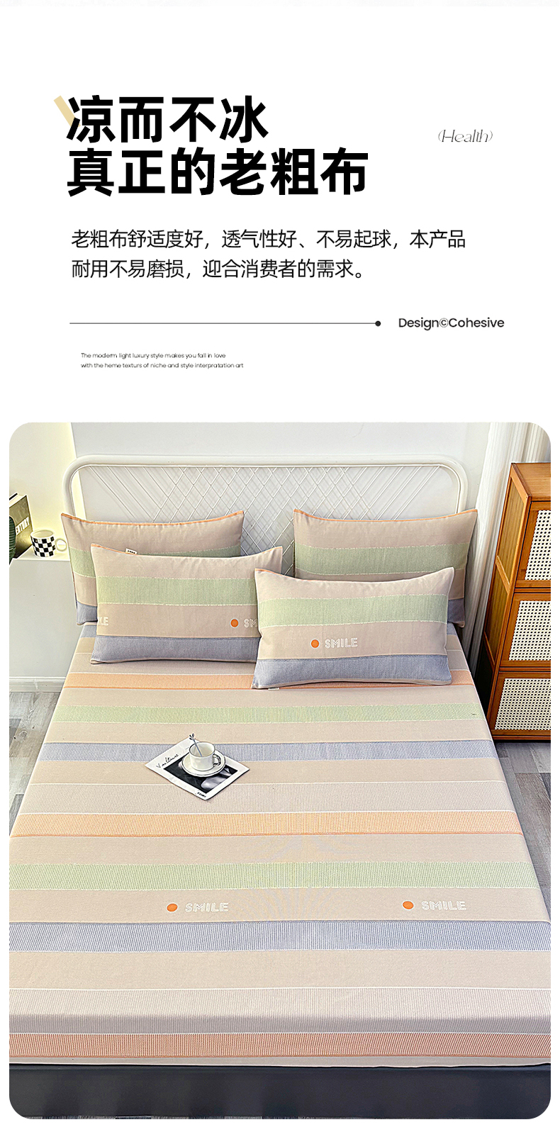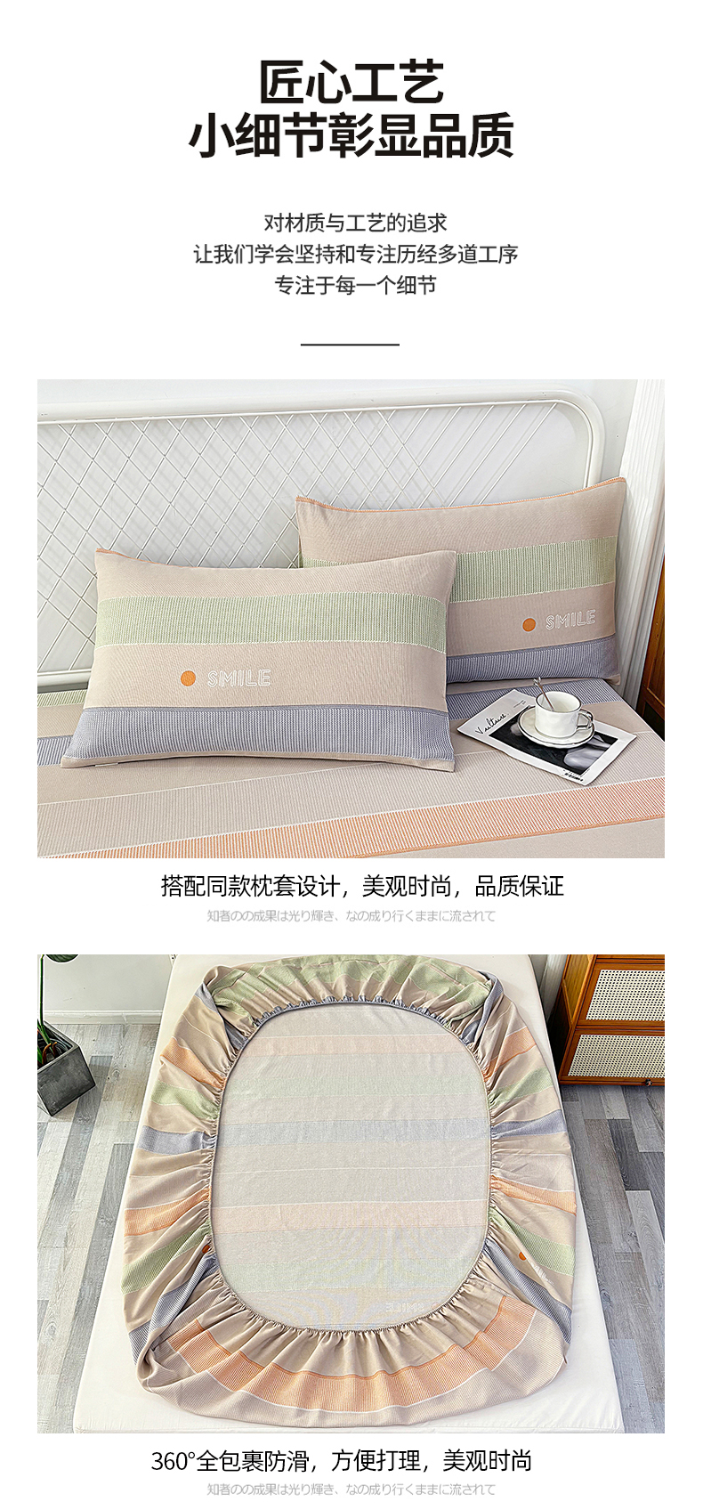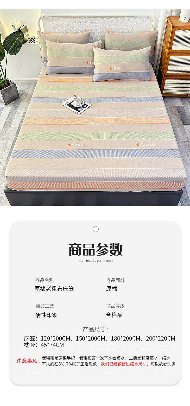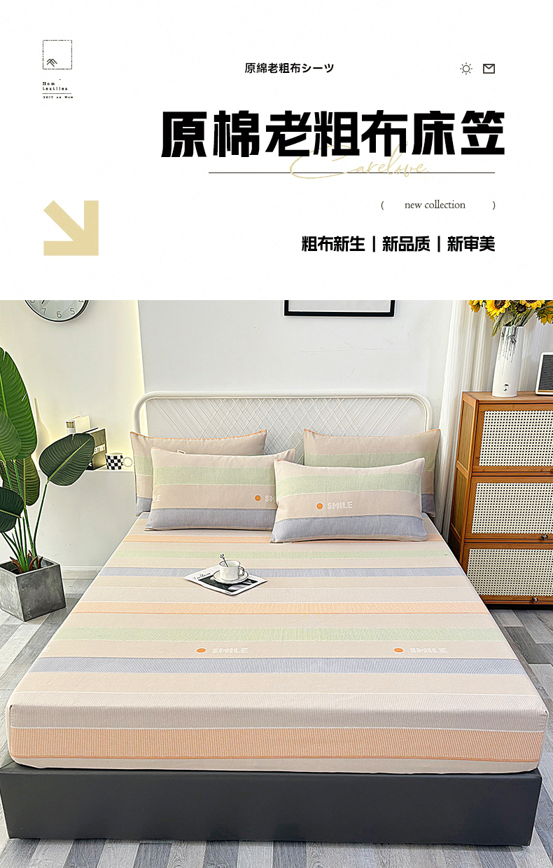 • 91家纺网 家纺一手货源 找家纺 伊而梦蚊帐 2025新款原棉老粗布床笠 条纹彩