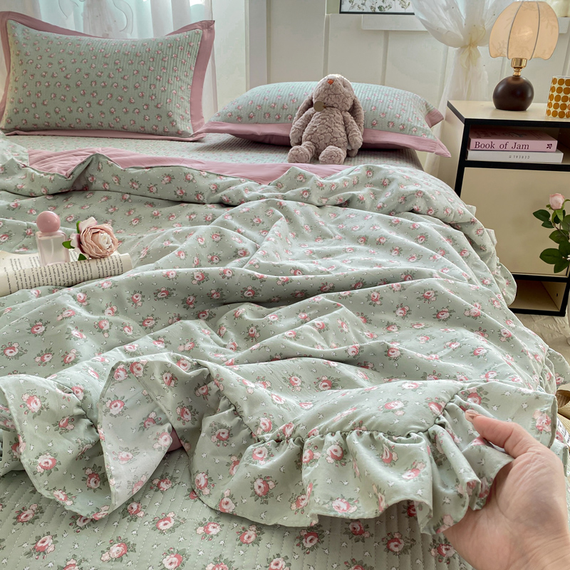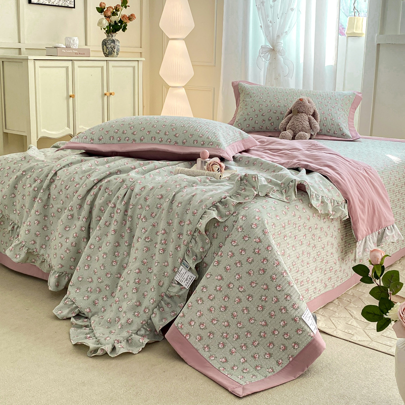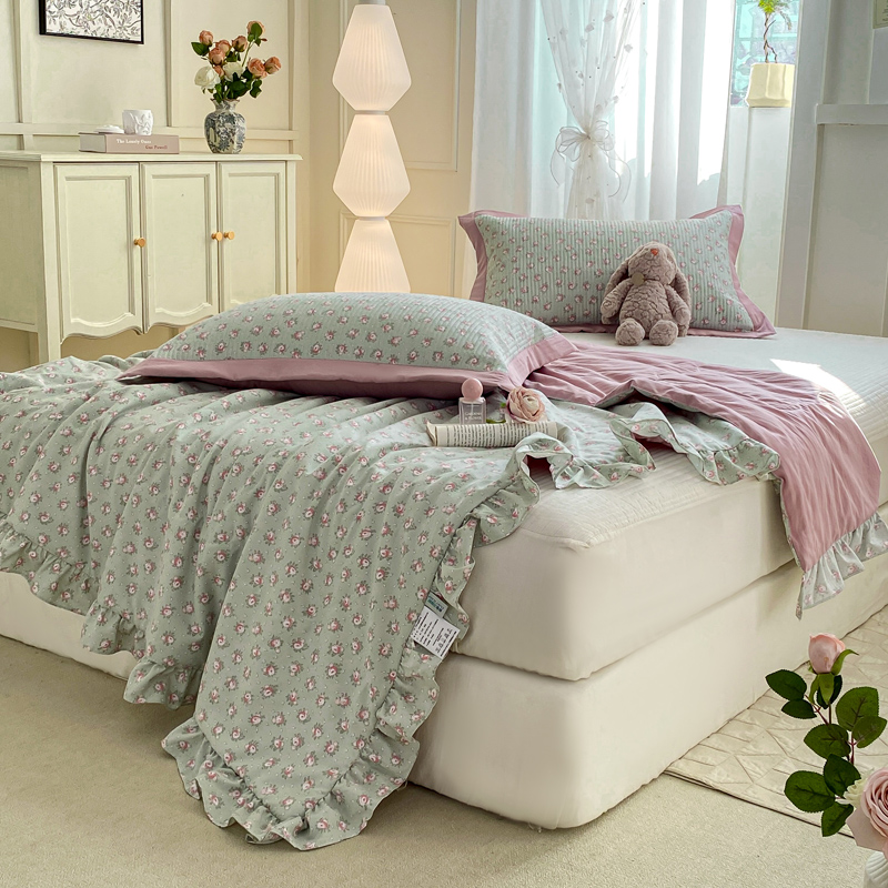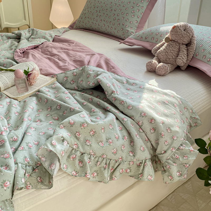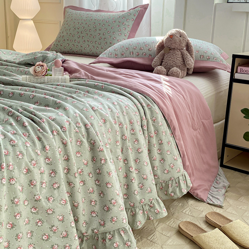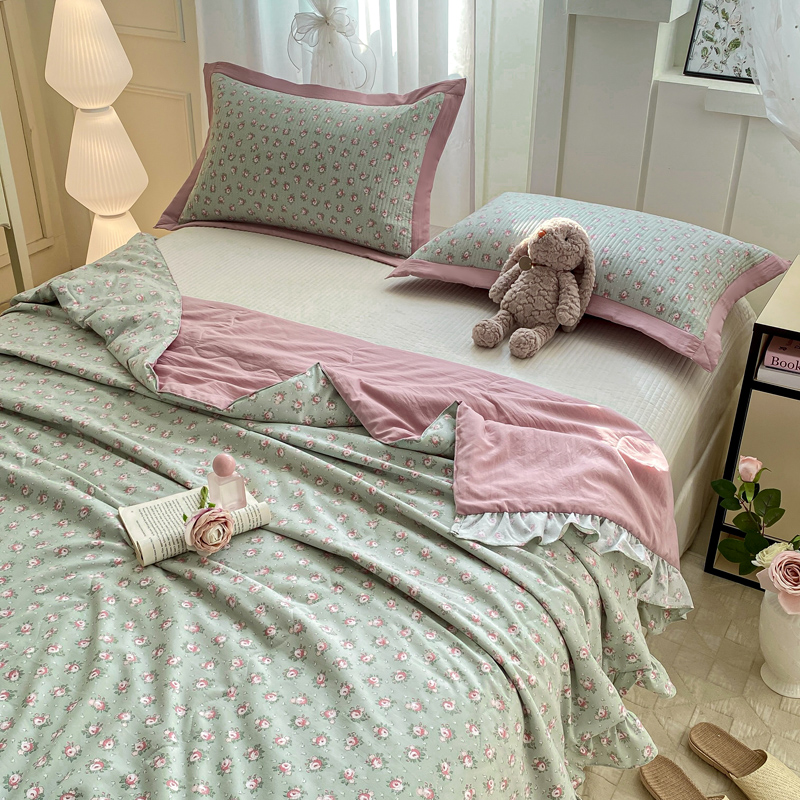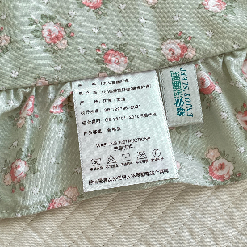 享受云端的柔软,是霎那间的心动~ 面料超软糯、、绗缝设计不易跑棉,贴身柔软又舒适,告别床单的褶皱与烦恼,法式小碎花。享受视觉的美感。沉浸式的入睡,仿佛进了森林氧吧。采用整张超细中空纤维棉 久用不板结 无甲醛,无芳香胺。婴幼儿可用