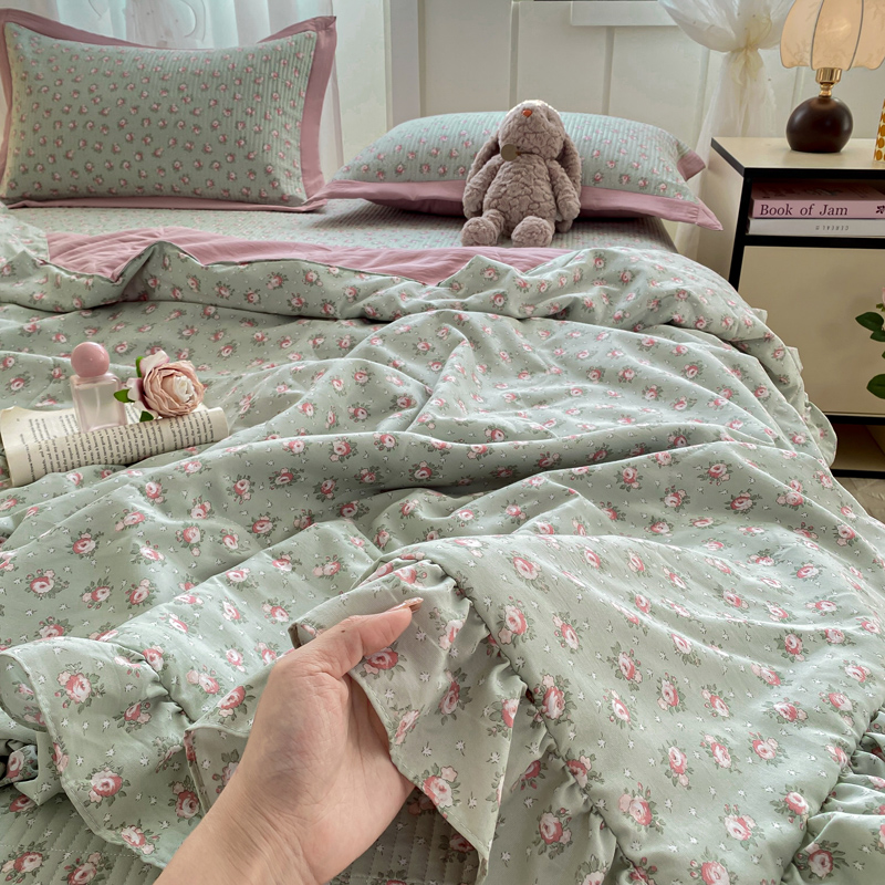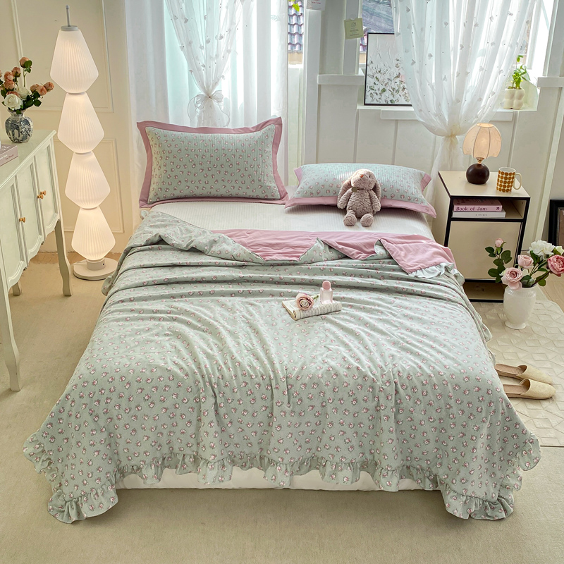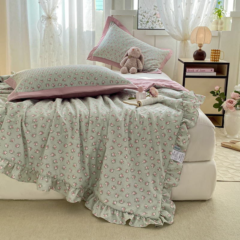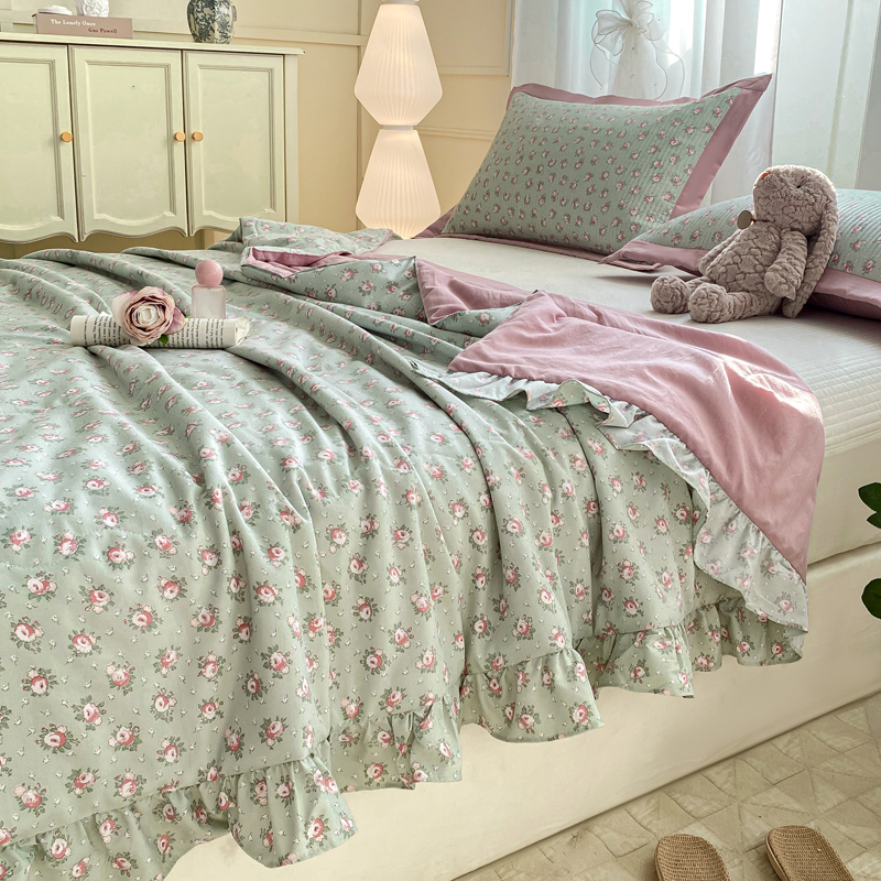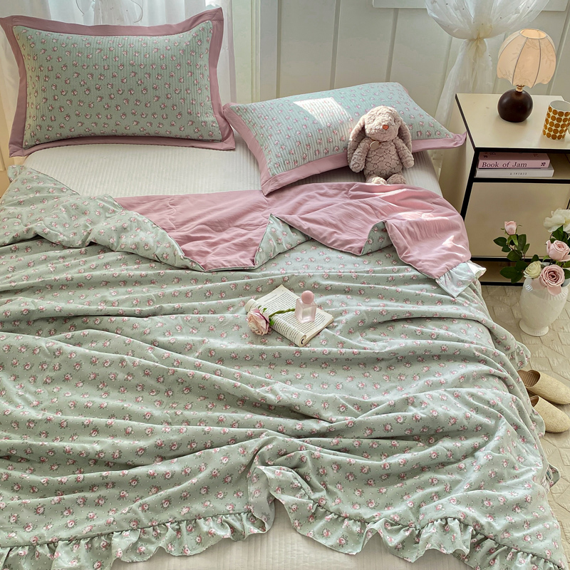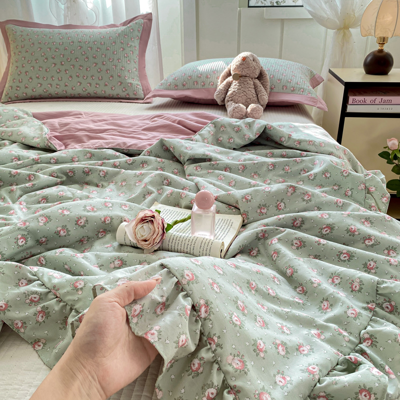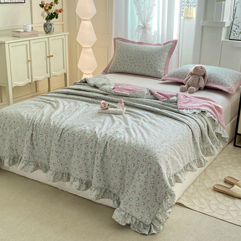 享受云端的柔软,是霎那间的心动~ 面料超软糯、、绗缝设计不易跑棉,贴身柔软又舒适,告别床单的褶皱与烦恼,法式小碎花。享受视觉的美感。沉浸式的入睡,仿佛进了森林氧吧。采用整张超细中空纤维棉 久用不板结 无甲醛,无芳香胺。婴幼儿可用