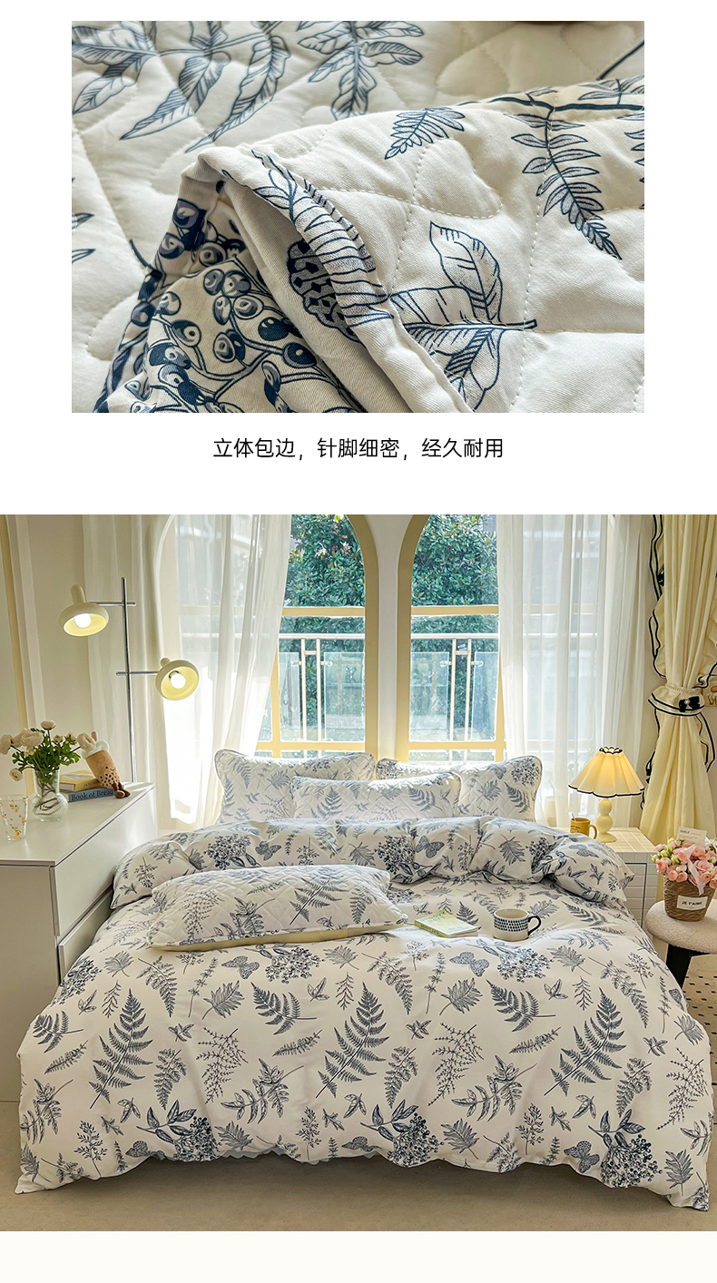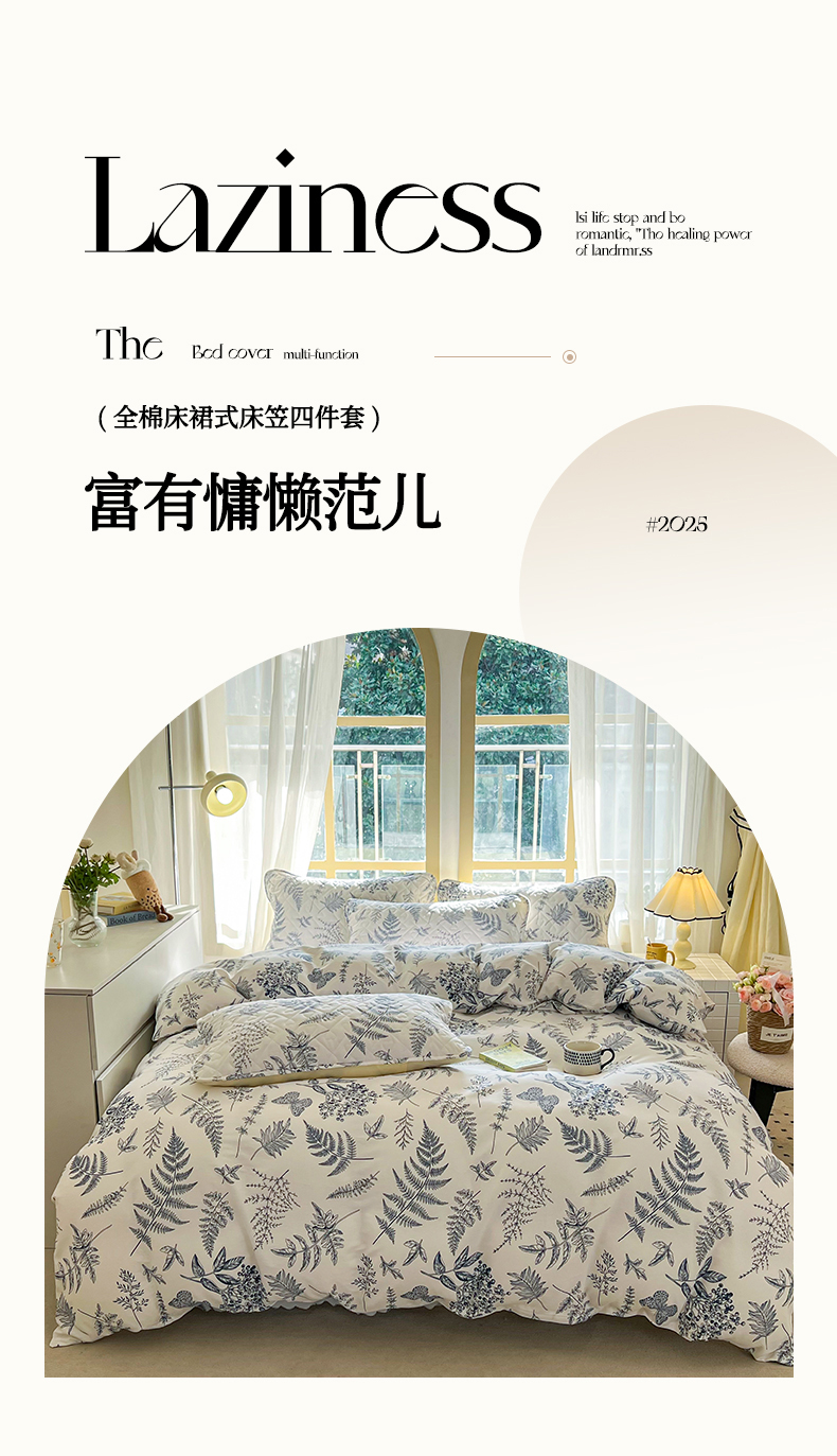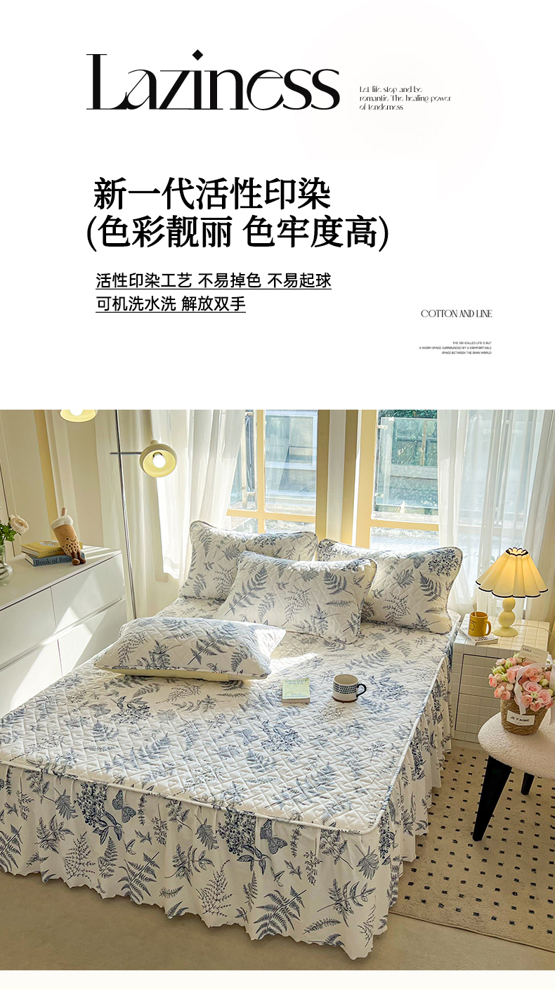 当前位置: 91家纺网 > 商品网购 > 床上用品 > 床笠 > 禧缘家纺 2025新款全棉印花花边夹棉床裙式床笠四件套系列 热带物语