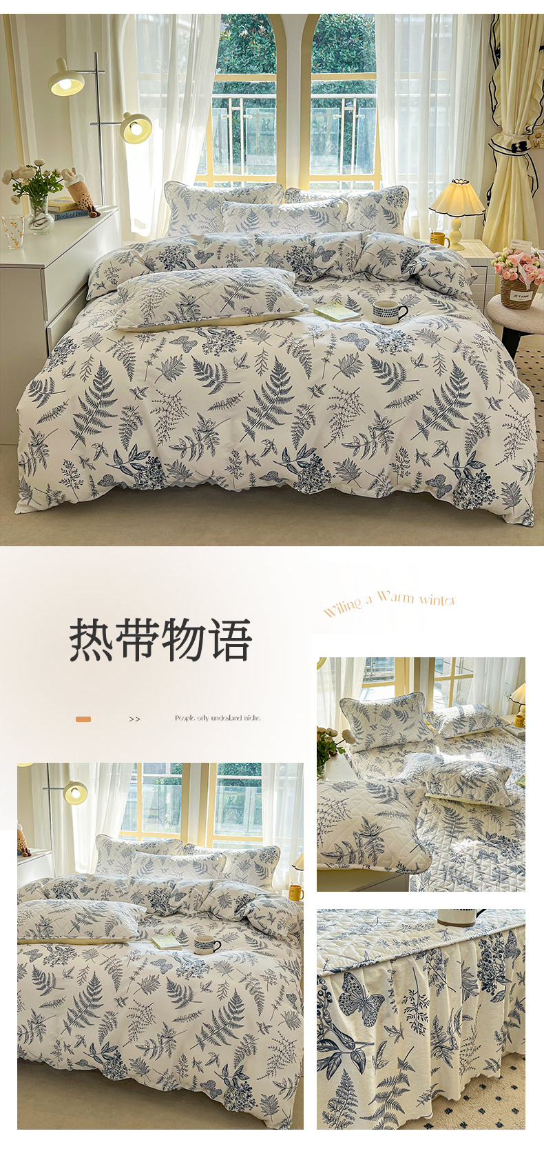 • 91家纺网 家纺一手货源 找家纺 禧缘家纺   2025新款全棉印花花边夹棉床裙式床笠四件套系列 热带物语