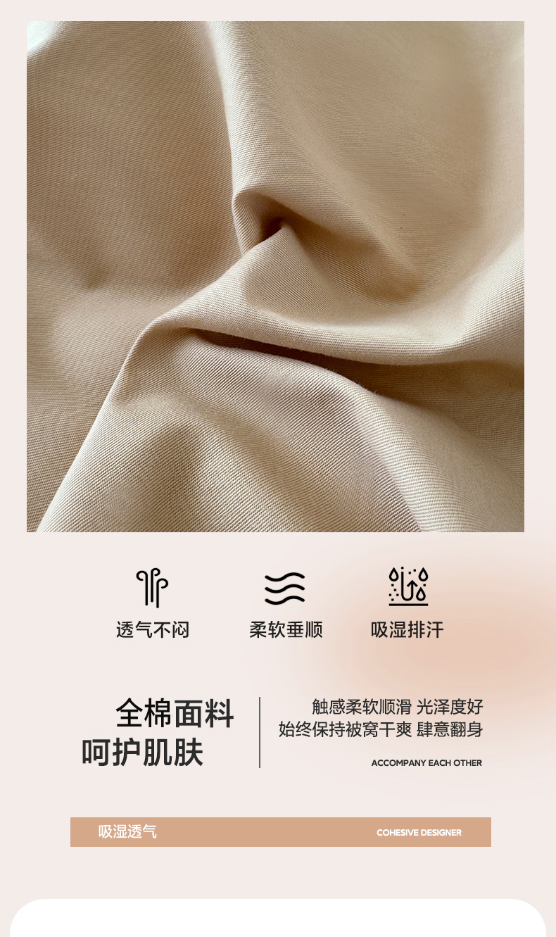 商品名称:佰亿莱 2025新款简约舒适全棉单品系列单被套 卡其色